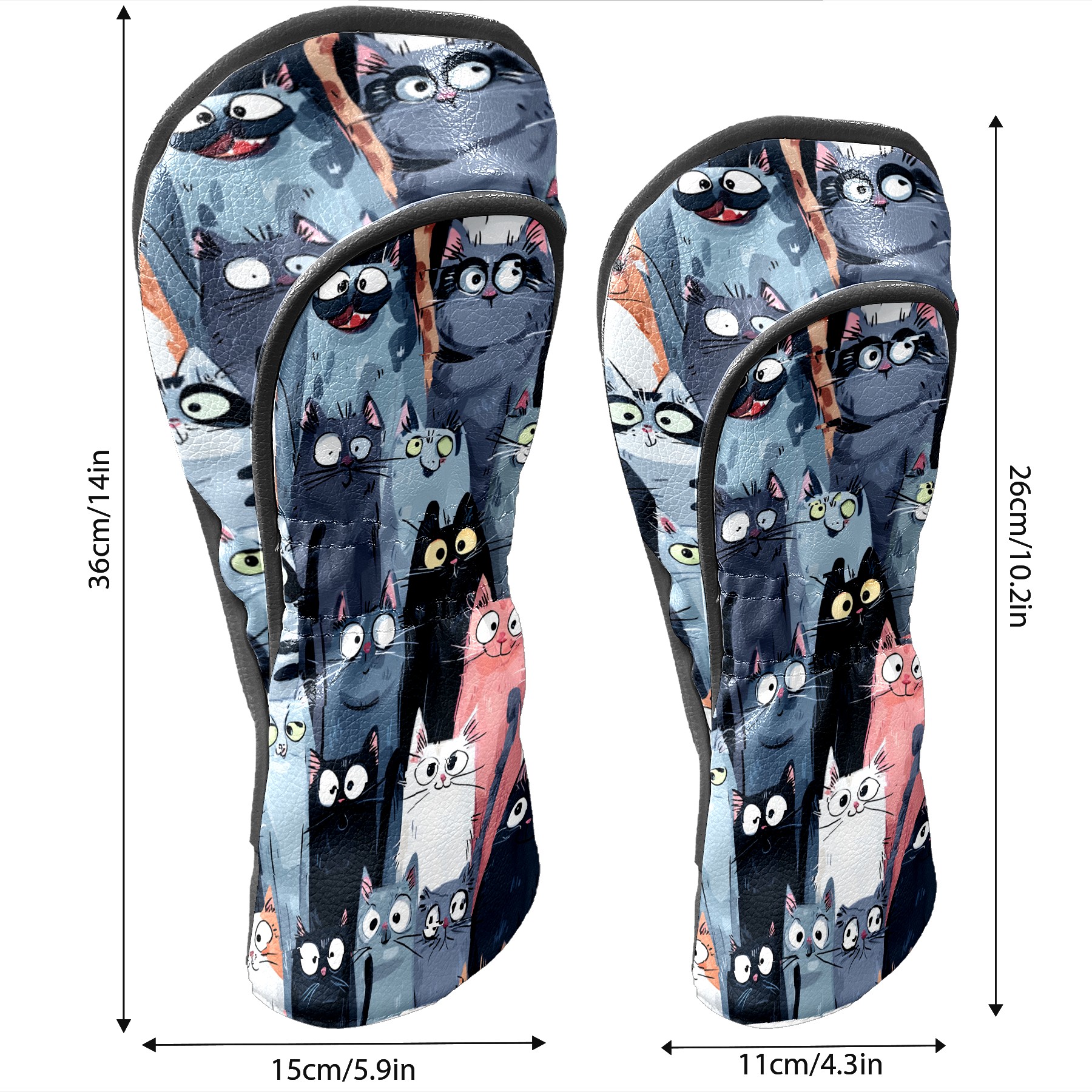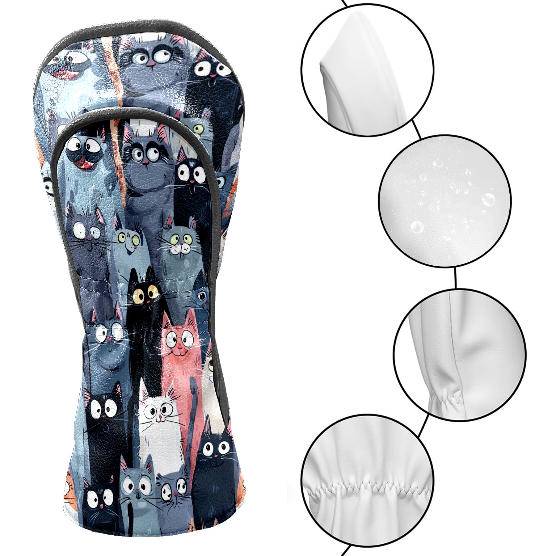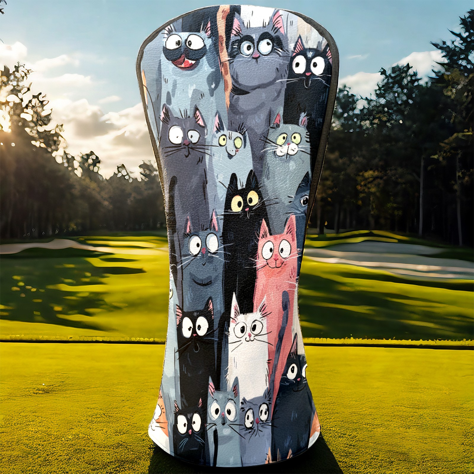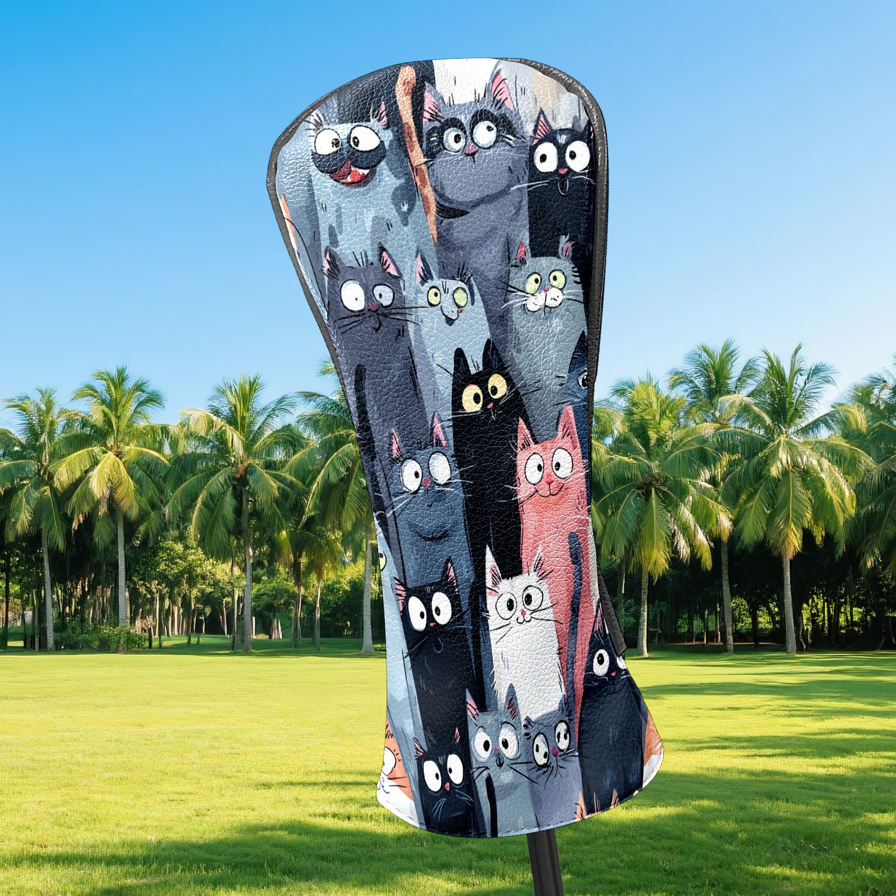 Golf Club Head Covers Colorful Cartoon Cats Design for Driver & Hybrid, Waterproof PU Leather with Plush Velvet Lining, Scratch Protection & Secure Fit, Ideal Golf Gift for Men Women