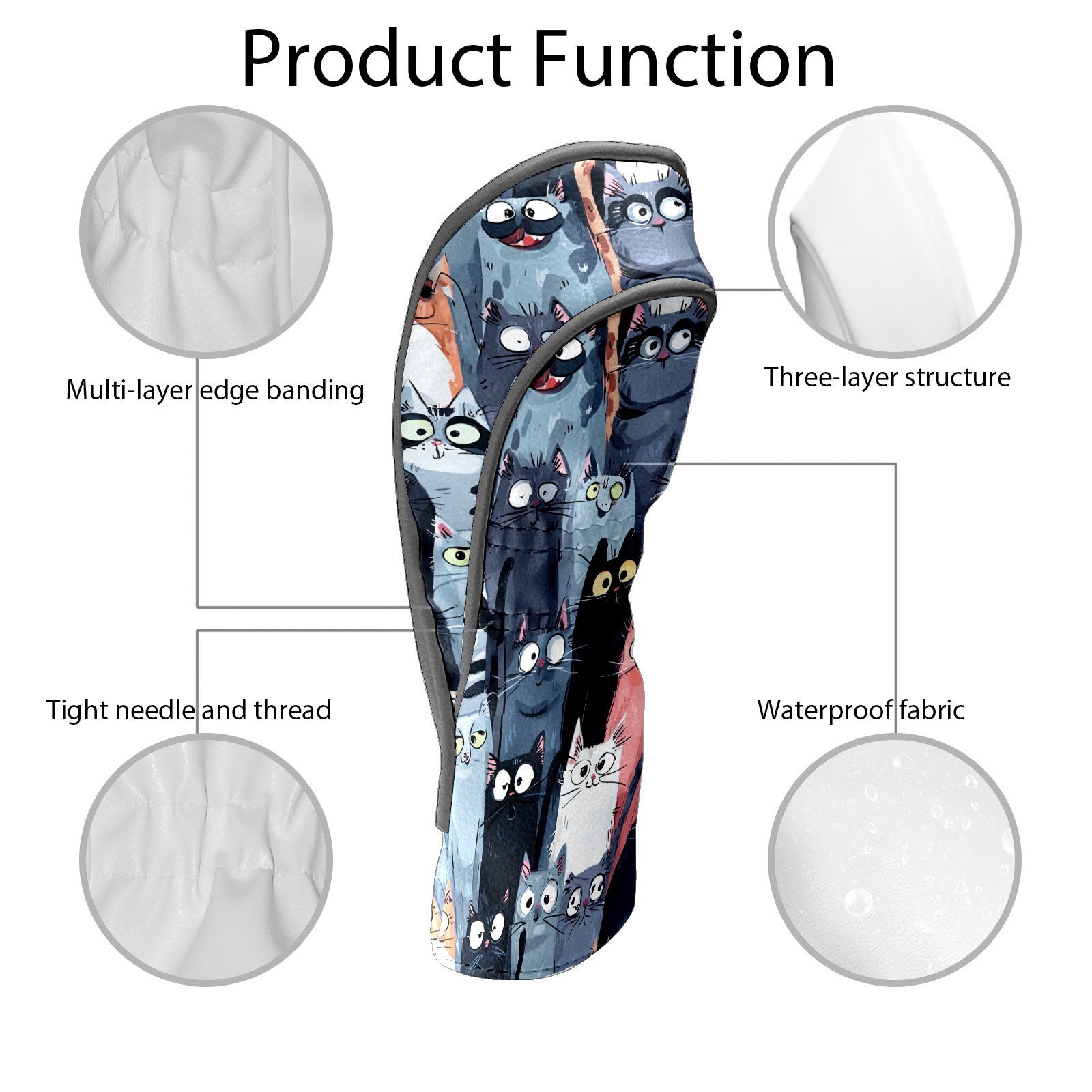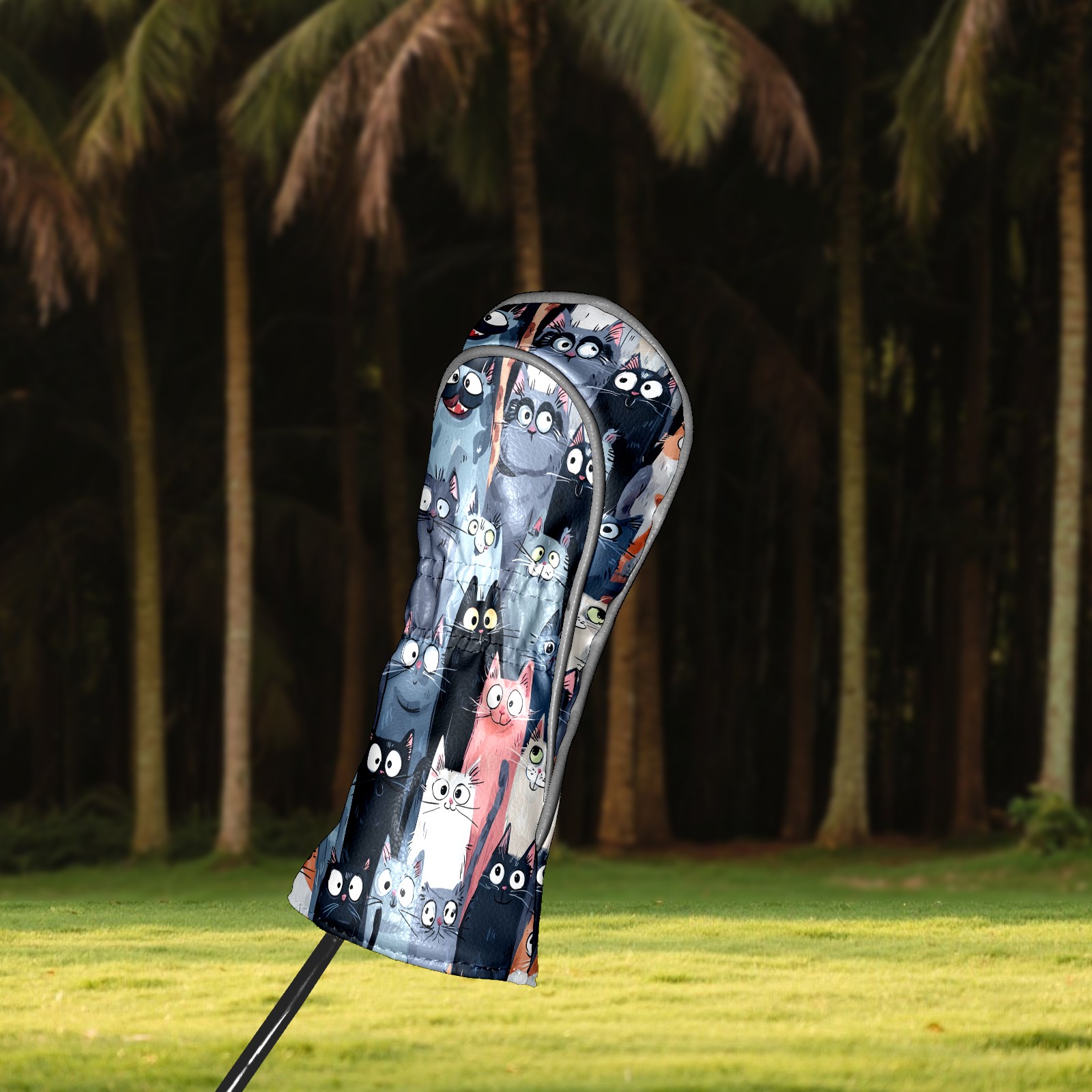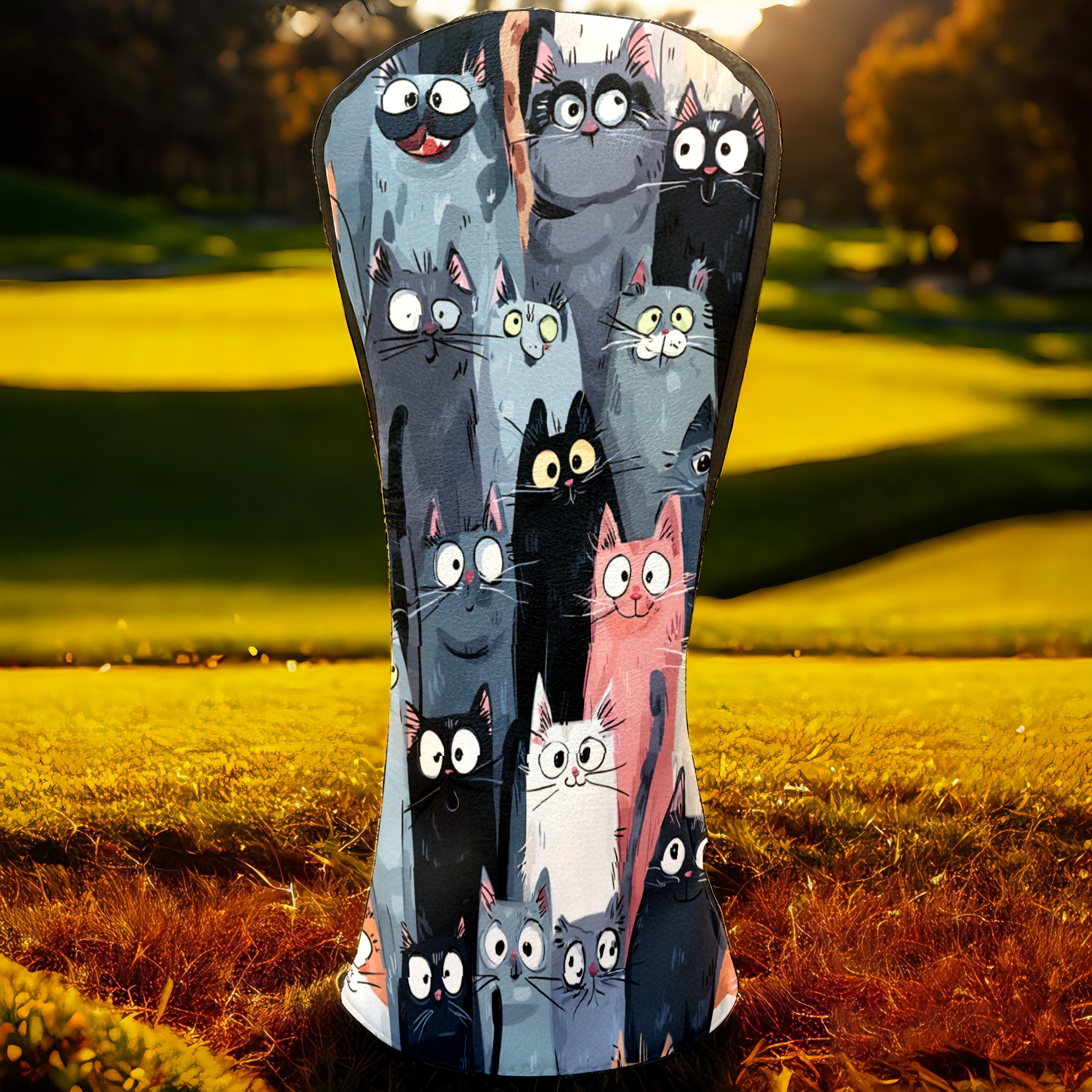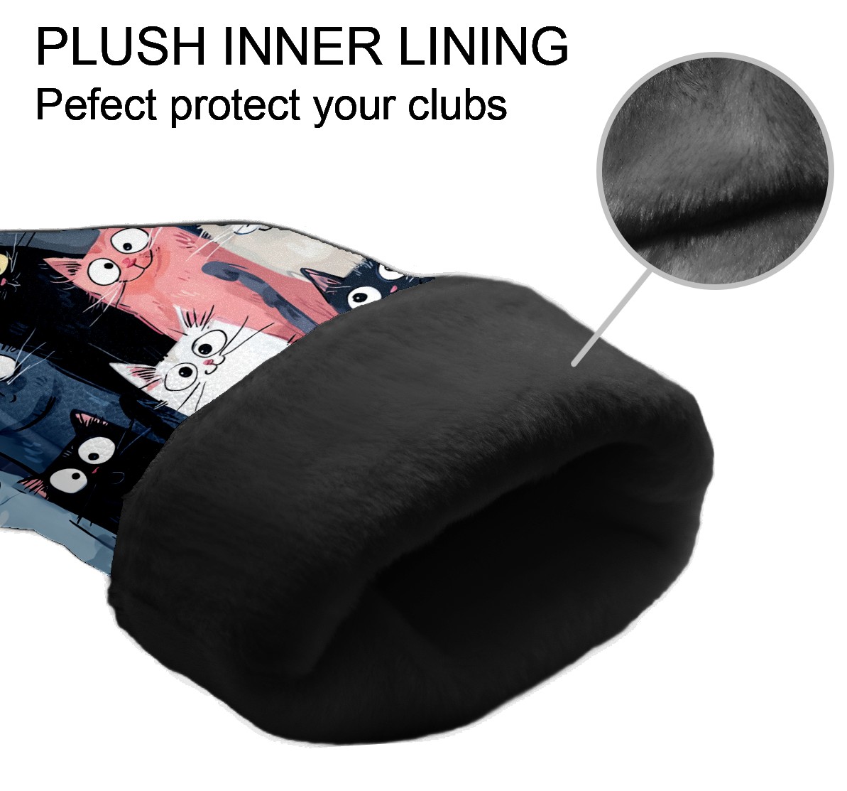Golf Club Head Covers Colorful Cartoon Cats Design for Driver & Hybrid, Waterproof PU Leather with Plush Velvet Lining, Scratch Protection & Secure Fit, Ideal Golf Gift for Men Women