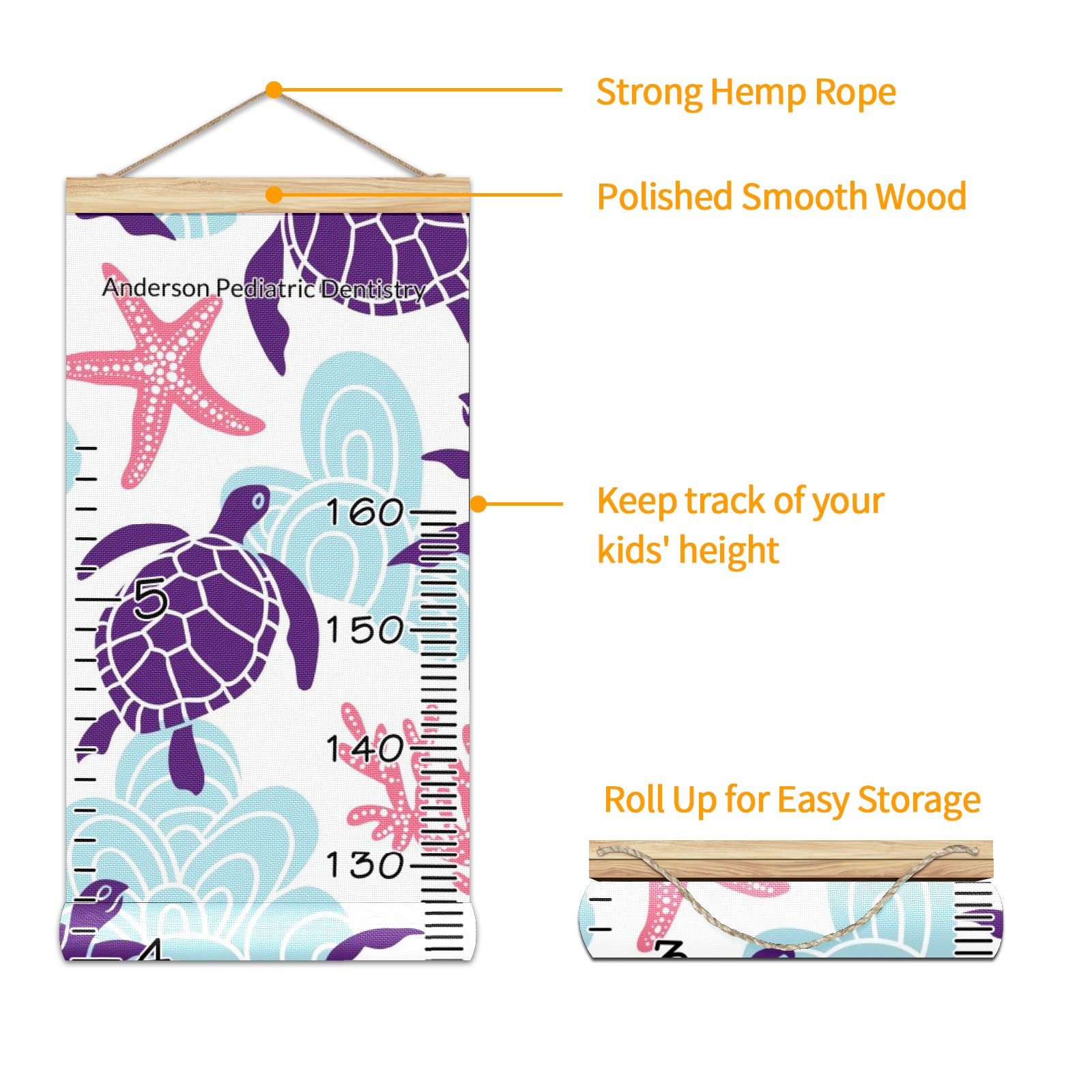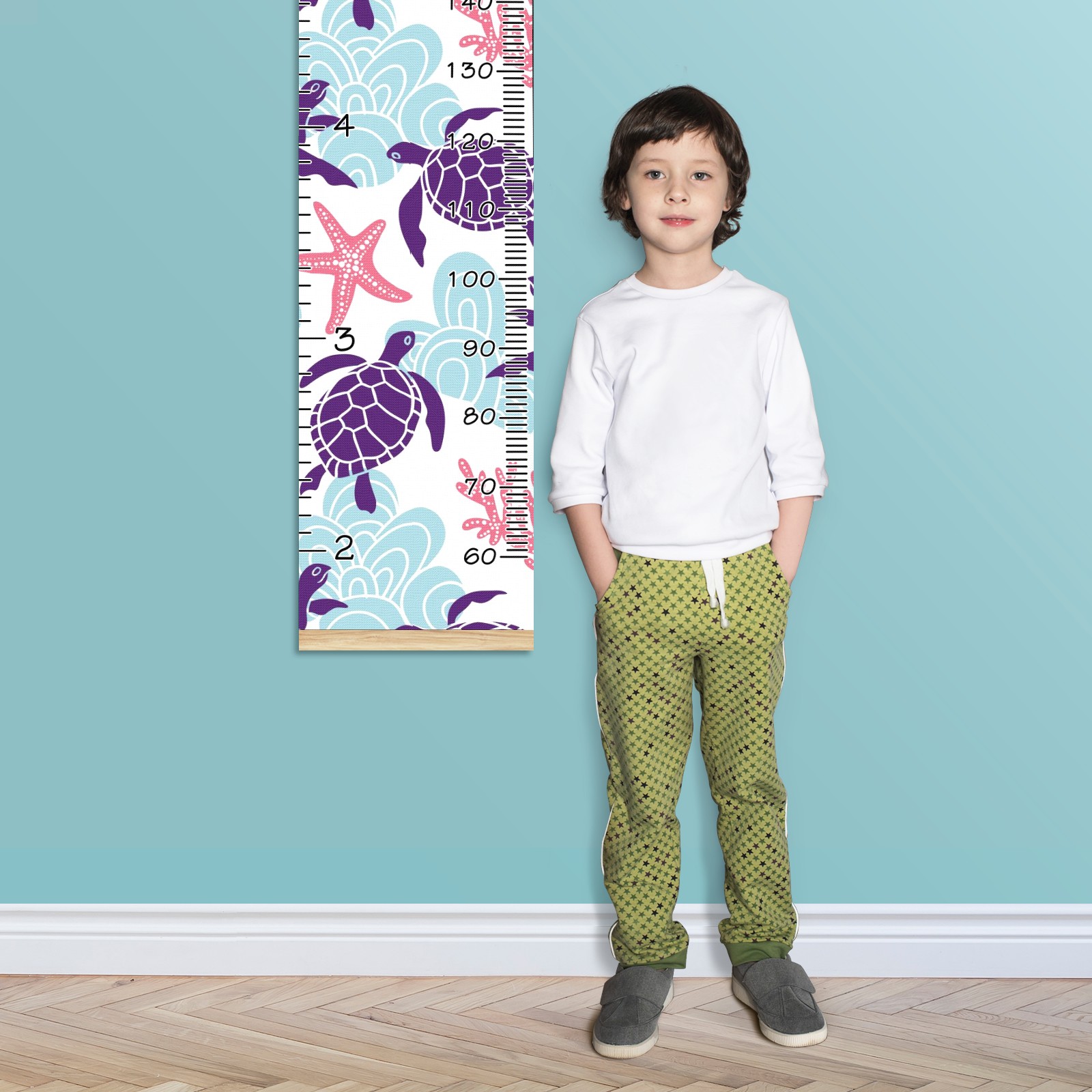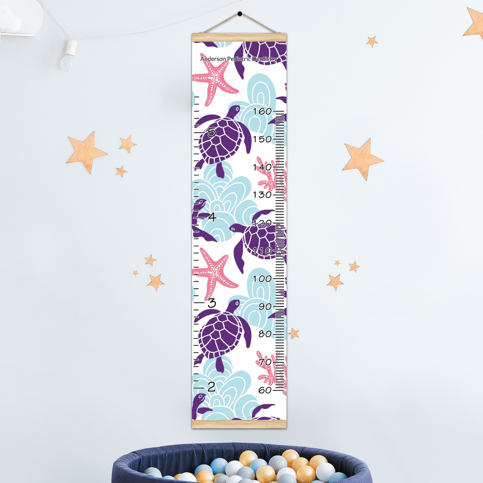 Personalized Kids Name Growth Chart Ruler for Wall Wood Frame Canvas Height Measure Chart 13.4x56 in Hanging Growth Chart Sea Turtle Starfish Coral10.10 Boys Girls Room Decor