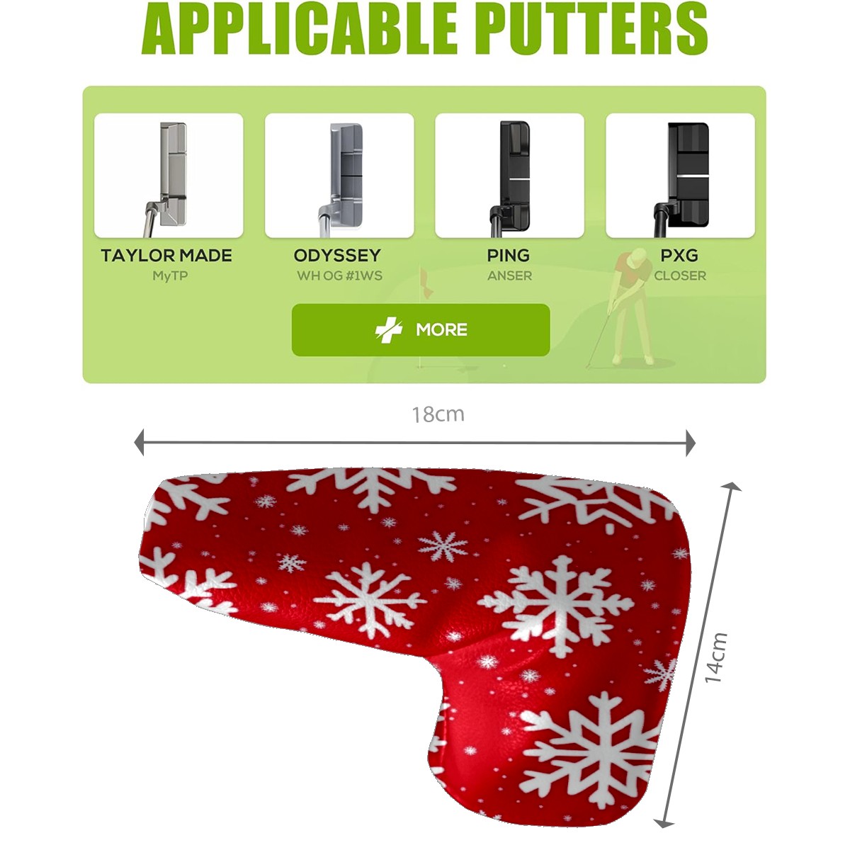 Golf Club Head Covers for Blade Putter, Waterproof Leather Headcovers for Golf Clubs, Ideal Golf Accessories Gift for Men Women (White Snowflakes)