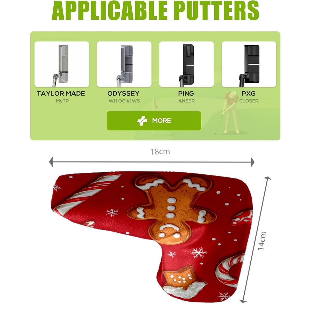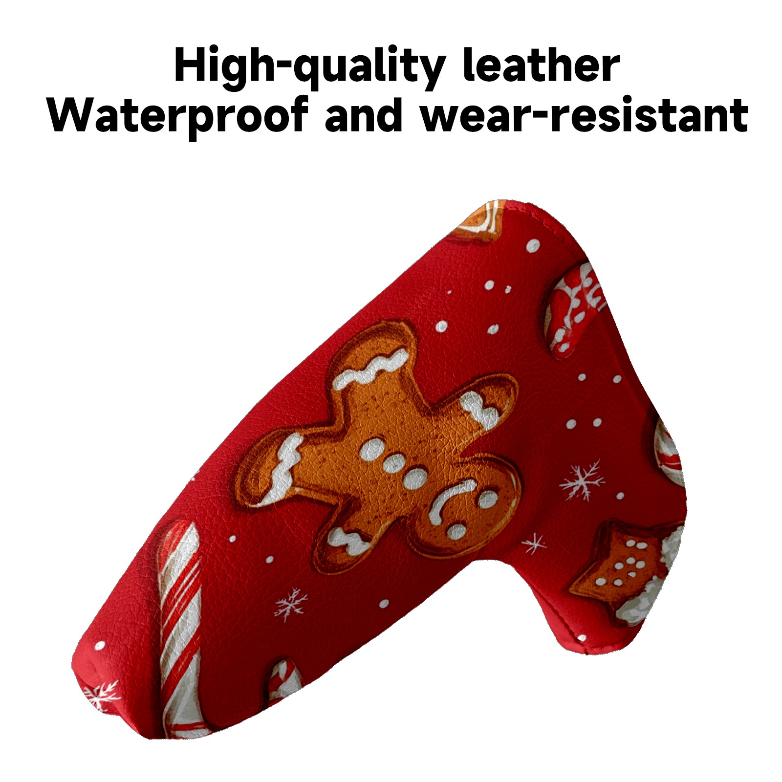 Golf Club Head Covers for Blade Putter, Waterproof Leather Headcovers for Golf Clubs, Ideal Golf Accessories Gift for Men Women (Cookies And Candy Cane)