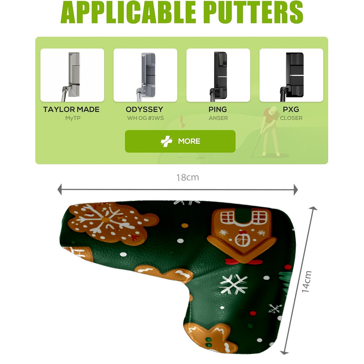 Golf Club Head Covers for Blade Putter, Waterproof Leather Headcovers for Golf Clubs, Ideal Golf Accessories Gift for Men Women (Christmas Pattern)
