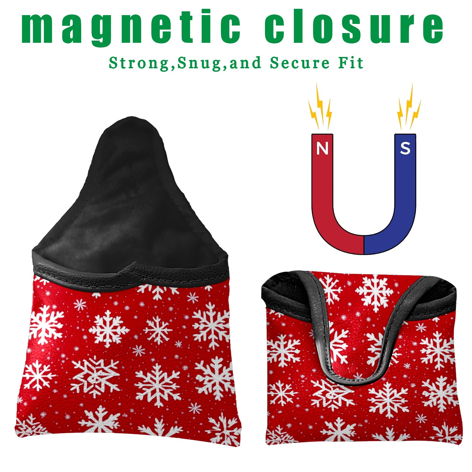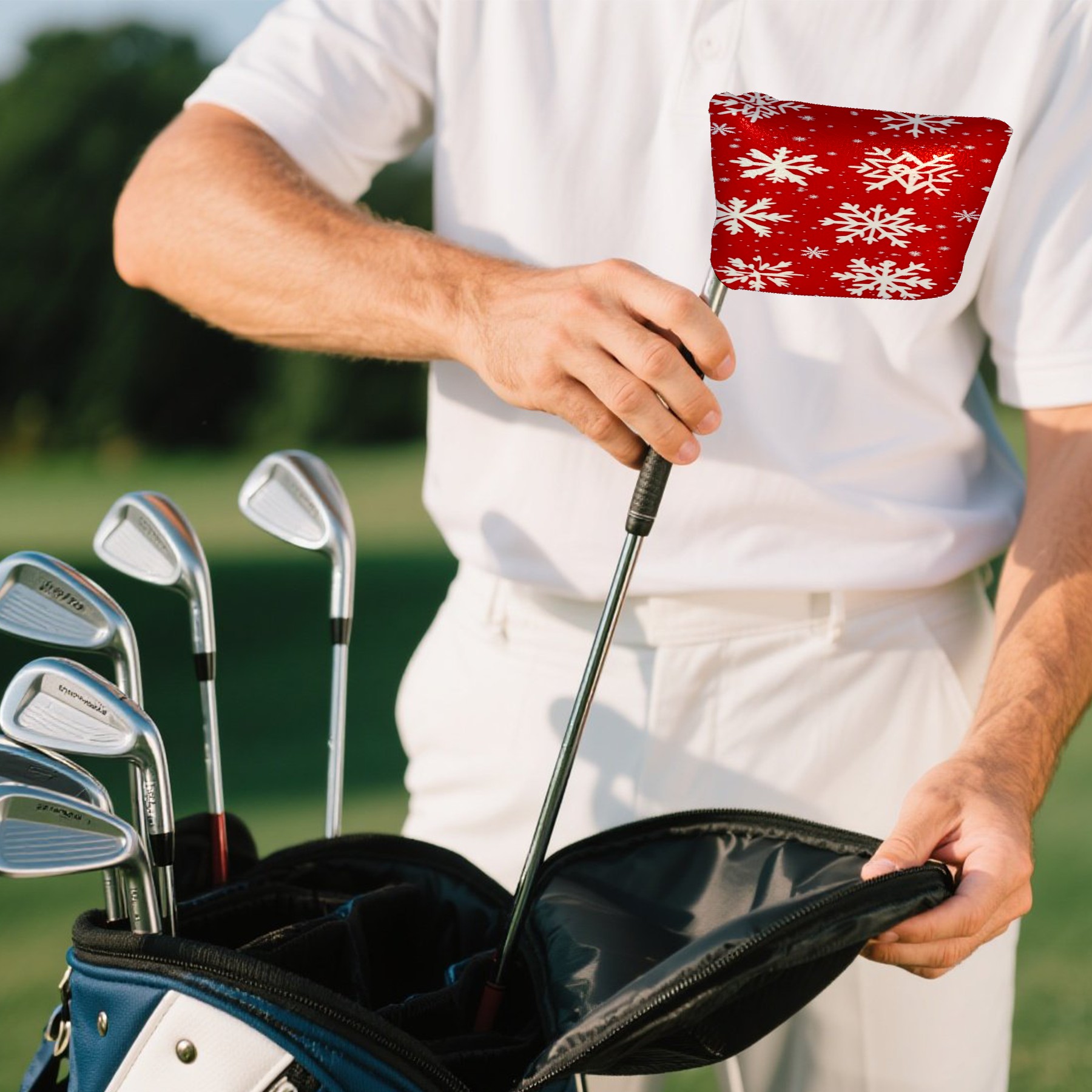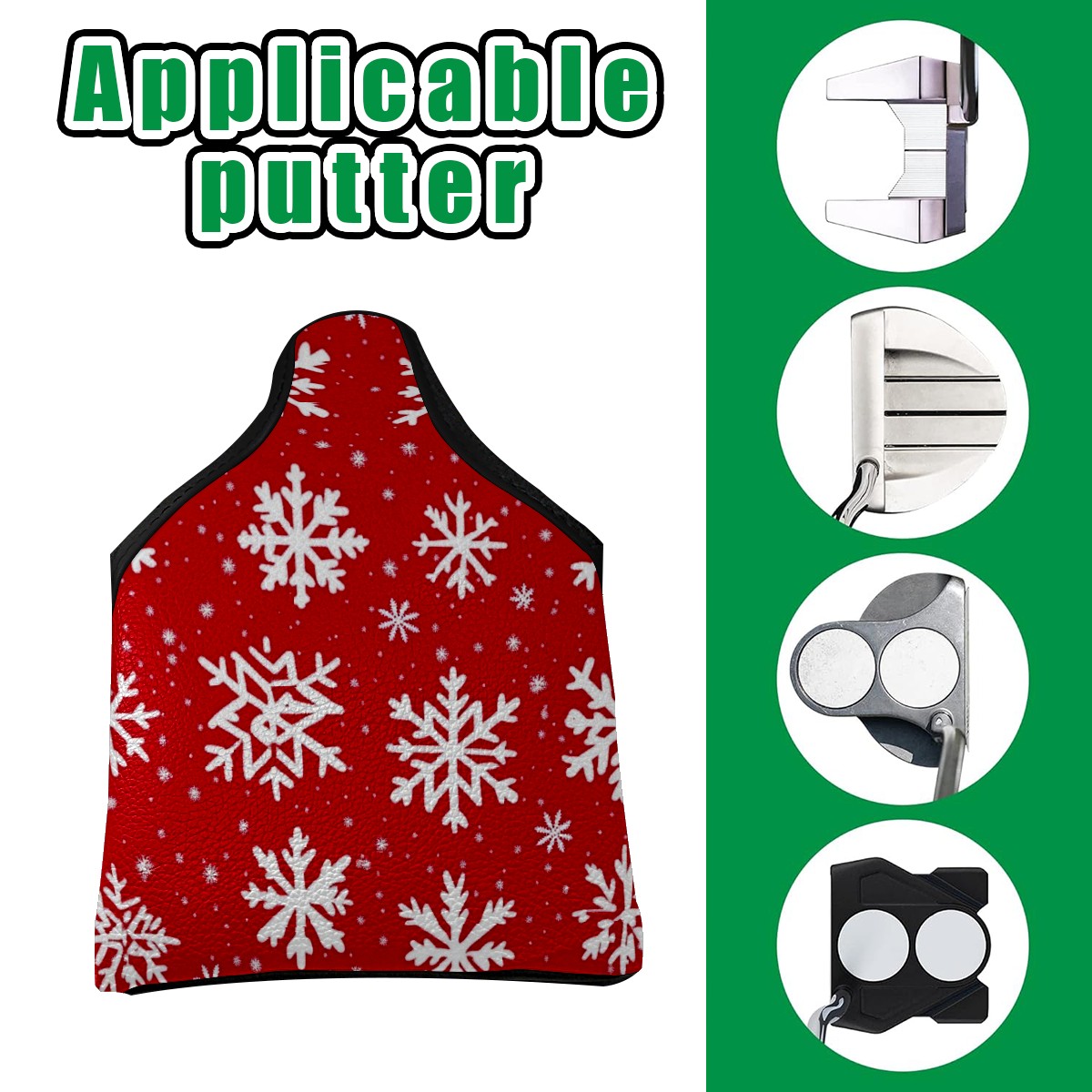 Golf Club Head Covers for Mallet Putter, Waterproof Leather Headcovers for Golf Clubs, Ideal Golf Accessories Gift for Men Women (White Snowflakes)