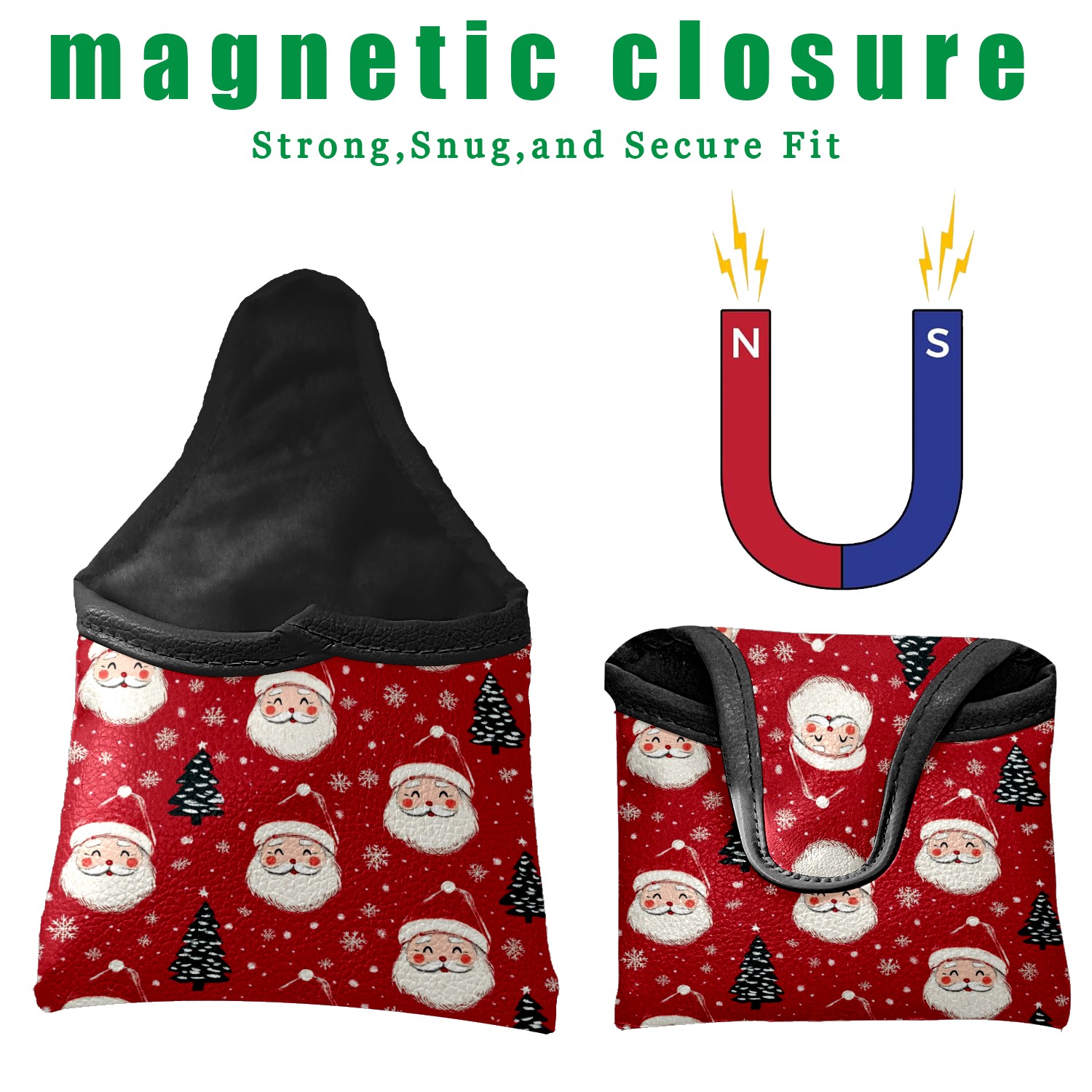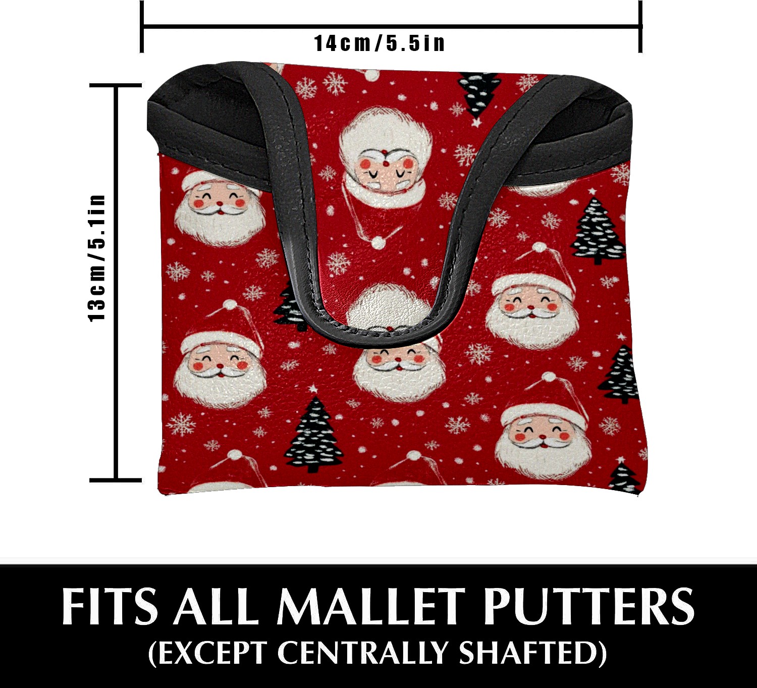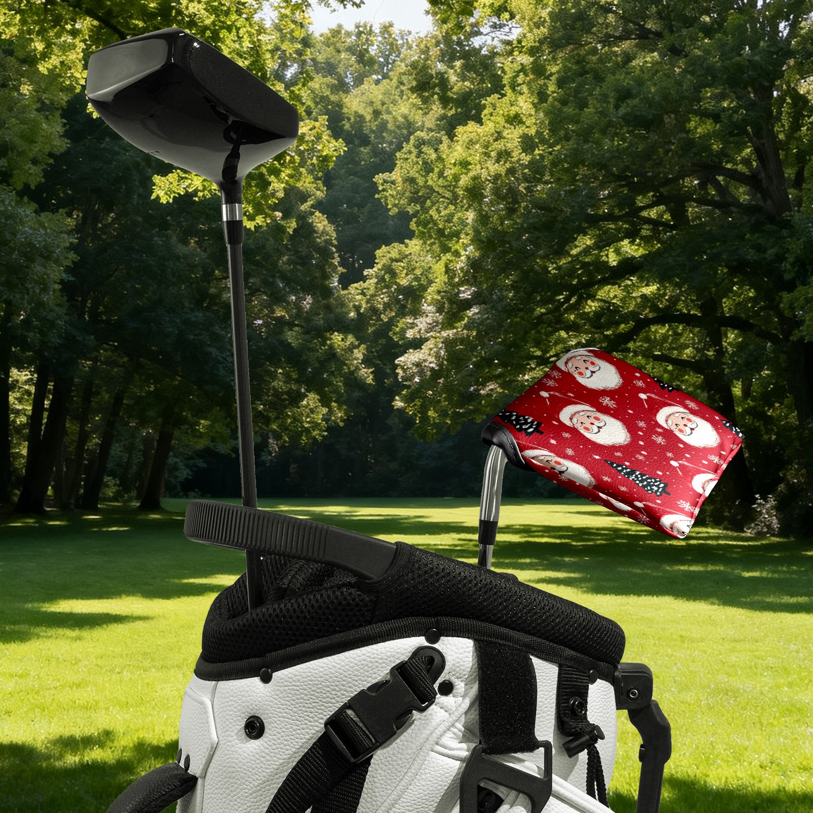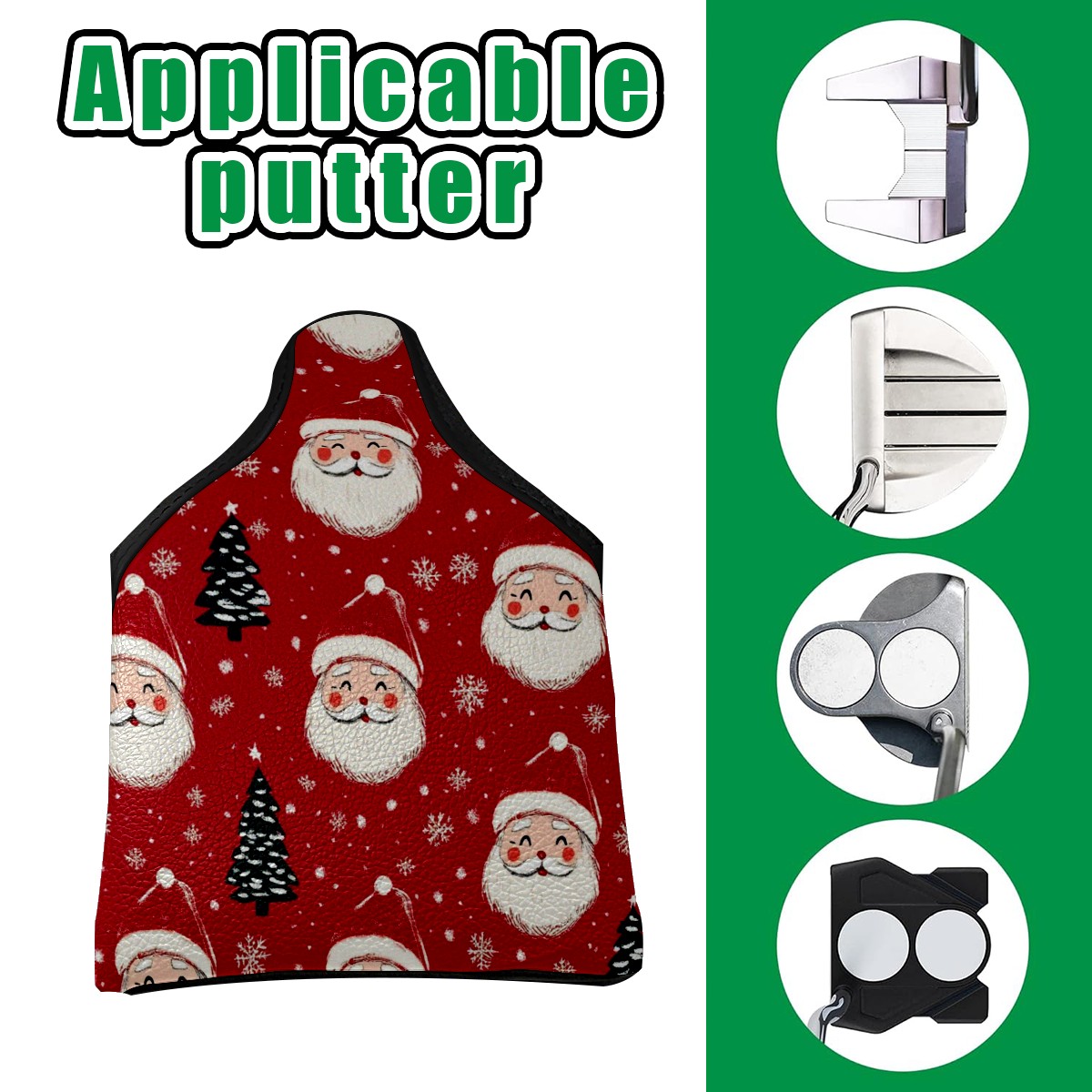 Golf Club Head Covers for Mallet Putter, Waterproof Leather Headcovers for Golf Clubs, Ideal Golf Accessories Gift for Men Women (Santa Claus And Christmas Trees)