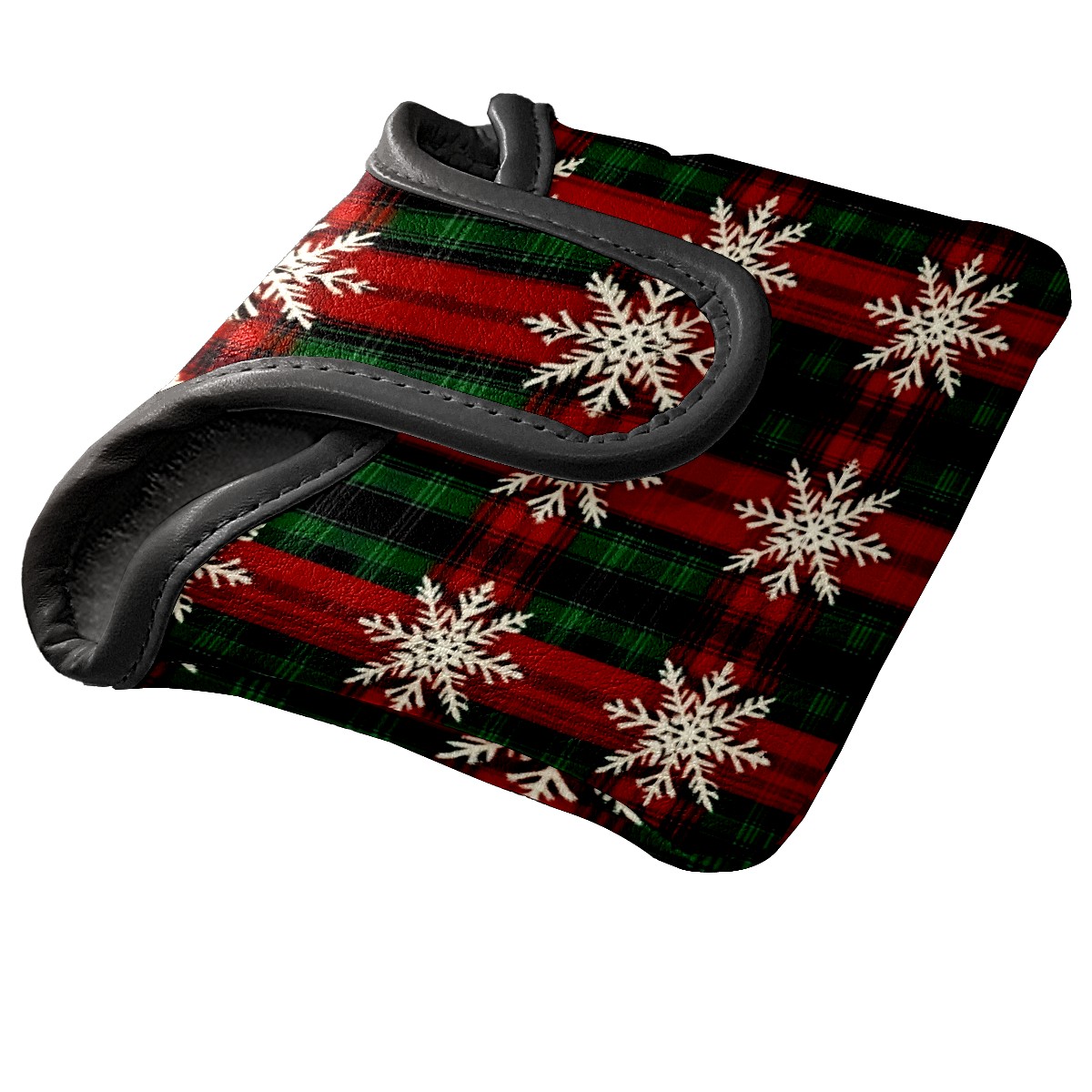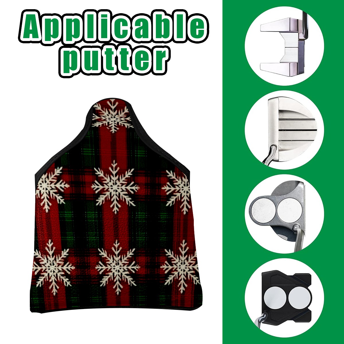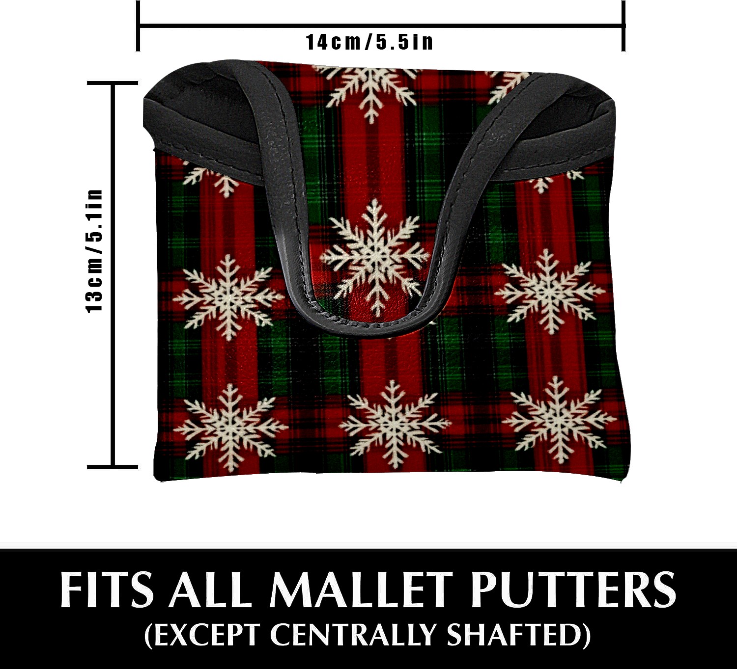 Golf Club Head Covers for Mallet Putter, Waterproof Leather Headcovers for Golf Clubs, Ideal Golf Accessories Gift for Men Women (Red Green And Black Tartan Plaid Seamless)