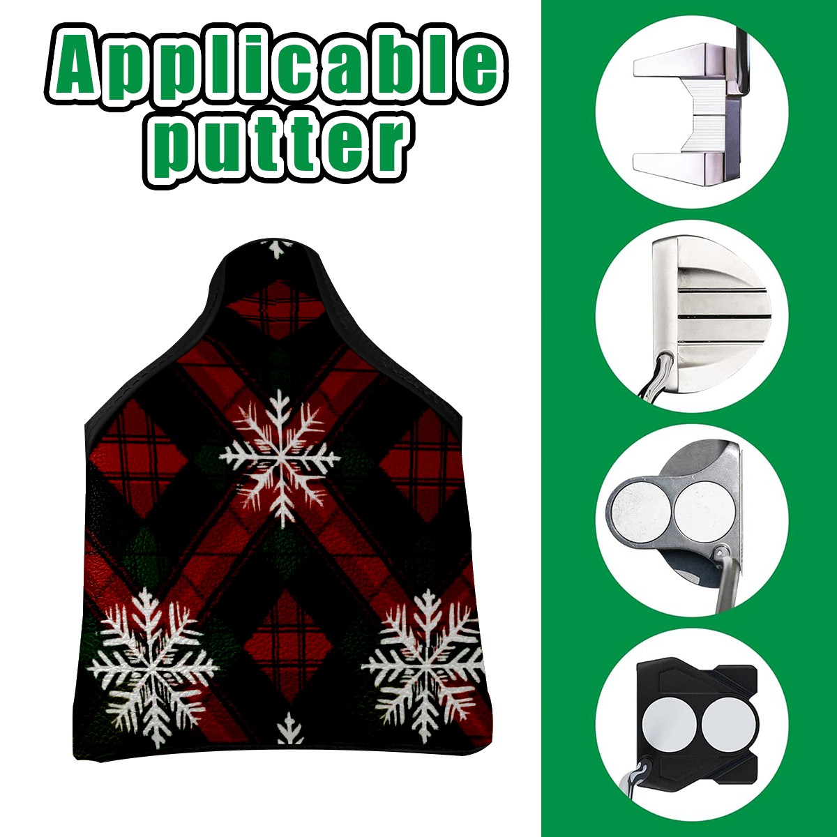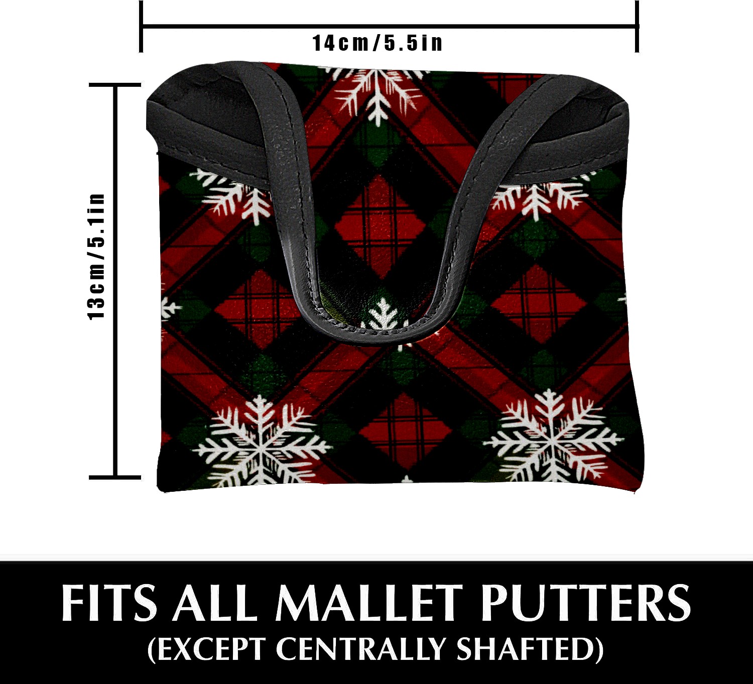 Golf Club Head Covers for Mallet Putter, Waterproof Leather Headcovers for Golf Clubs, Ideal Golf Accessories Gift for Men Women (Red Green And Black Tartan)