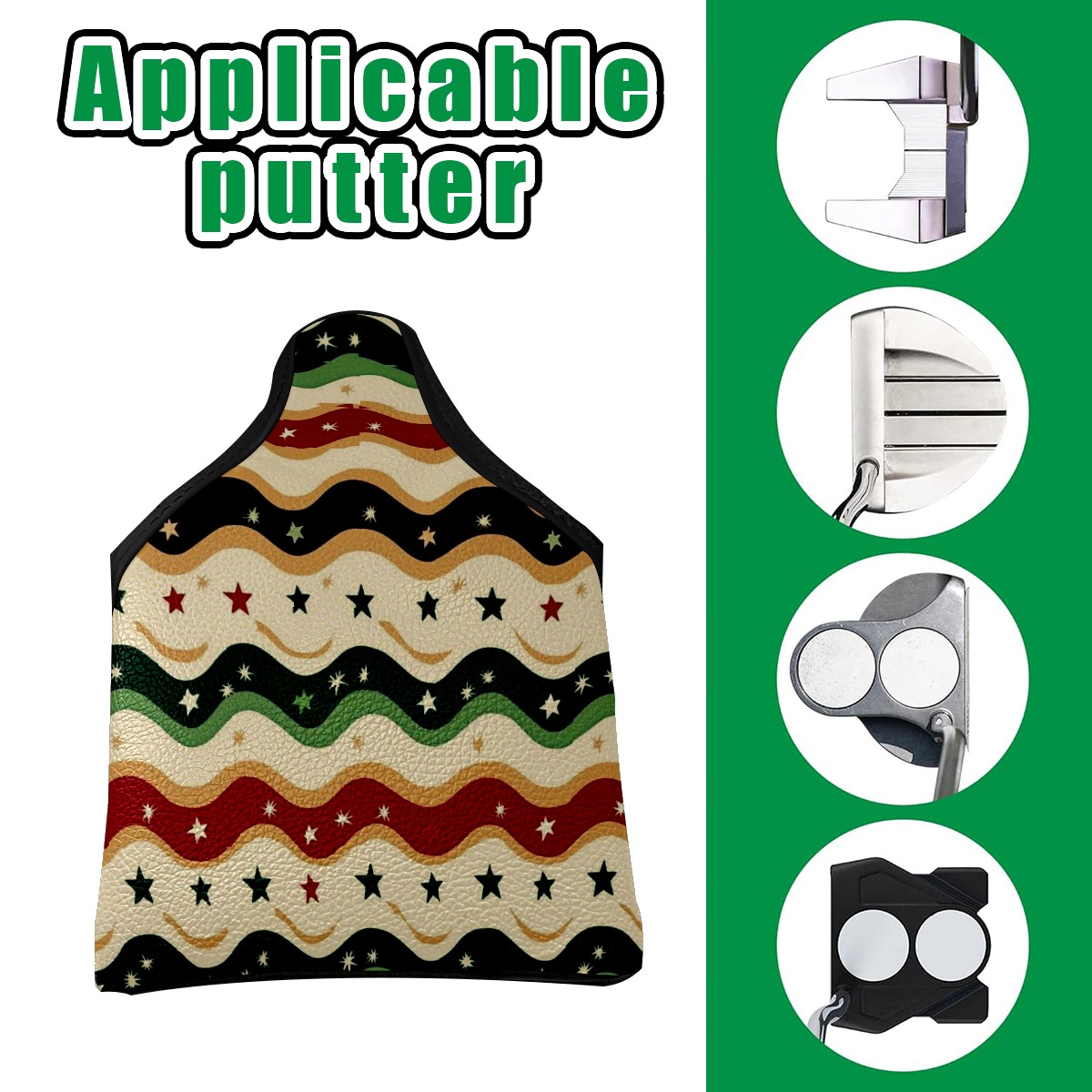 Golf Club Head Covers for Mallet Putter, Waterproof Leather Headcovers for Golf Clubs, Ideal Golf Accessories Gift for Men Women (Christmas-themed_)