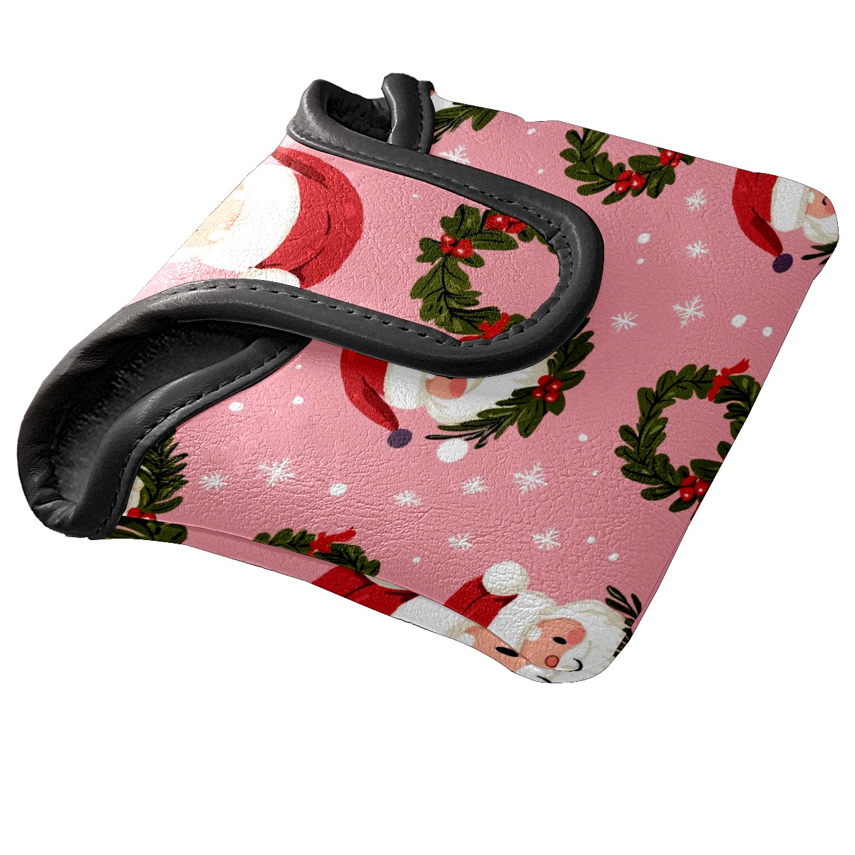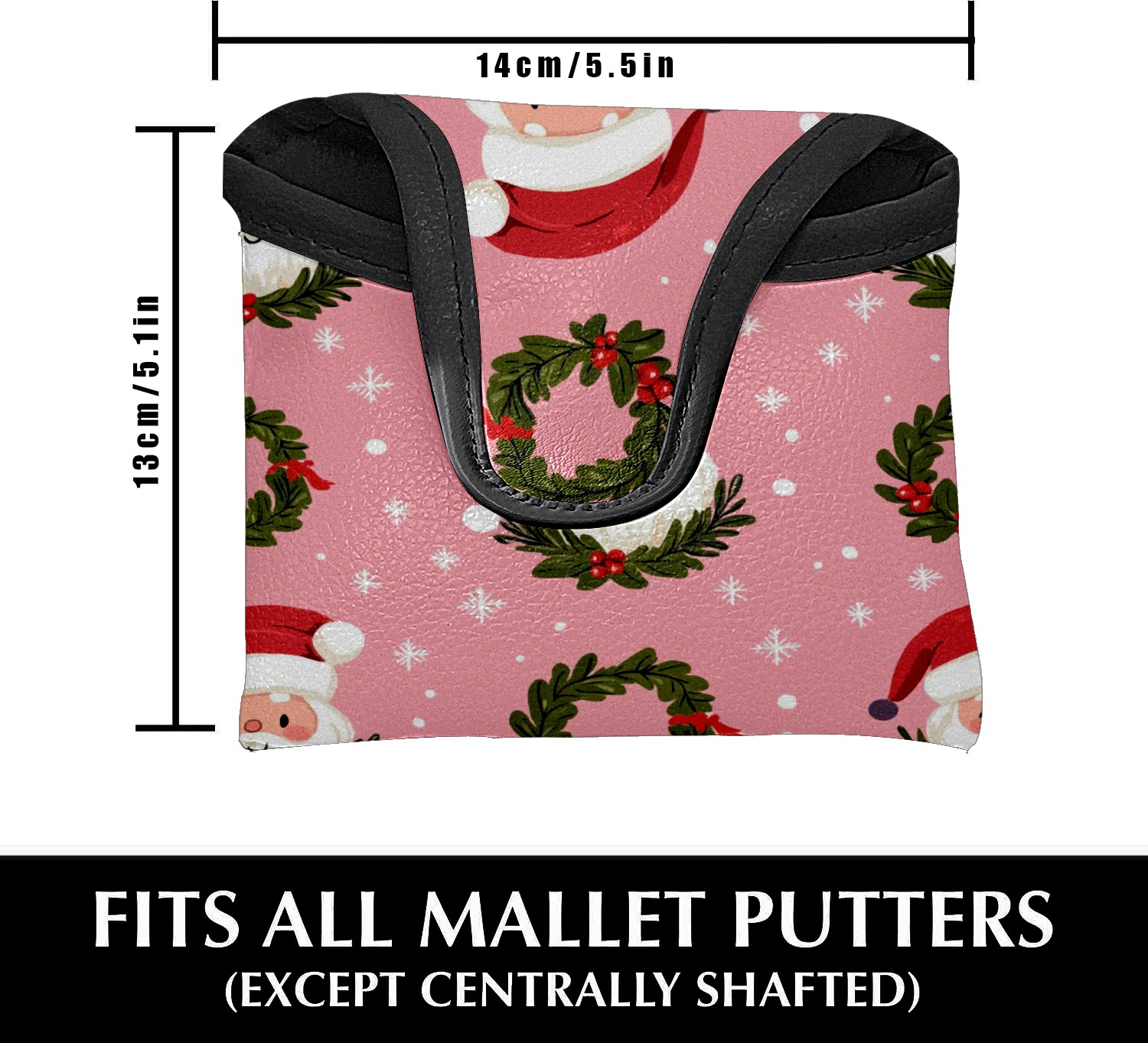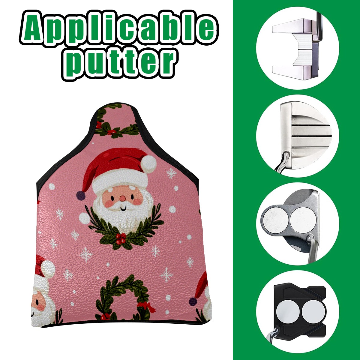 Golf Club Head Covers for Mallet Putter, Waterproof Leather Headcovers for Golf Clubs, Ideal Golf Accessories Gift for Men Women (Cute Santa And Wreath)