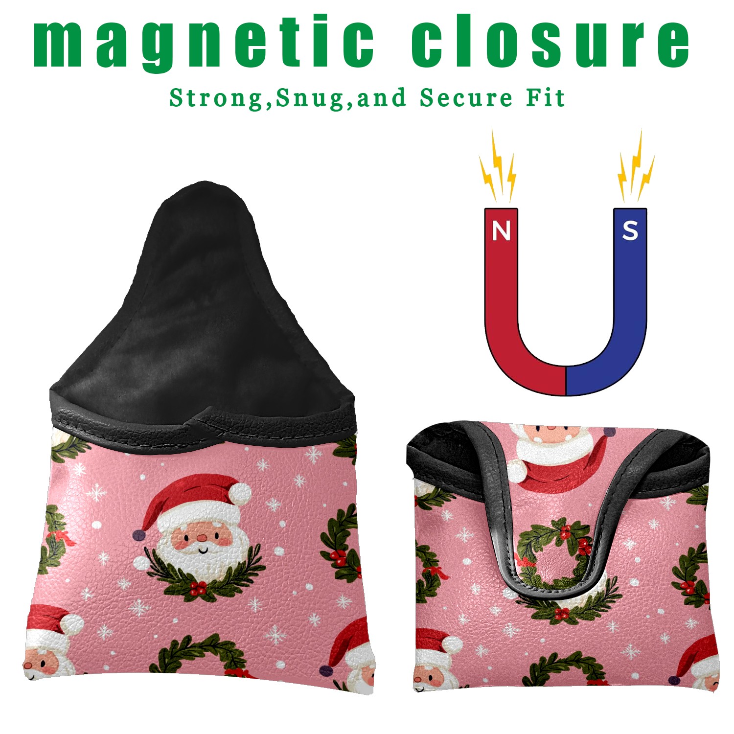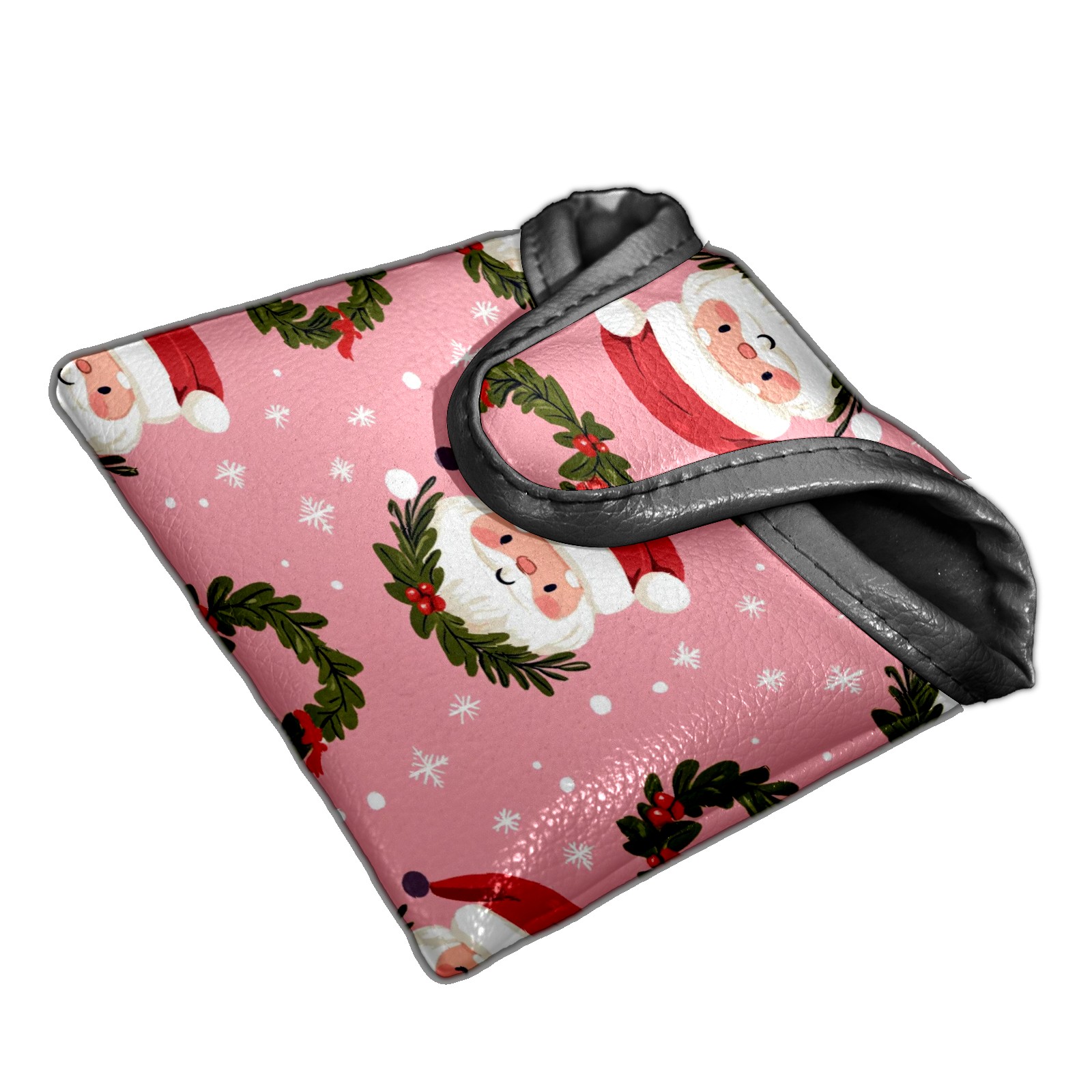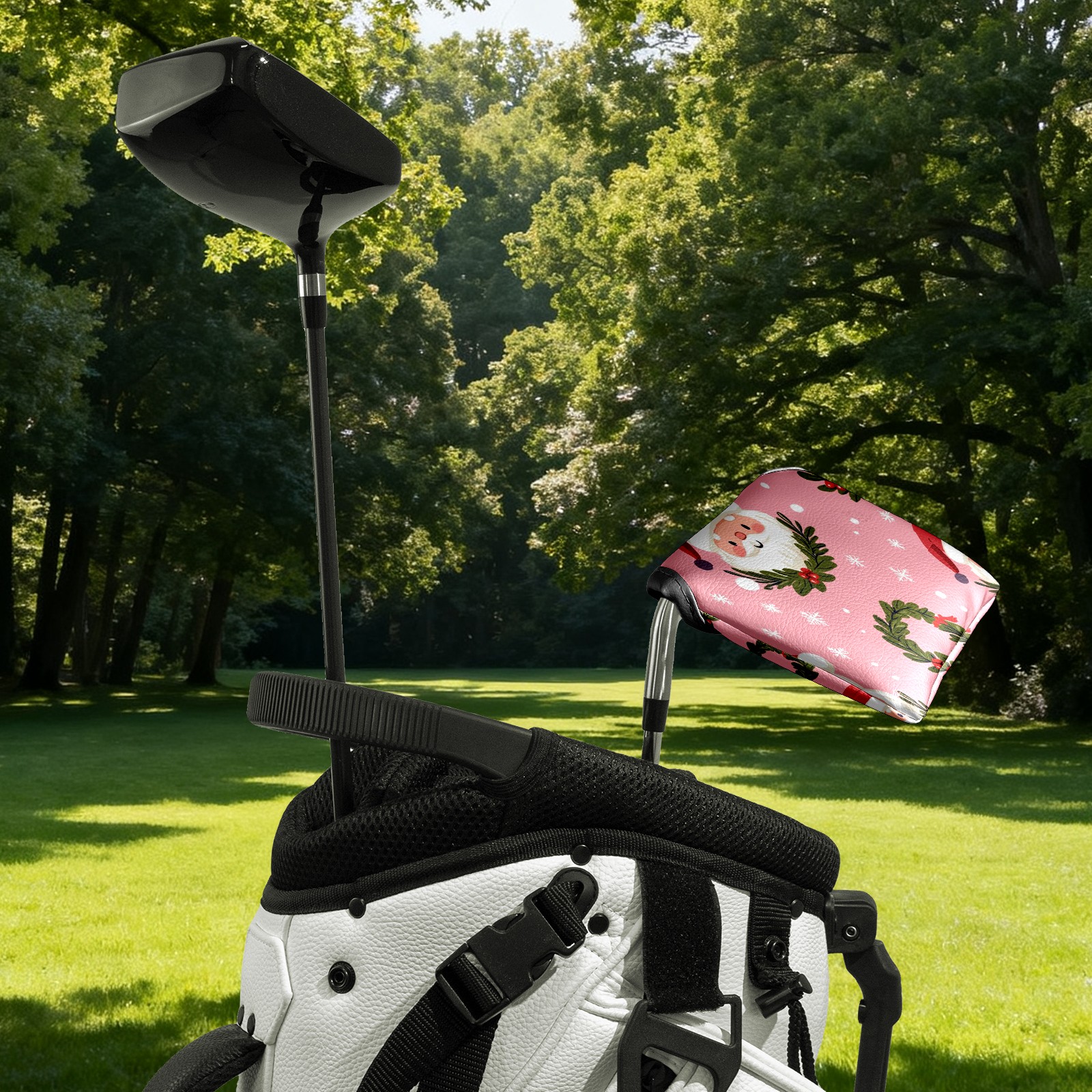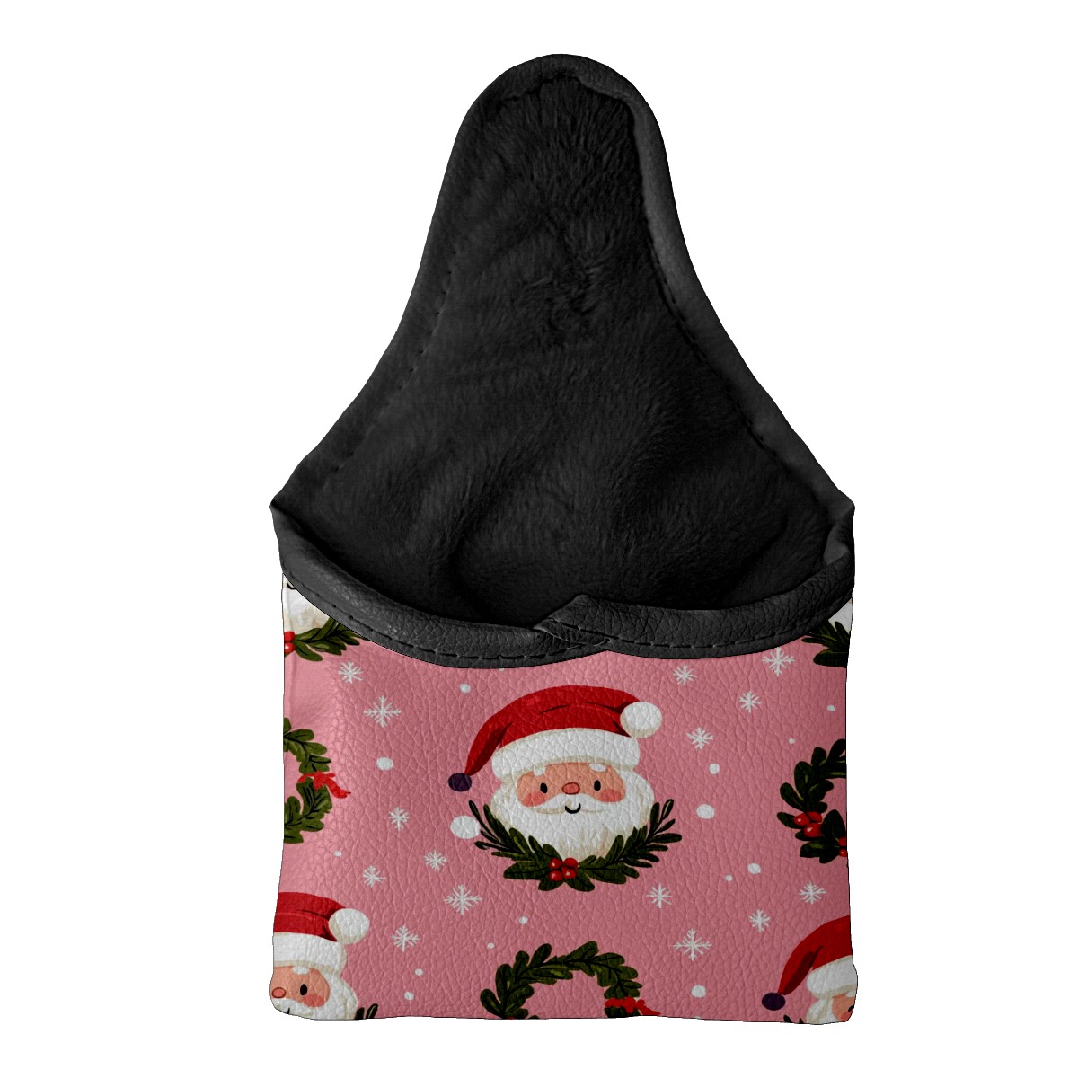 Golf Club Head Covers for Mallet Putter, Waterproof Leather Headcovers for Golf Clubs, Ideal Golf Accessories Gift for Men Women (Cute Santa And Wreath)