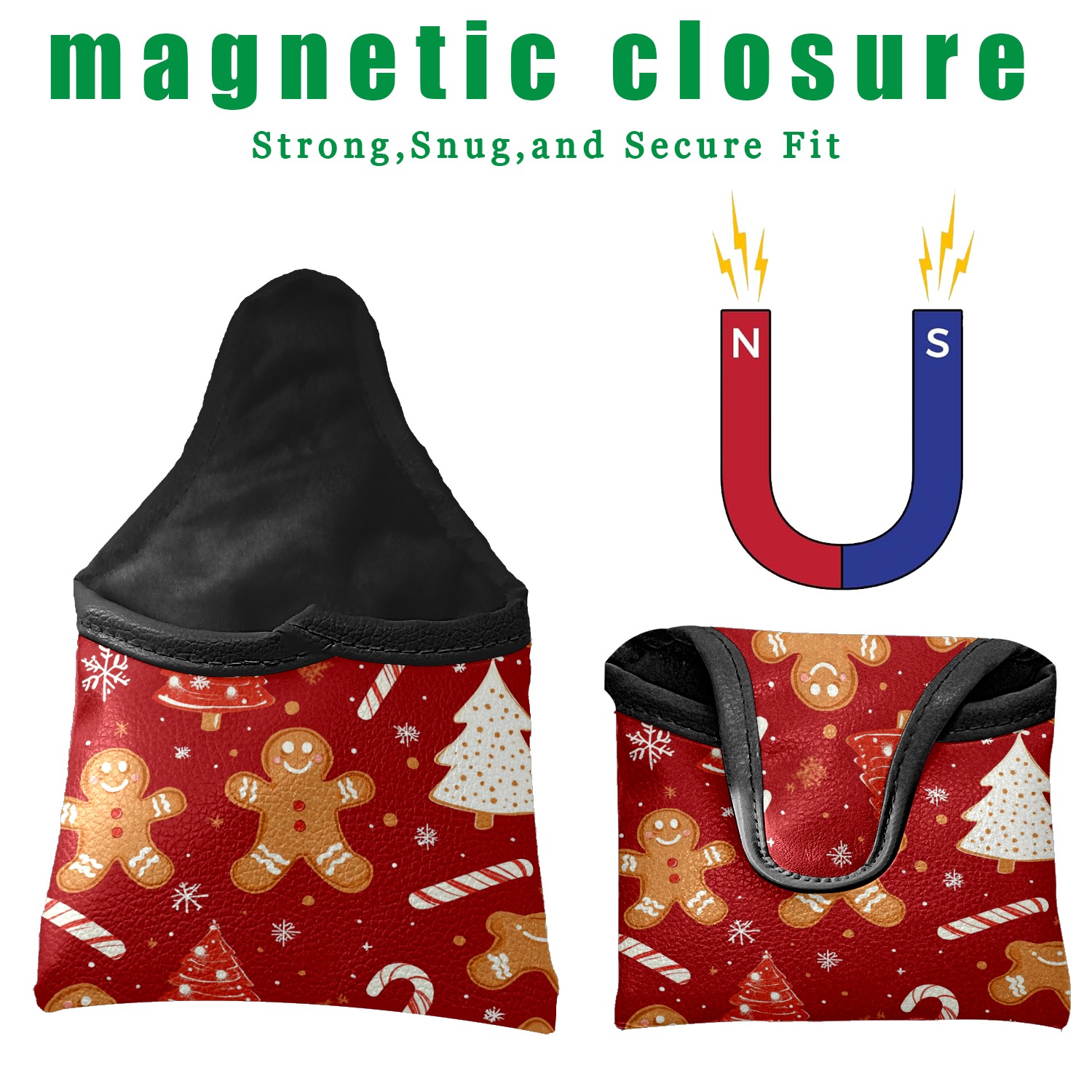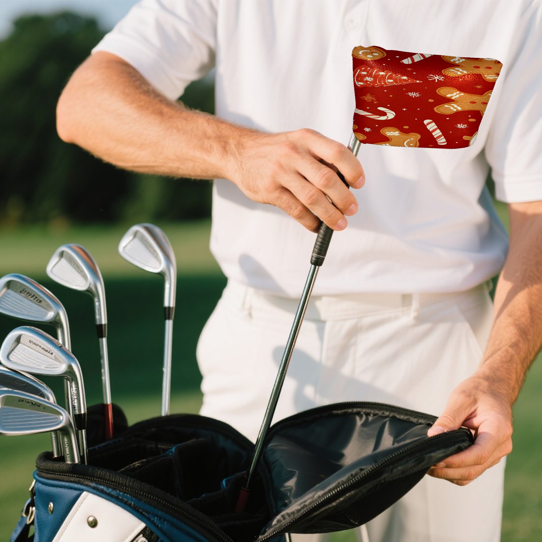 Golf Club Head Covers for Mallet Putter, Waterproof Leather Headcovers for Golf Clubs, Ideal Golf Accessories Gift for Men Women (Christmas Tree And Candy Cane)