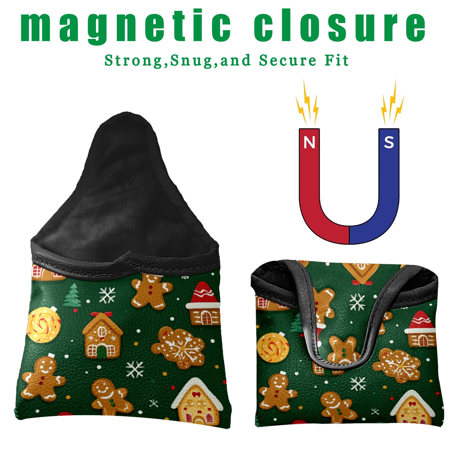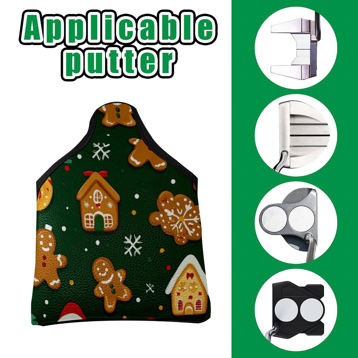 Golf Club Head Covers for Mallet Putter, Waterproof Leather Headcovers for Golf Clubs, Ideal Golf Accessories Gift for Men Women (Christmas Pattern)