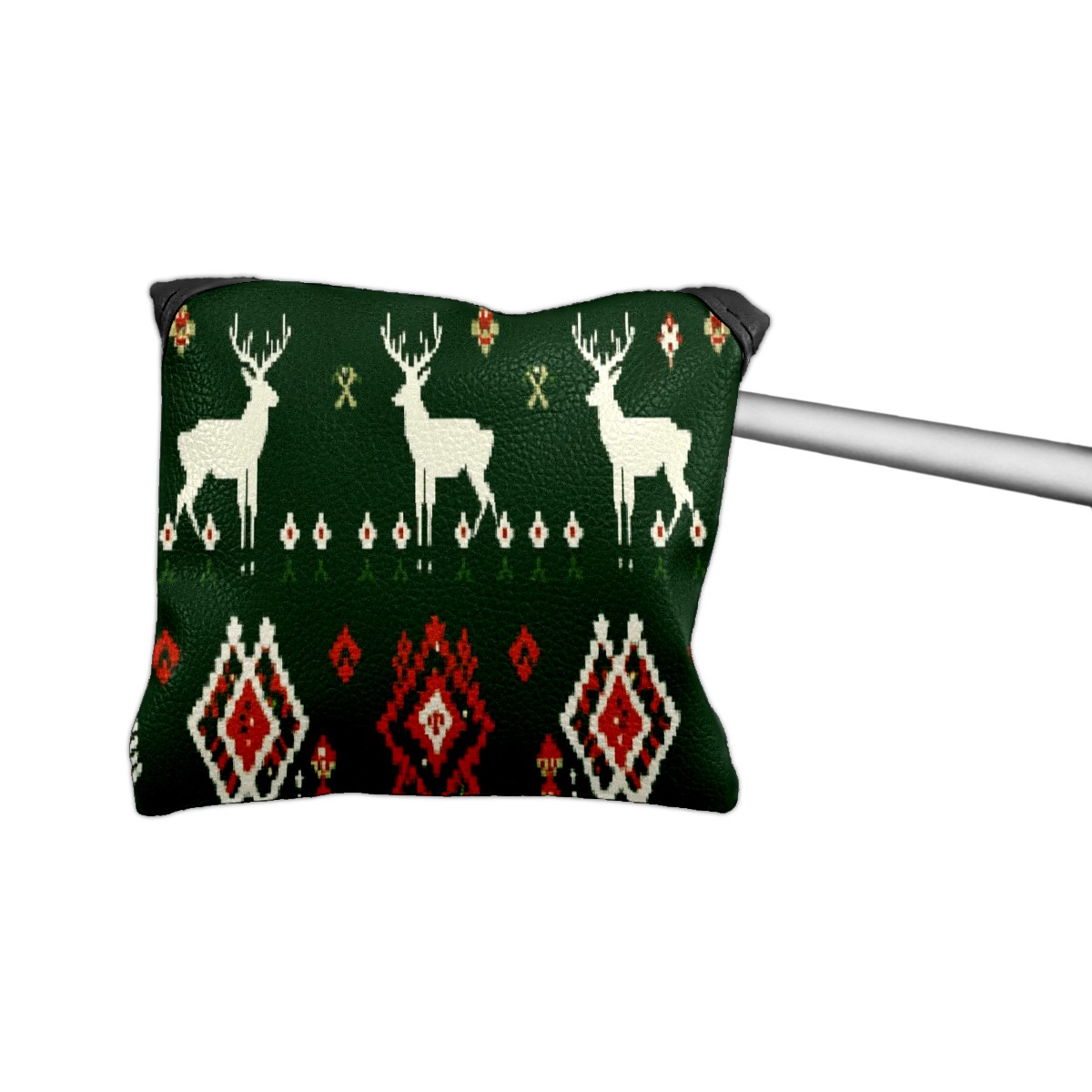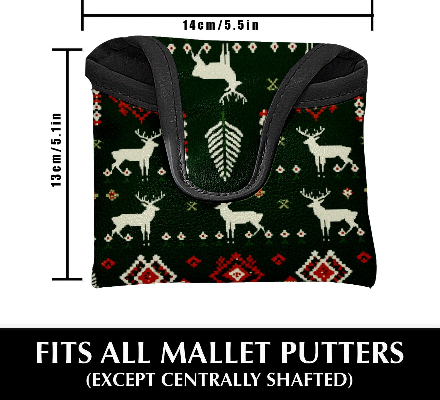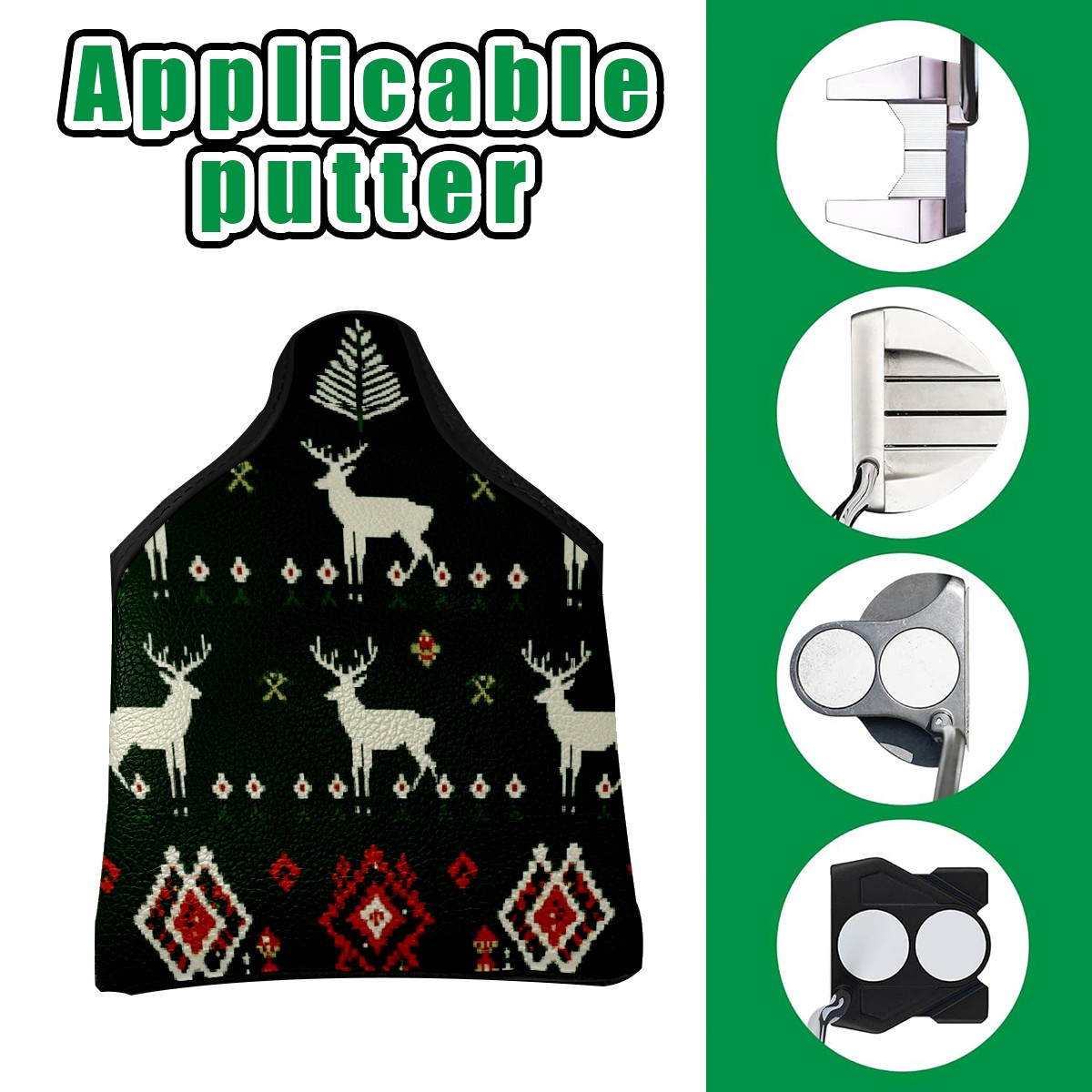 Golf Club Head Covers for Mallet Putter, Waterproof Leather Headcovers for Golf Clubs, Ideal Golf Accessories Gift for Men Women (Christmas Sweater Pattern)