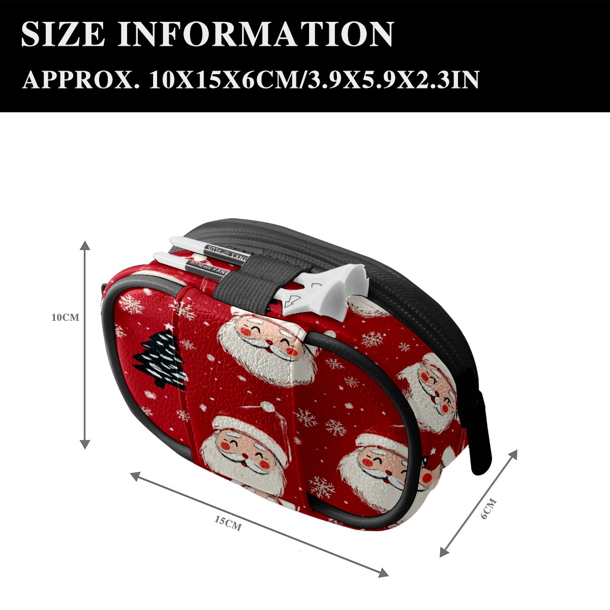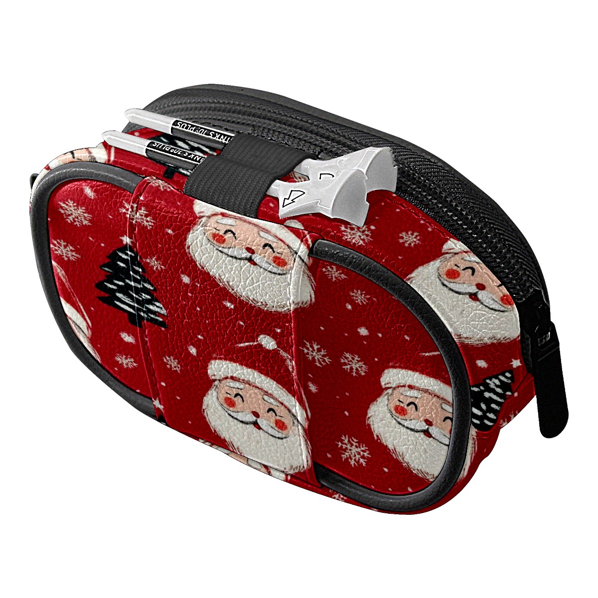 Golf Ball Waist Bag PU Leather Golf Ball Pouch with Belt Clip, Portable Golf Tee Holder & Golf Accessories for Men Women, Golfing Fanny Pack for Balls Tees Valuables (Santa Claus And Christmas Trees)