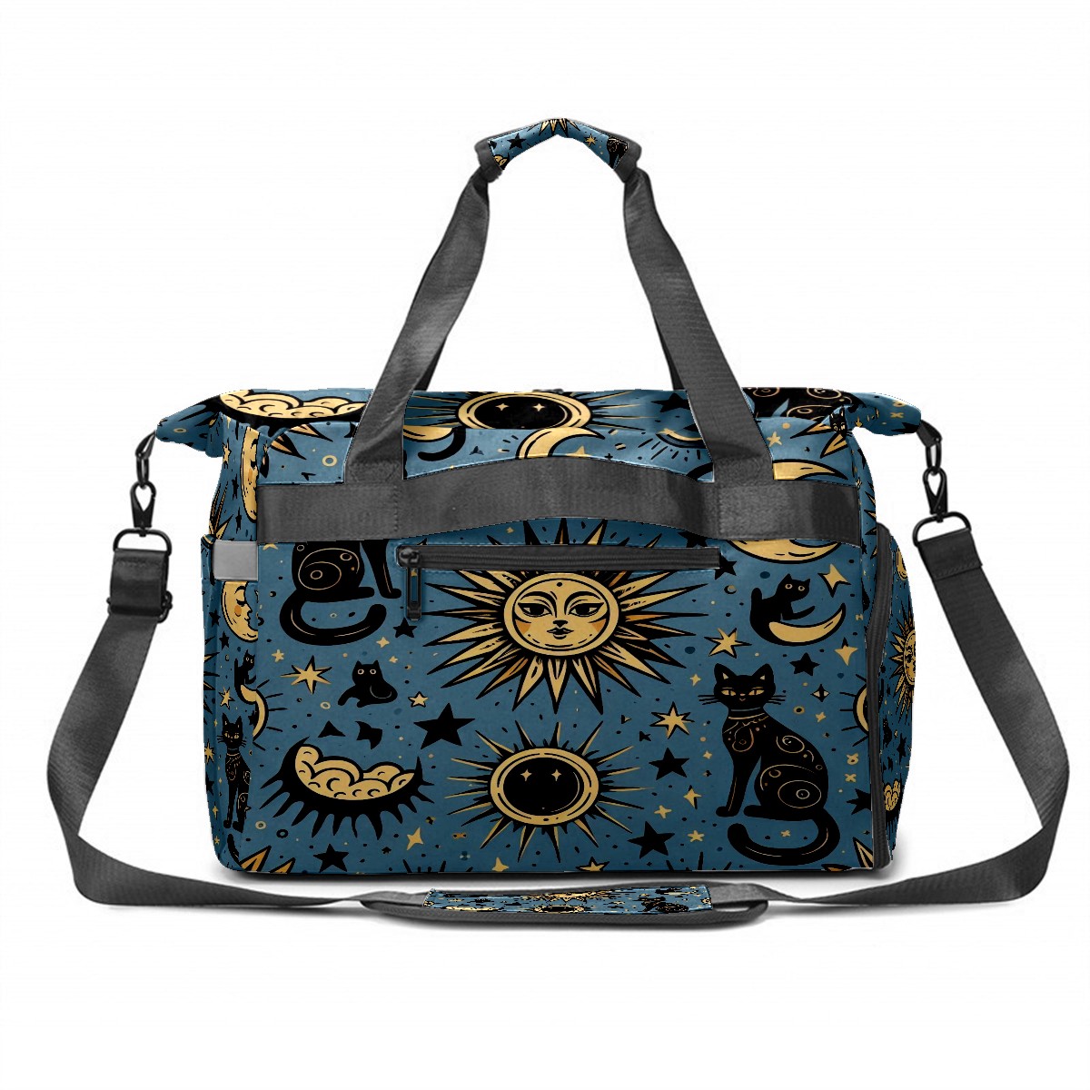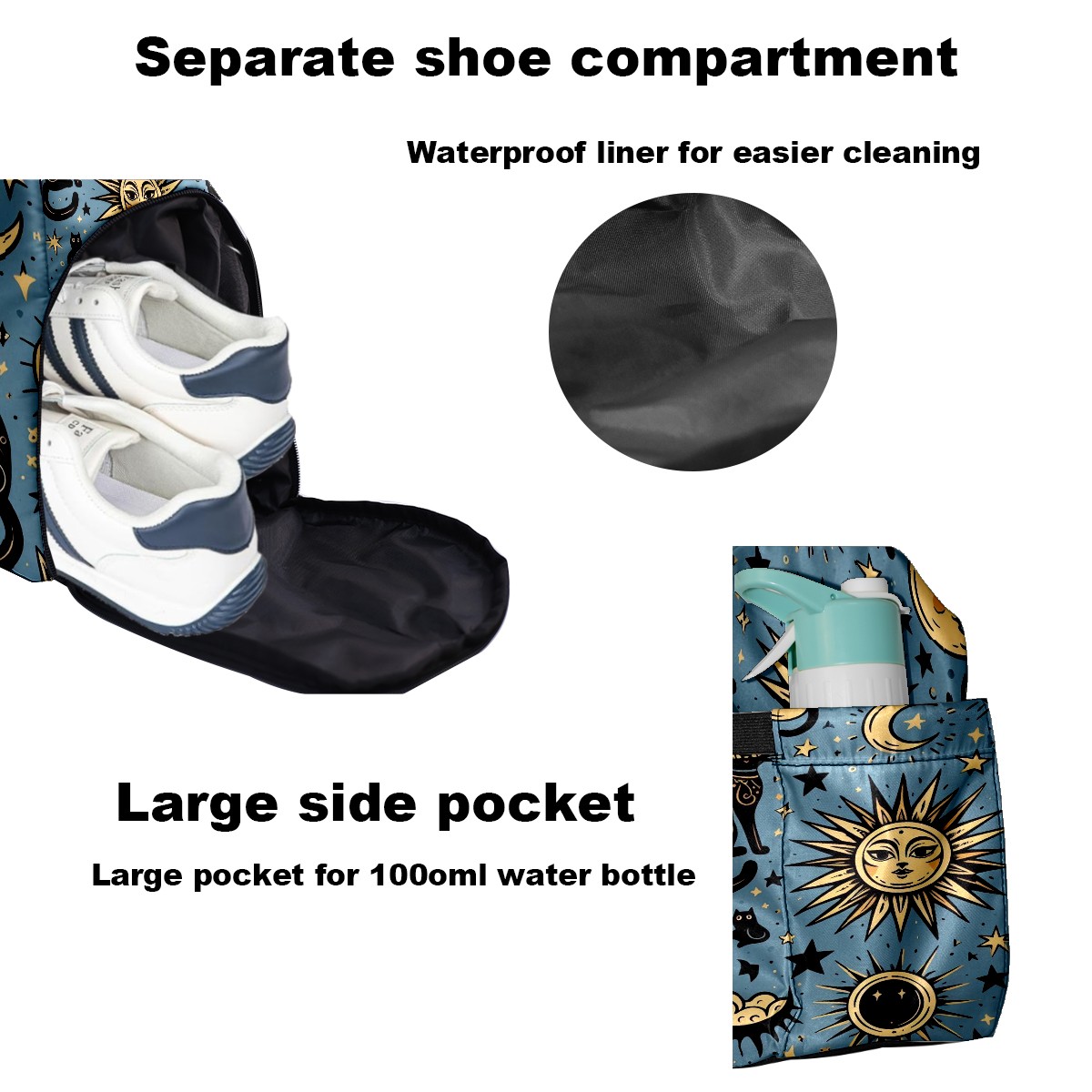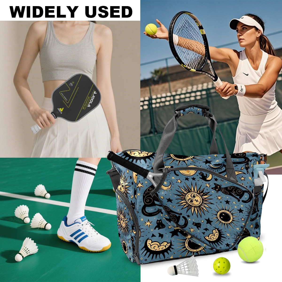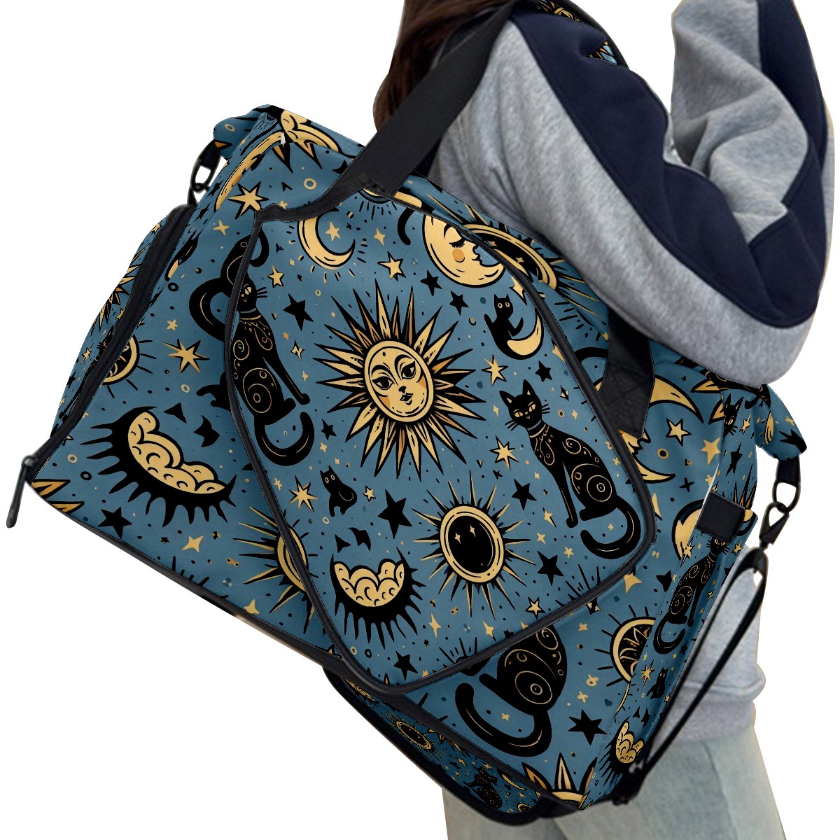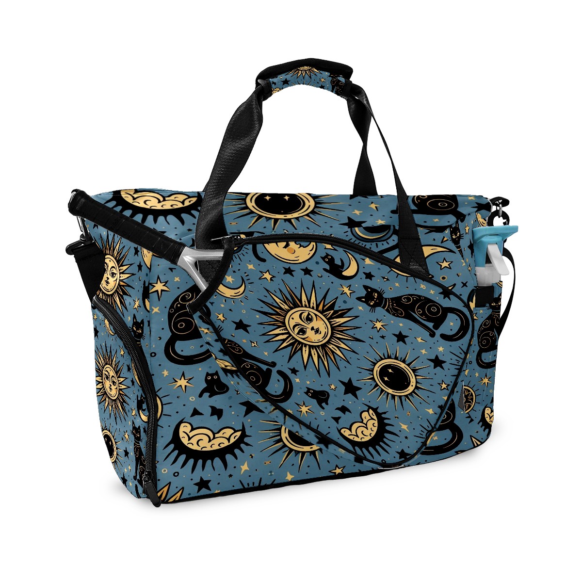 Tennis Bag Large, Celestial Moon Star Black Cats Multi-Functional Sports Duffel Bag with Ventilated Shoe Compartment & Wet Pocket, Gym Bag for Men Women, Fitness Yoga Tennis Travel Carryall Bag