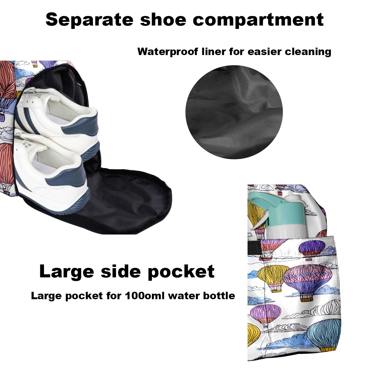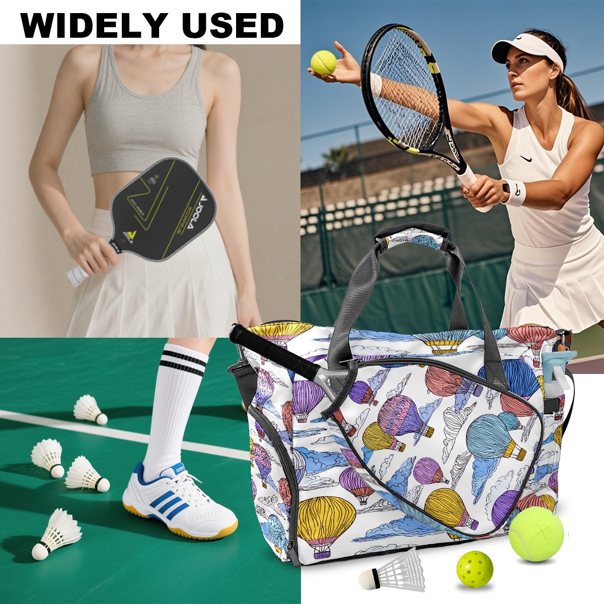 Tennis Bag Large, Colorful Hot Air Balloons Sky Multi-Functional Sports Duffel Bag with Ventilated Shoe Compartment & Wet Pocket, Gym Bag for Men Women, Fitness Yoga Tennis Travel Carryall Bag