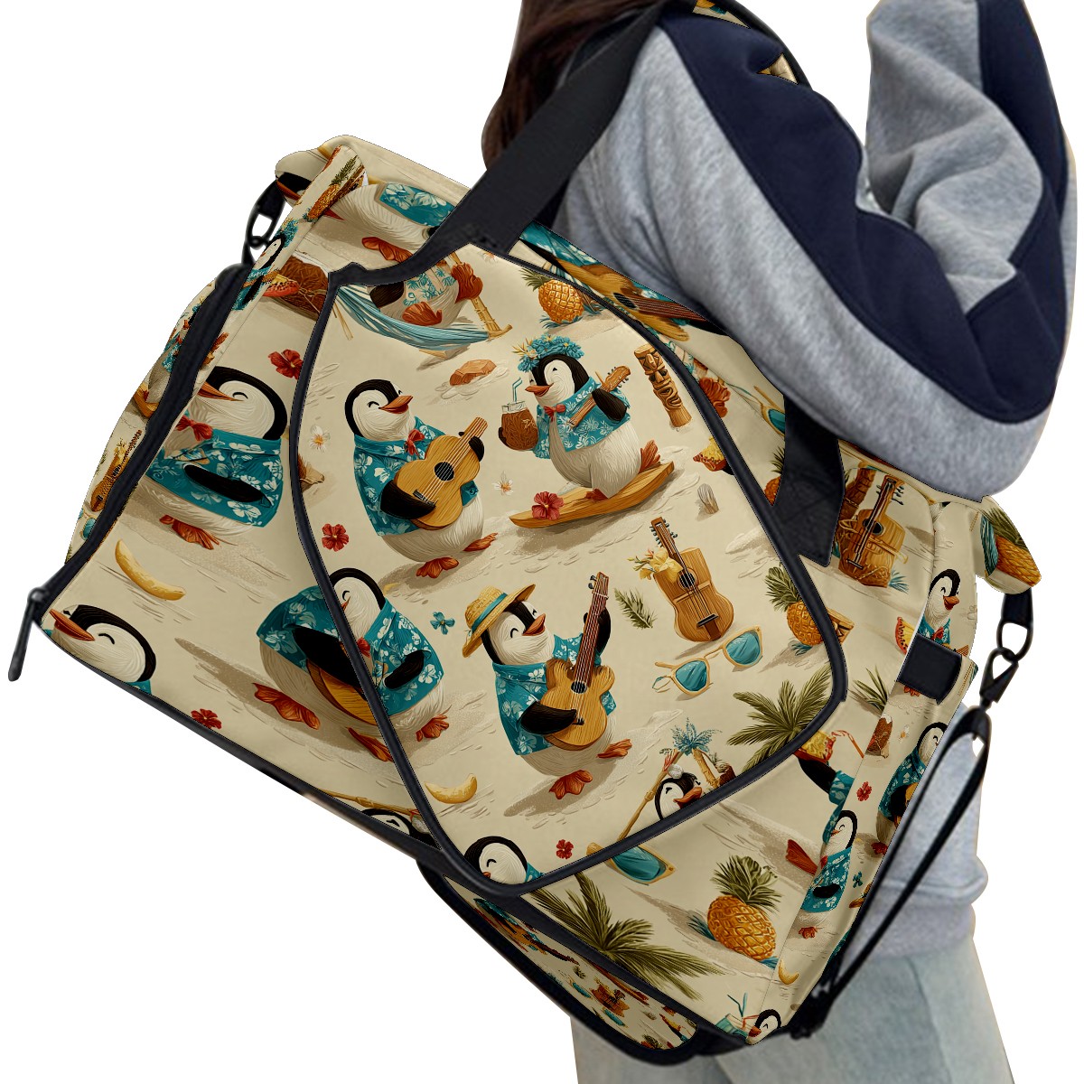 Tennis Bag Large, Penguins Playing Instruments Light Brown Multi-Functional Sports Duffel Bag with Ventilated Shoe Compartment & Wet Pocket, Gym Bag for Men Women, Fitness Yoga Tennis Travel Carryall Bag