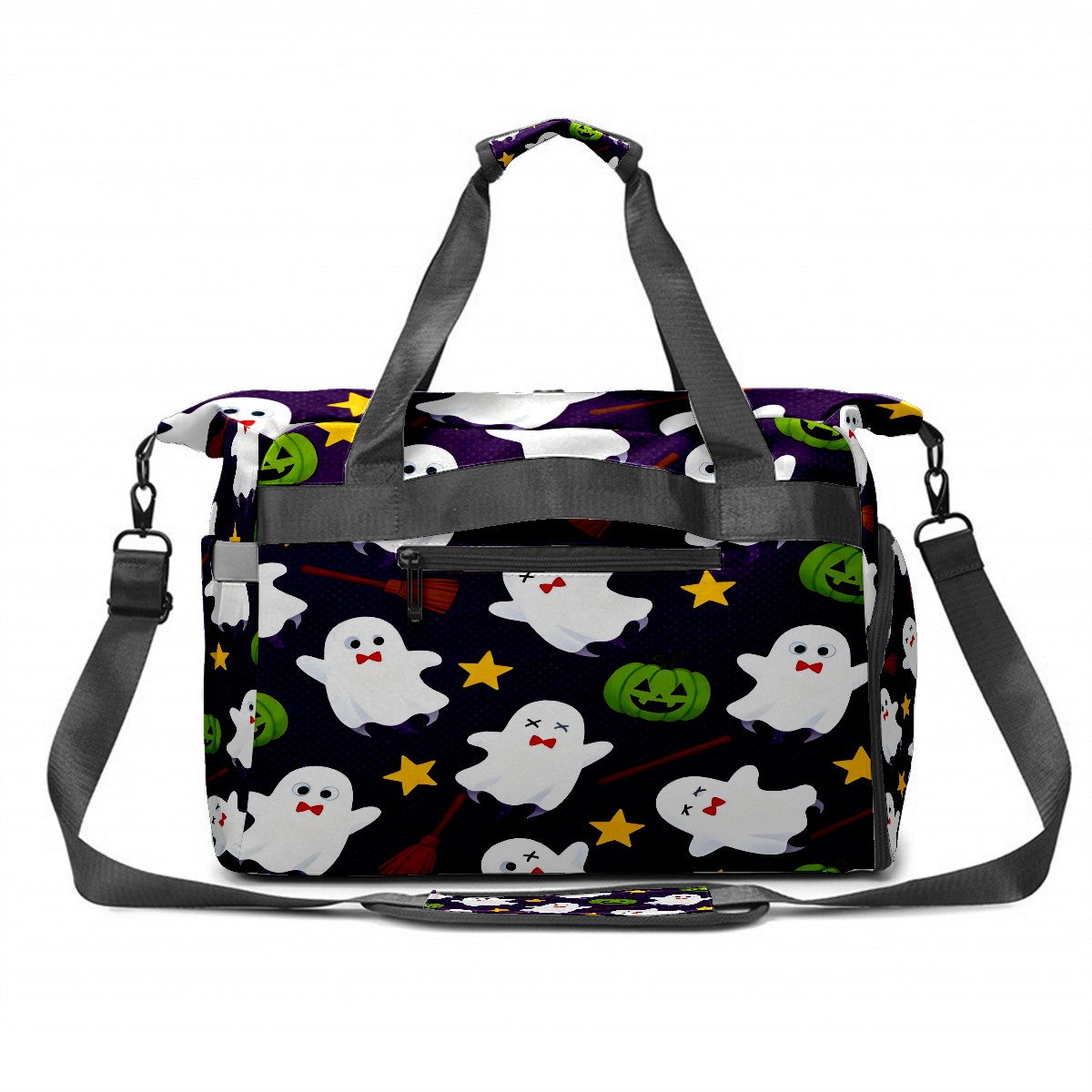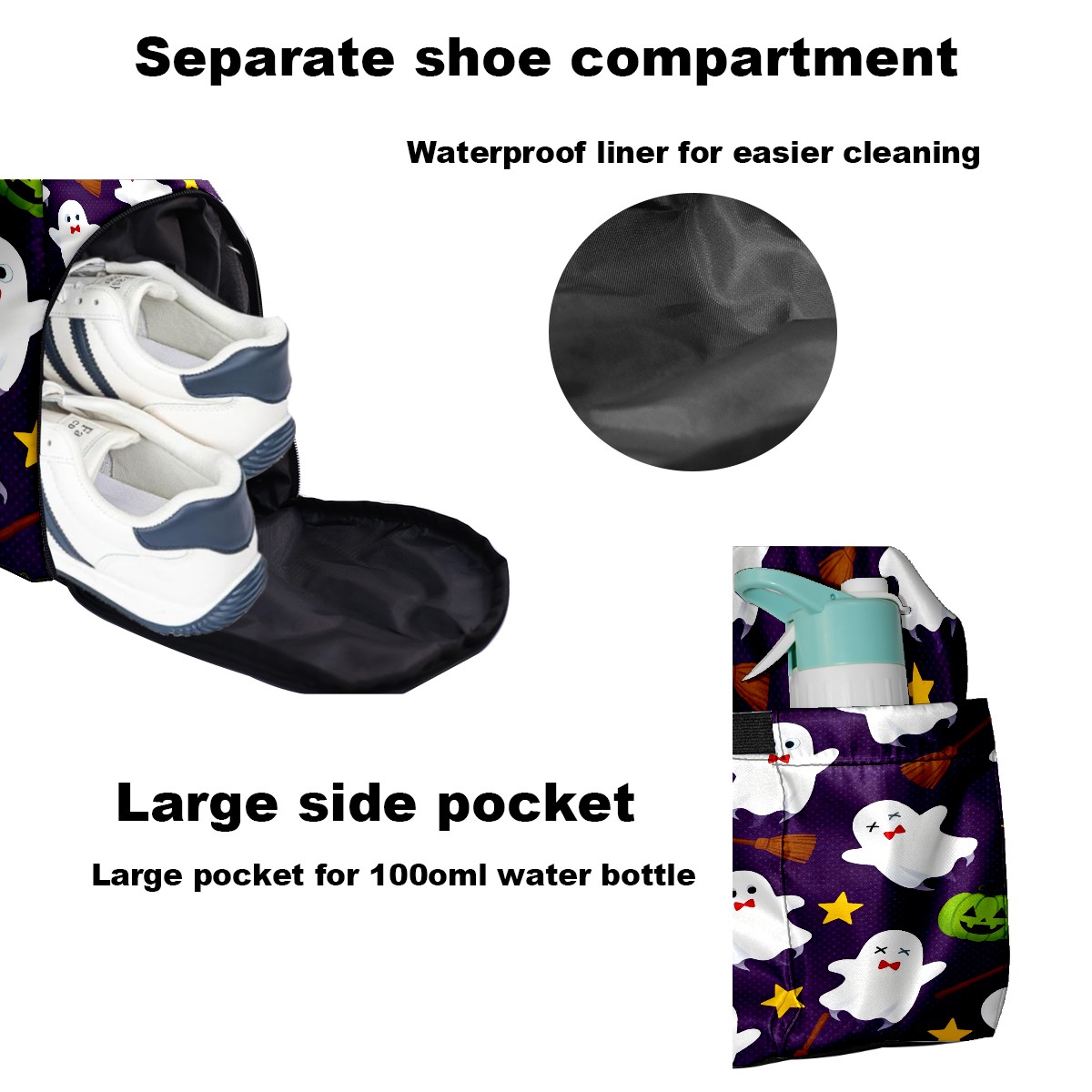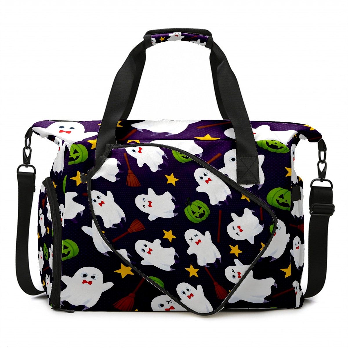 Tennis Bag Large, Purple Halloween Ghosts Stars Multi-Functional Sports Duffel Bag with Ventilated Shoe Compartment & Wet Pocket, Gym Bag for Men Women, Fitness Yoga Tennis Travel Carryall Bag