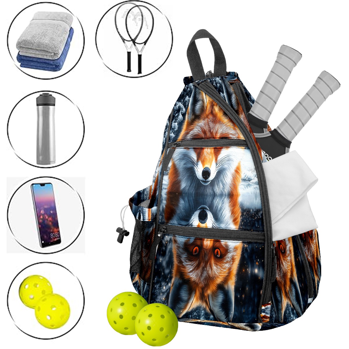 Pickleball Bag Red Fox (1) Pickle Ball Backpack for Women Men Premium Lightweight Crossbody Sling Bag Sports Backpack for Pickleball Paddle Tennis