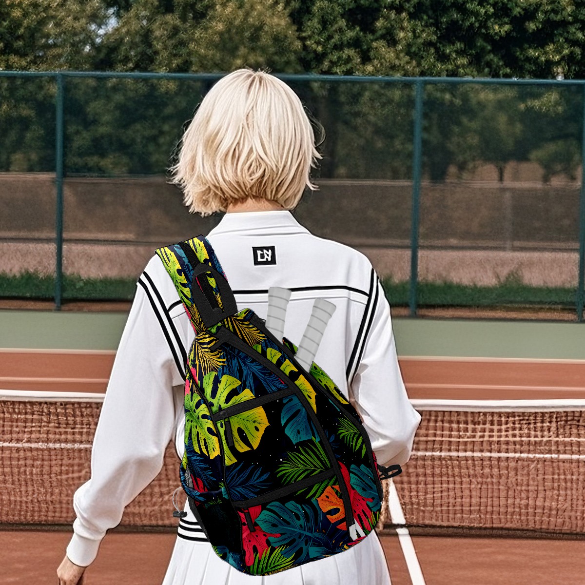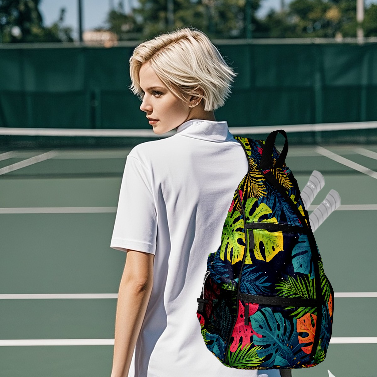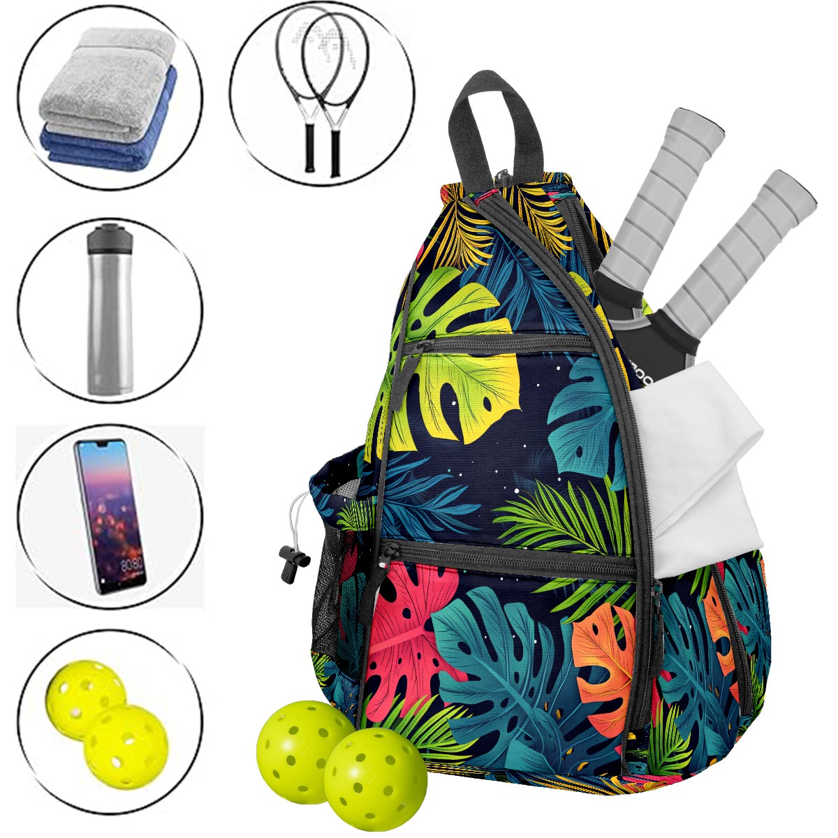 Pickleball Bag Tropical Leaves (1) Pickle Ball Backpack for Women Men Premium Lightweight Crossbody Sling Bag Sports Backpack for Pickleball Paddle Tennis