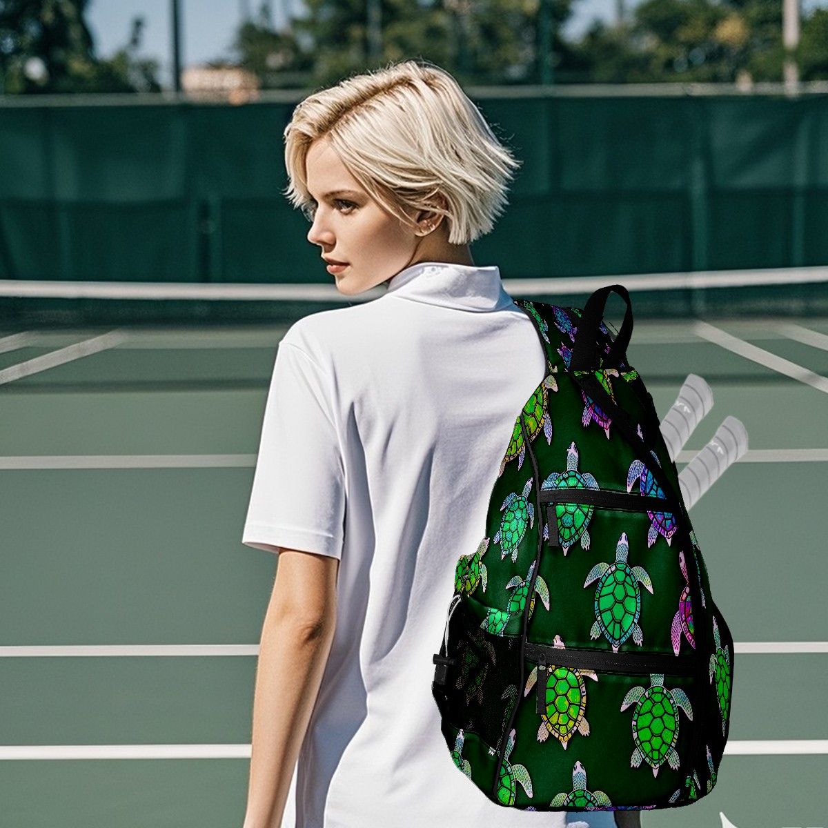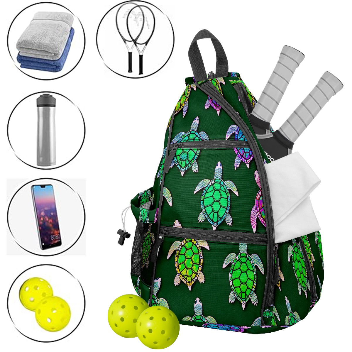 Pickleball Bag Turtle Green Pickle Ball Backpack for Women Men Premium Lightweight Crossbody Sling Bag Sports Backpack for Pickleball Paddle Tennis