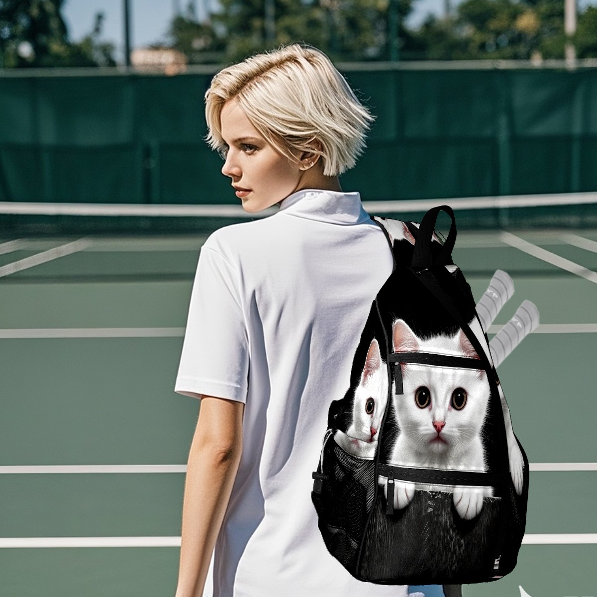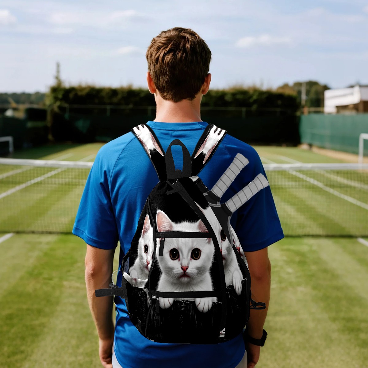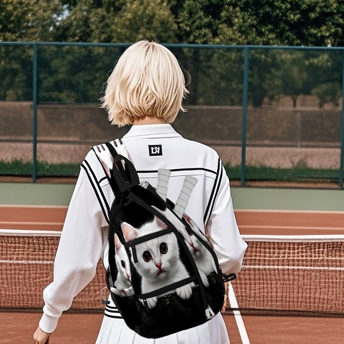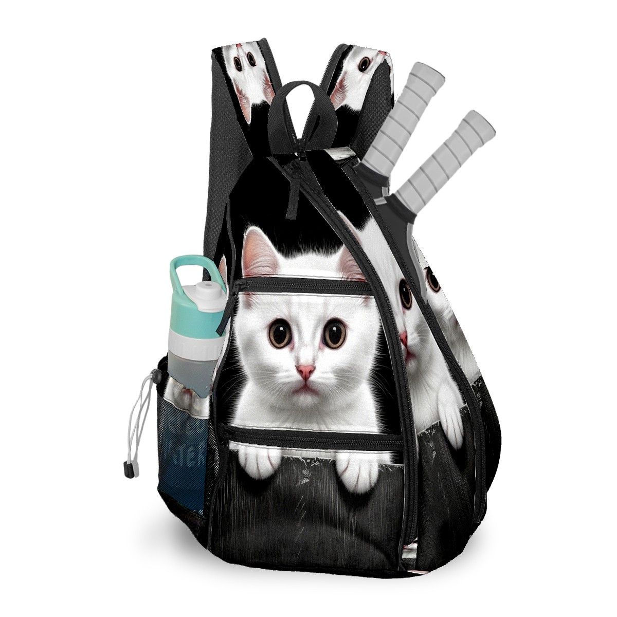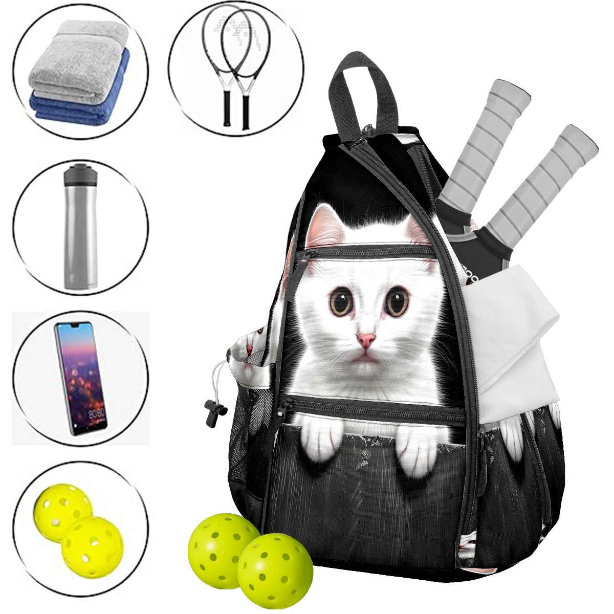 Pickleball Bag White Cat Pickle Ball Backpack for Women Men Premium Lightweight Crossbody Sling Bag Sports Backpack for Pickleball Paddle Tennis
