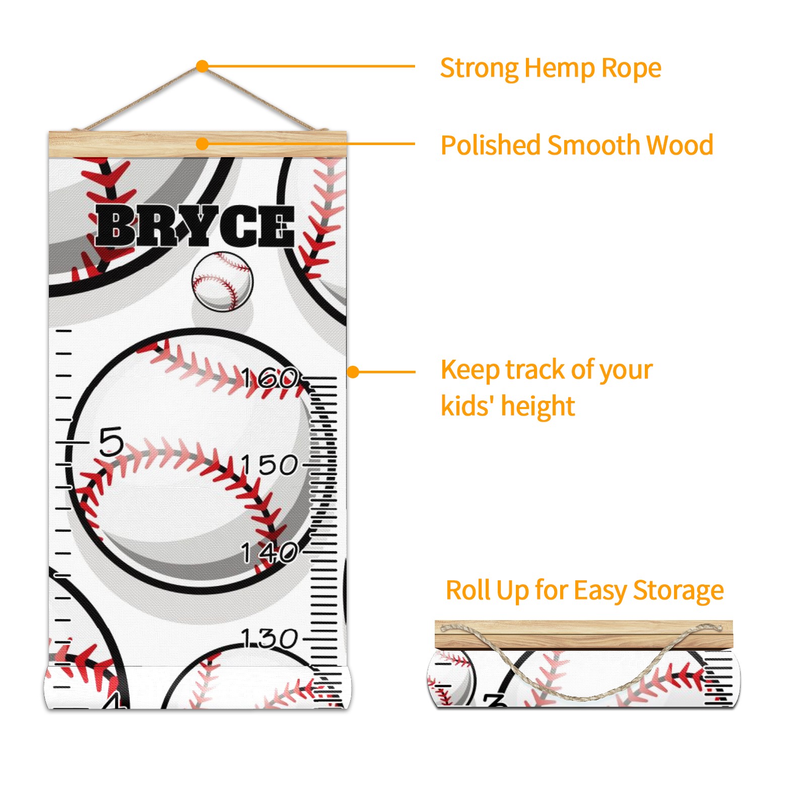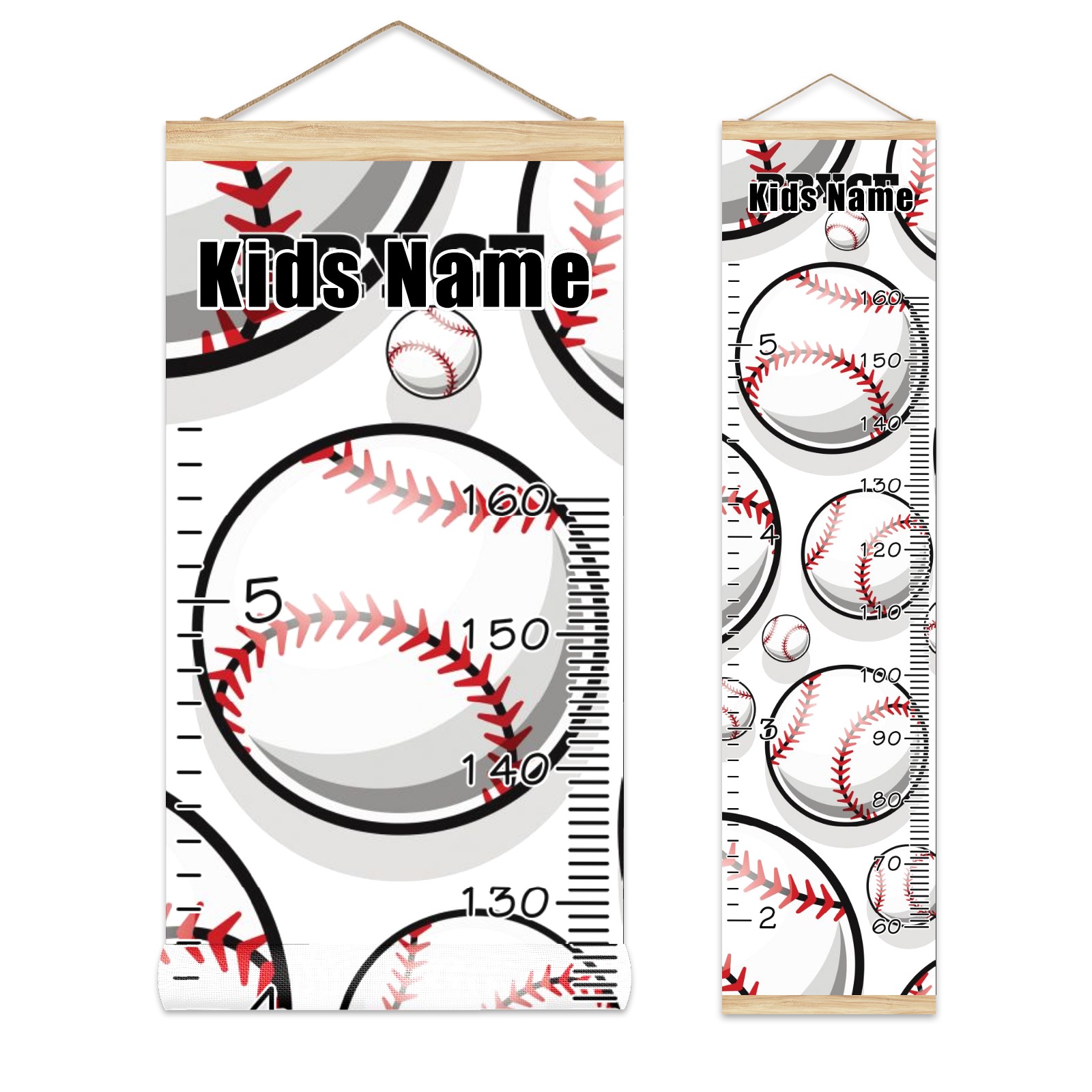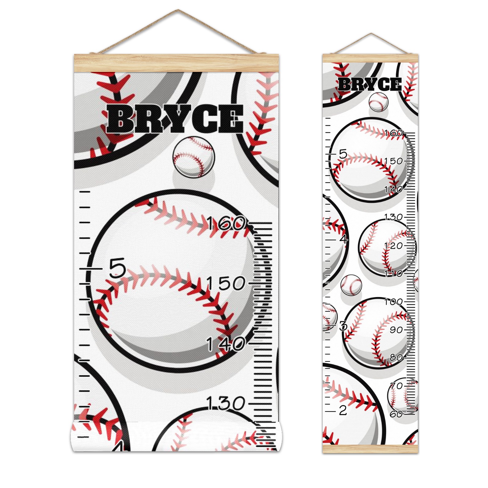 Personalized Kids Name Growth Chart Ruler for Wall Wood Frame Canvas Height Measure Chart 13.4x56 in Hanging Growth Chart Baseball Sport Pattern10.13 Boys Girls Room Decor