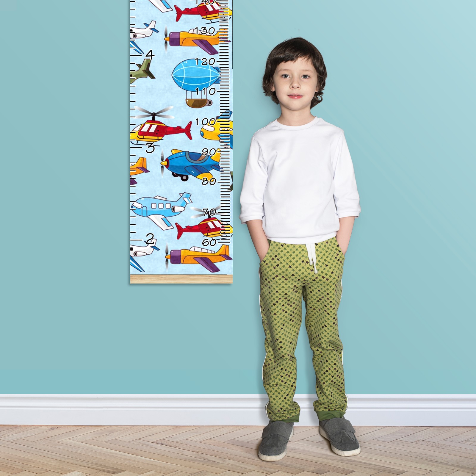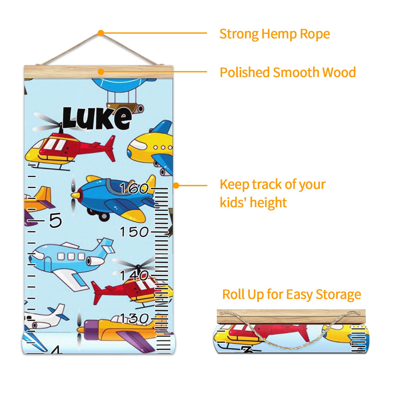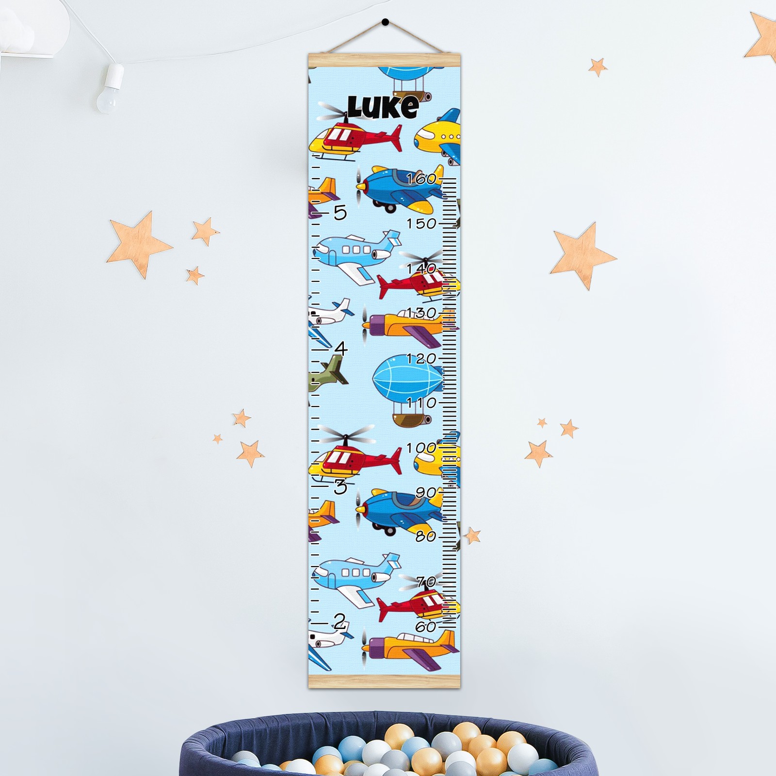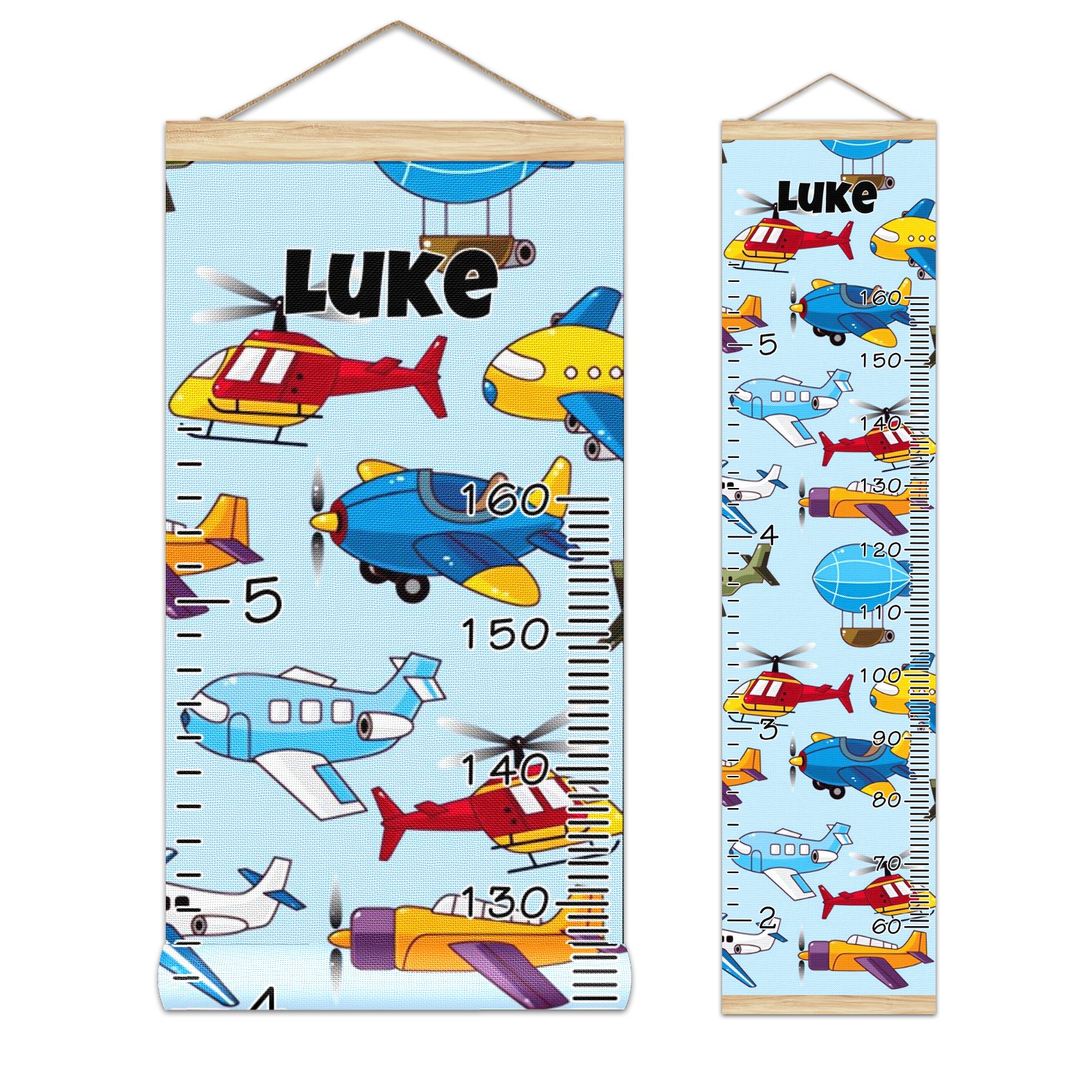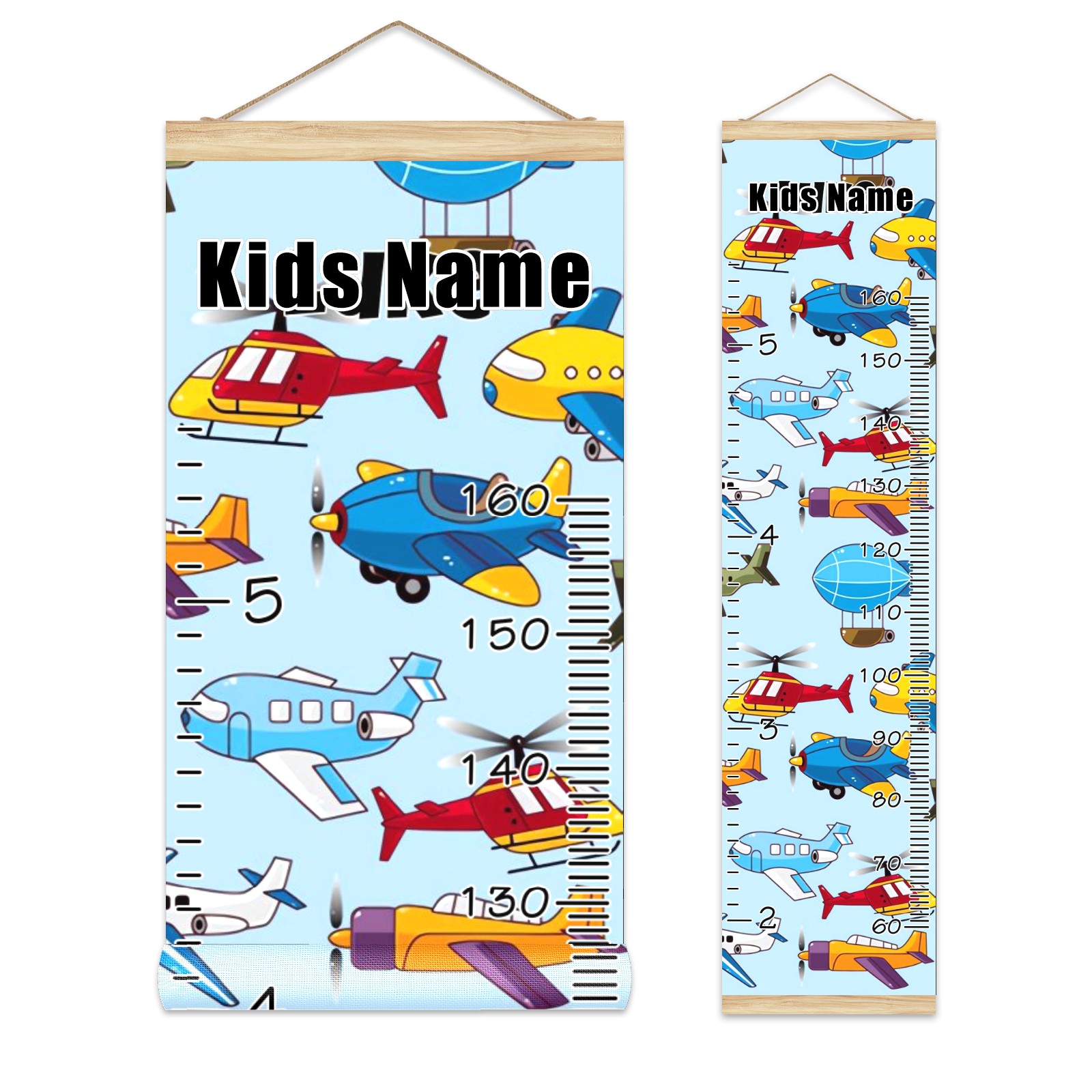 Personalized Kids Name Growth Chart Ruler for Wall Wood Frame Canvas Height Measure Chart 13.4x56 in Hanging Growth Chart Cartoon Airplane Aircraft10.13 Boys Girls Room Decor