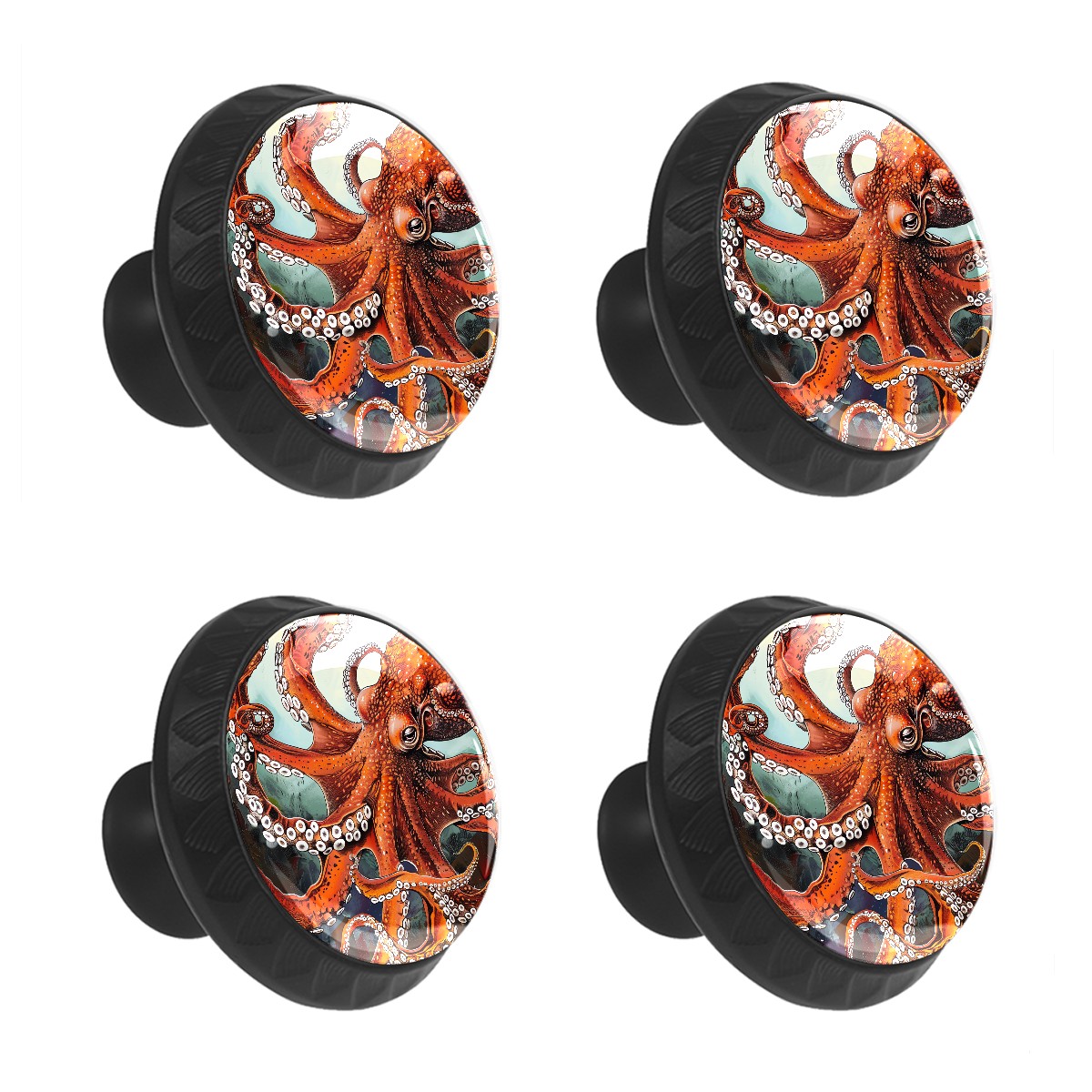 4 Pcs Drawer Knobs Red Octopus (1) Round Crystal Glass Knobs Pulls for Dressers Kitchen Cabinets Drawers Wardrobe Cupboard Furniture Hardware Handles