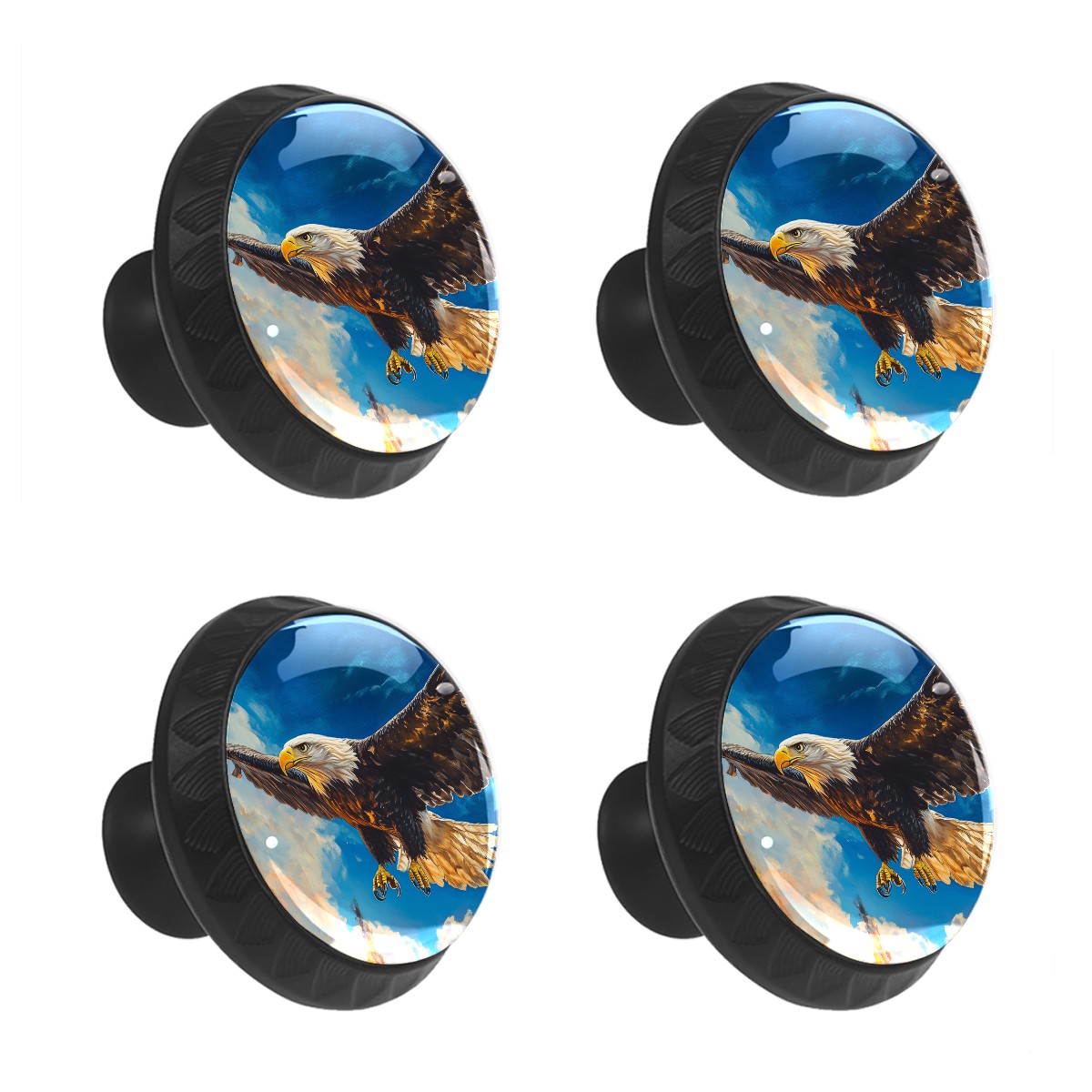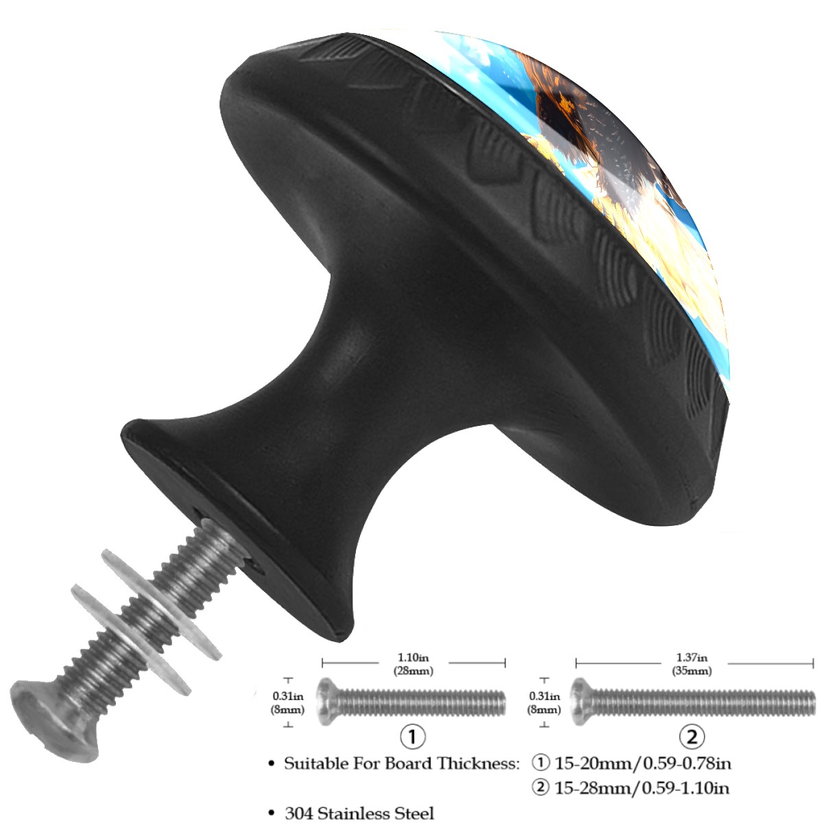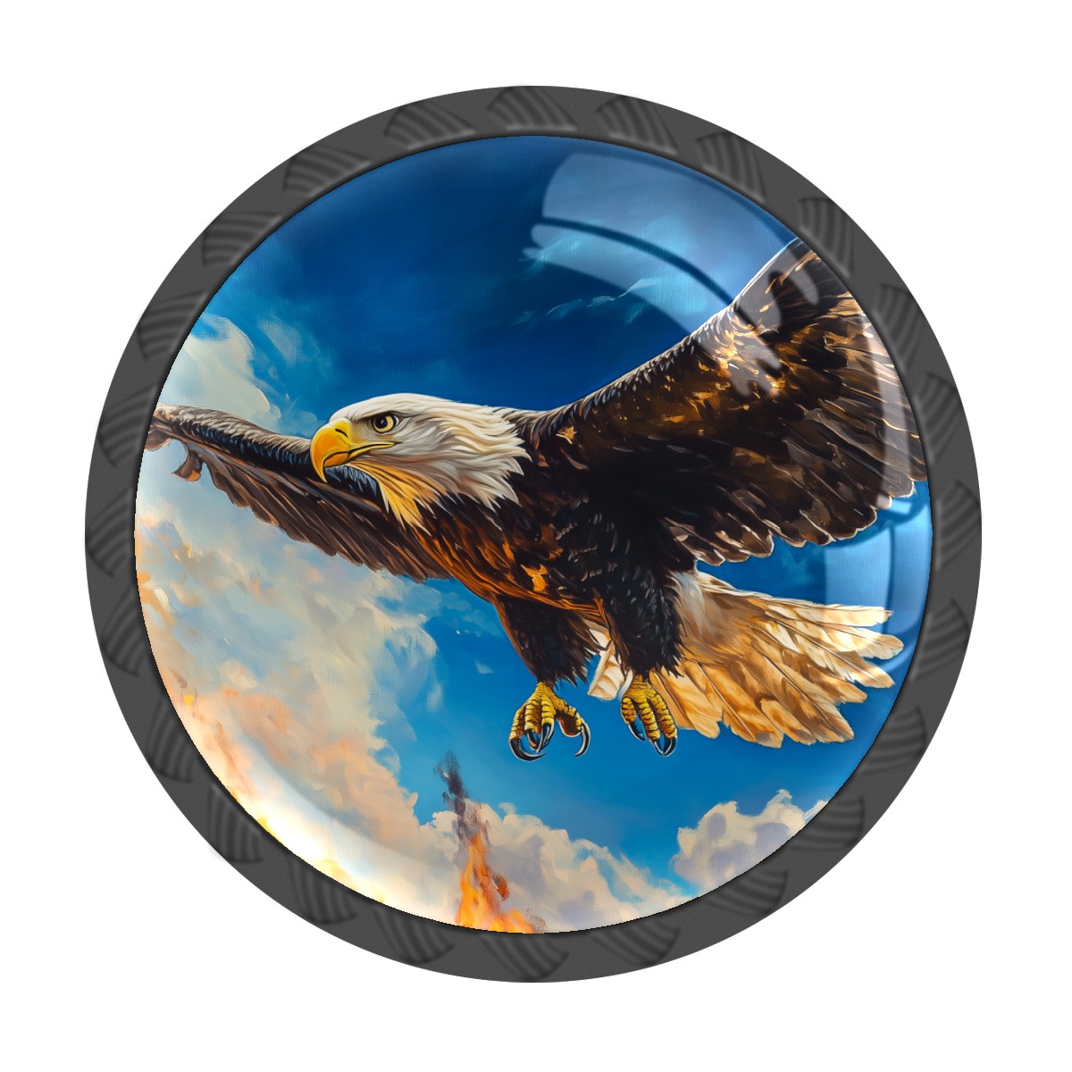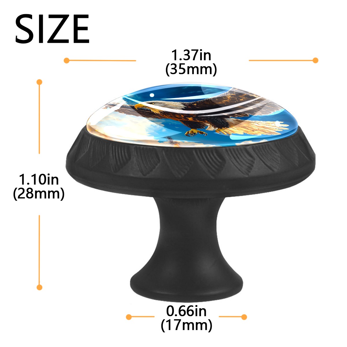 4 Pcs Drawer Knobs Eagle Flying Flames Round Crystal Glass Knobs Pulls for Dressers Kitchen Cabinets Drawers Wardrobe Cupboard Furniture Hardware Handles