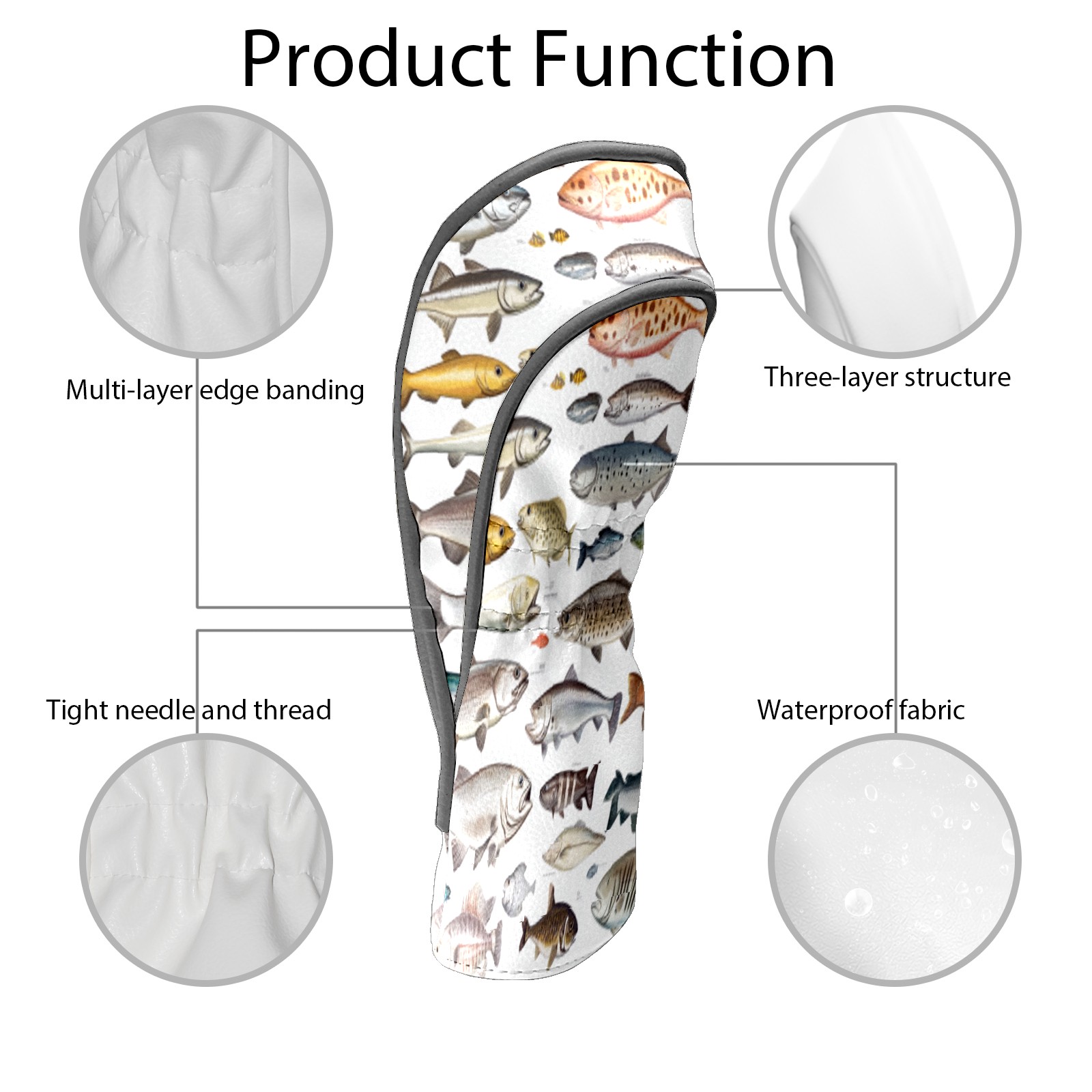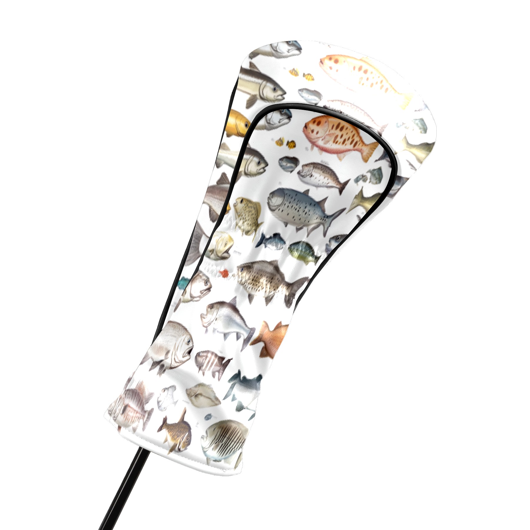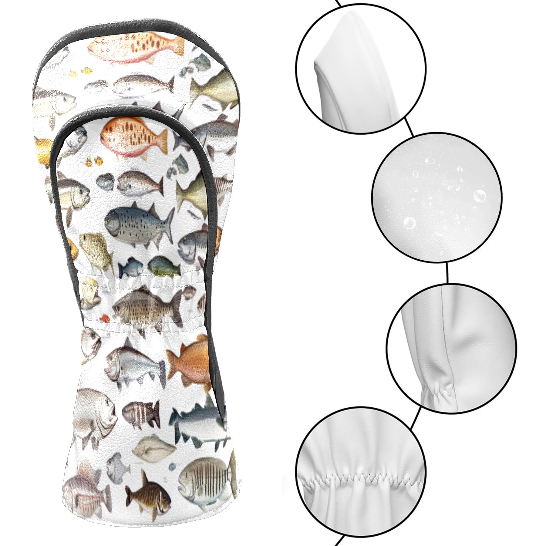 Golf Head Covers for Woods and Driver Waterproof Leather Golf Club Head Covers for Women Men Golf Driver Fairway Wood Headcover Fish Pattern