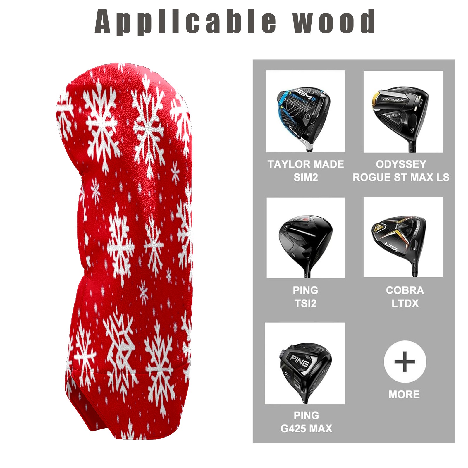 Golf Club Head Cover Waterproof Leather for Driver & Fairway Wood, Driver Headcovers, Golf Accessories for Men Women, Anti-Scratch, Golf Gift for Golfers, 1/3/5 Wood Cover White Snowflakes