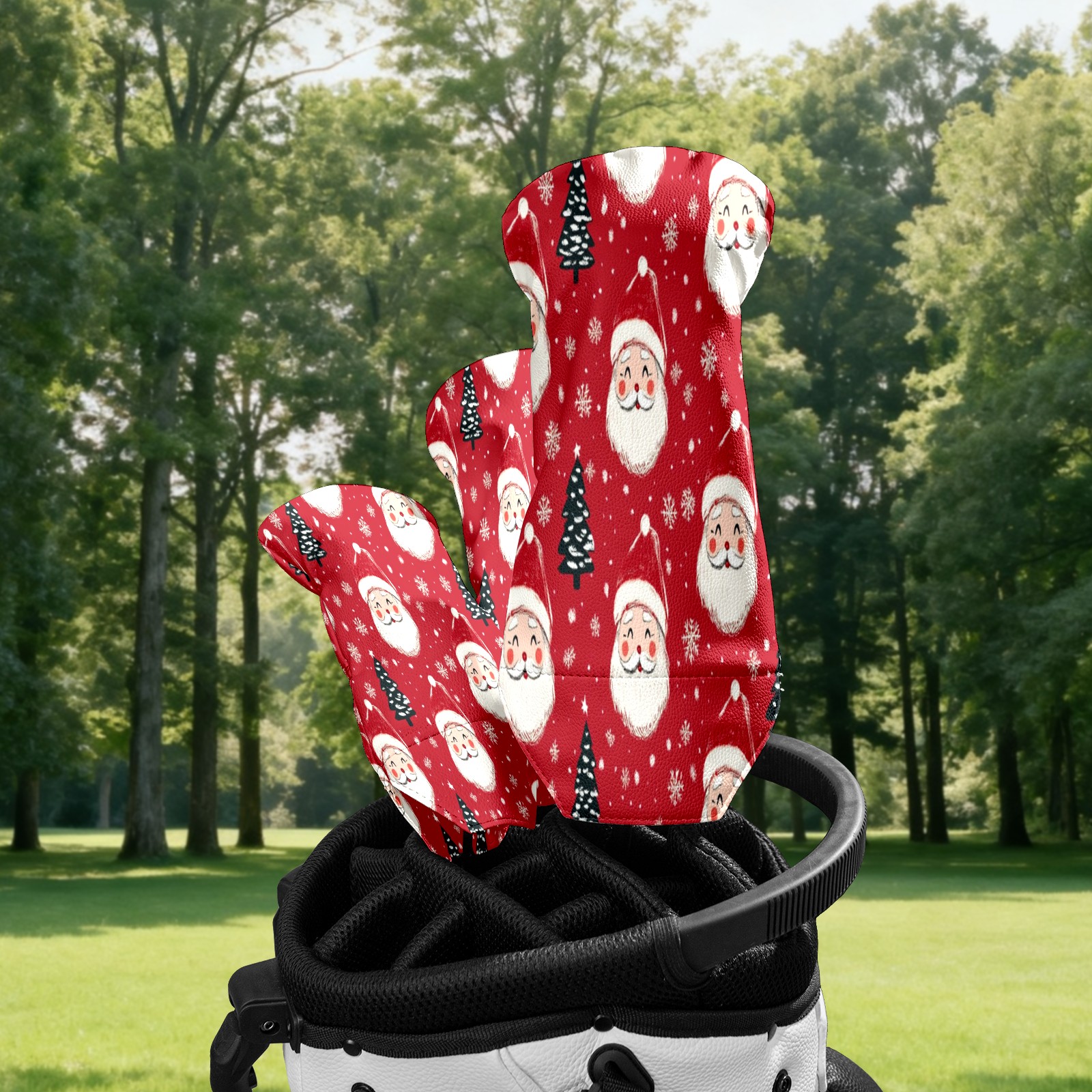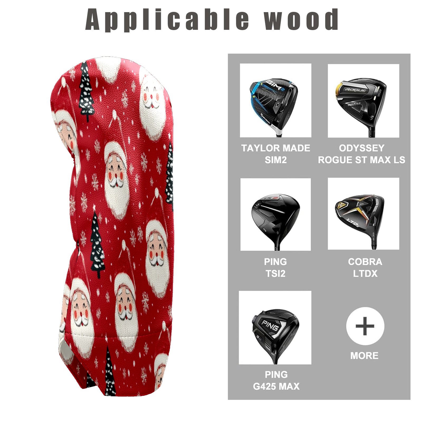 Golf Club Head Cover Waterproof Leather for Driver & Fairway Wood, Driver Headcovers, Golf Accessories for Men Women, Anti-Scratch, Golf Gift for Golfers, 1/3/5 Wood Cover Santa Claus And Christmas Trees