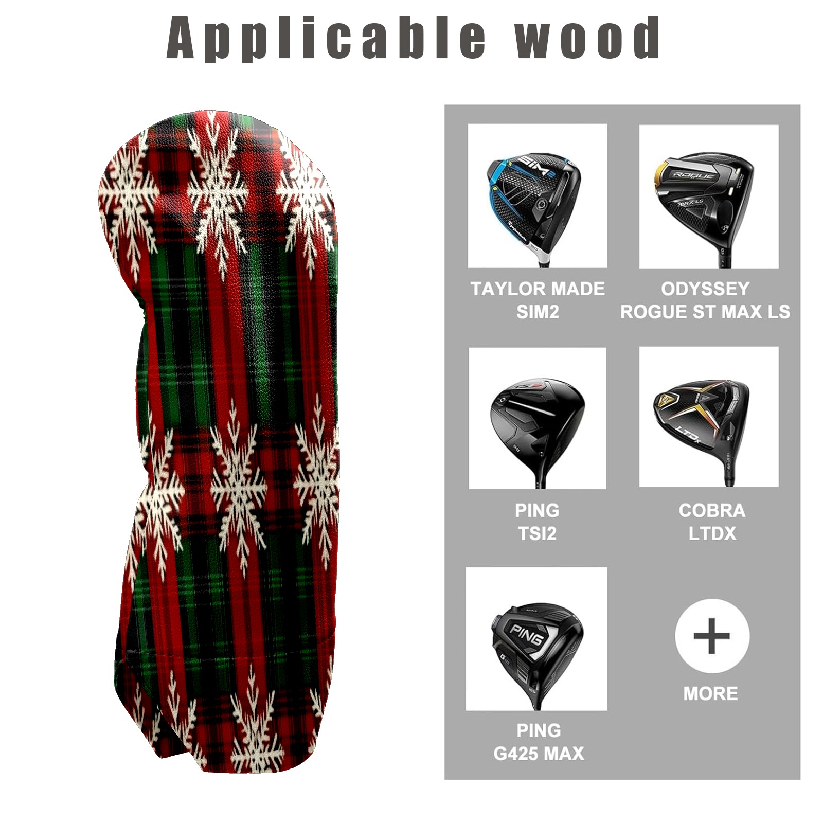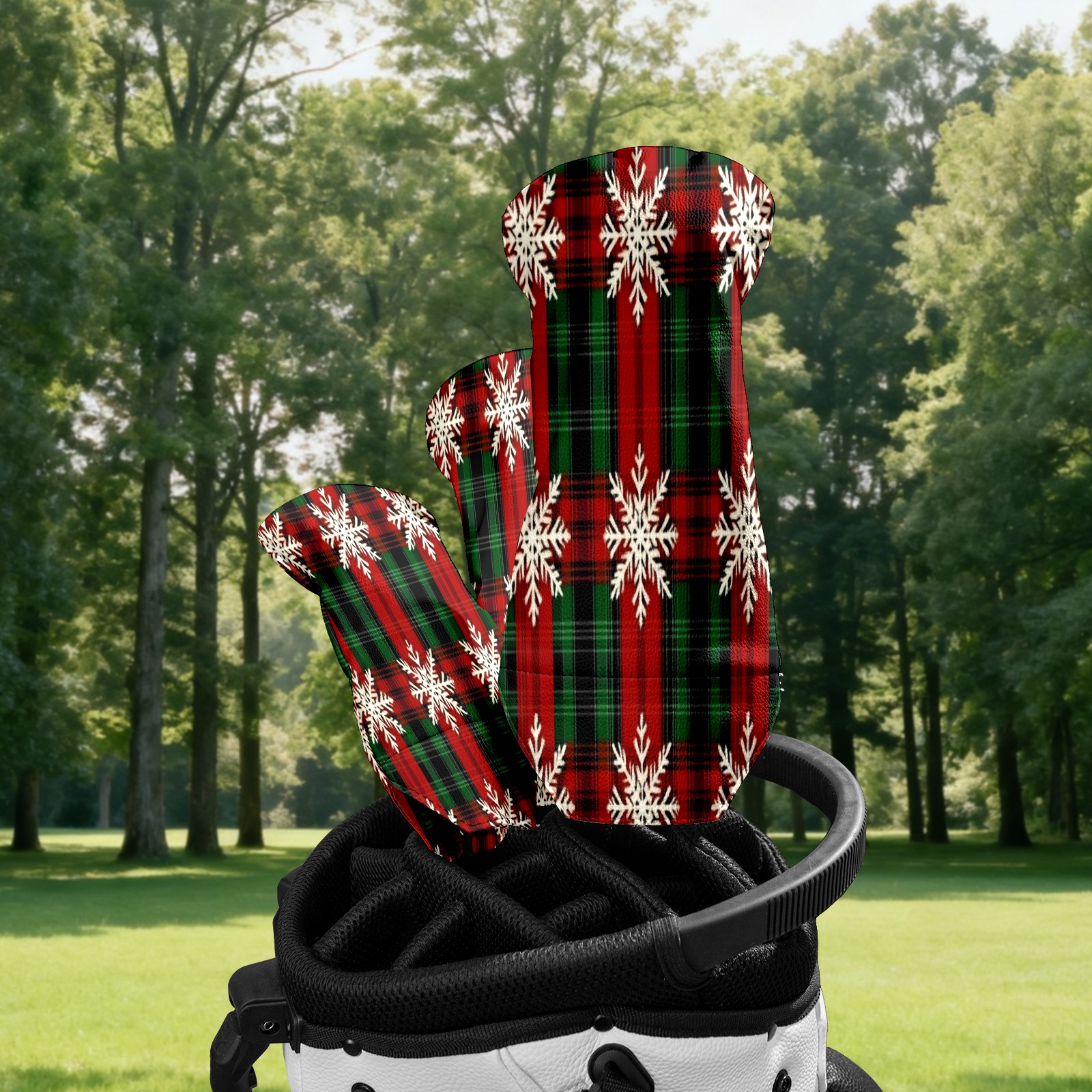 Golf Club Head Cover Waterproof Leather for Driver & Fairway Wood, Driver Headcovers, Golf Accessories for Men Women, Anti-Scratch, Golf Gift for Golfers, 1/3/5 Wood Cover Red Green And Black Tartan Plaid Seamless