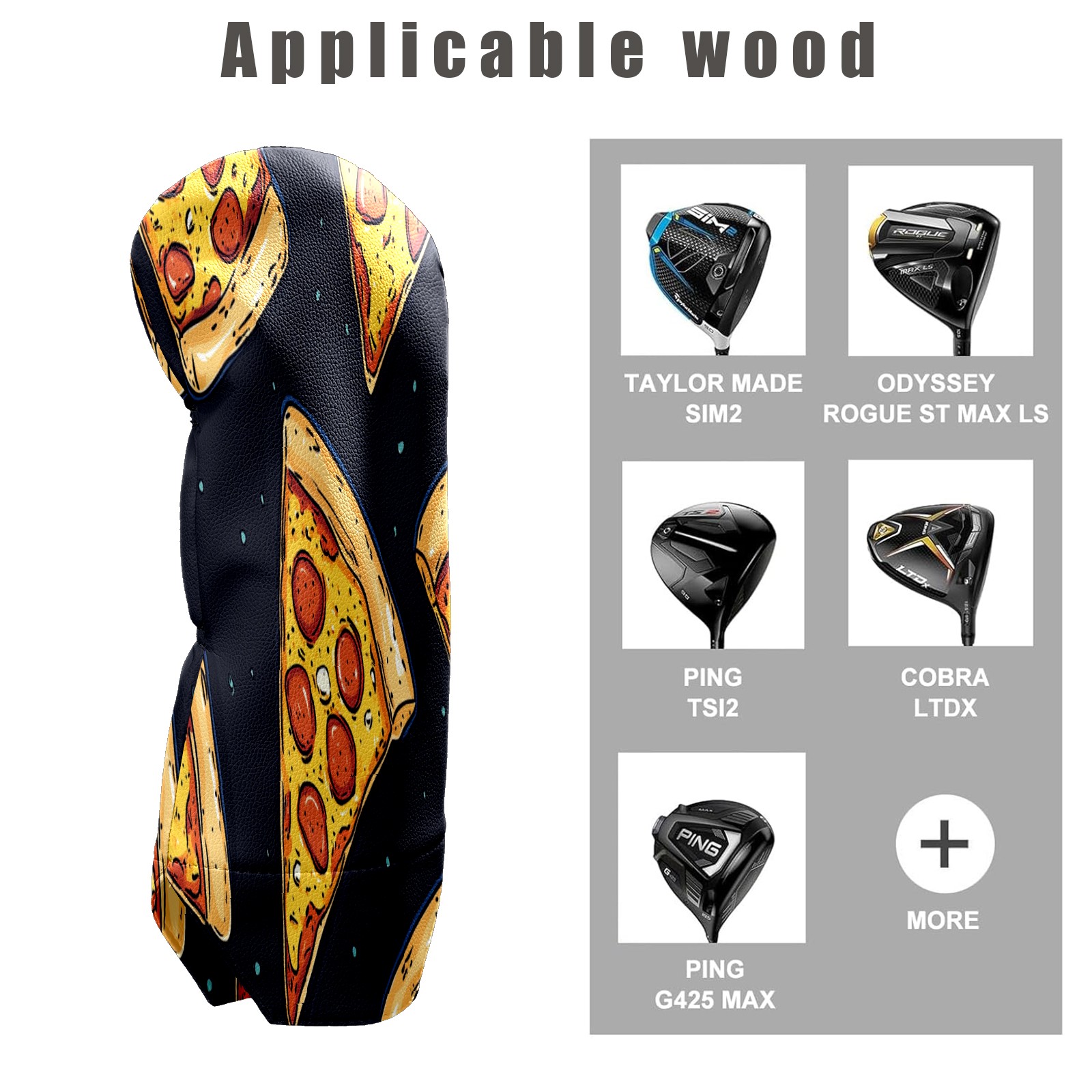 Golf Club Head Cover Waterproof Leather for Driver & Fairway Wood, Driver Headcovers, Golf Accessories for Men Women, Anti-Scratch, Golf Gift for Golfers, 1/3/5 Wood Cover Red Pizza Slice