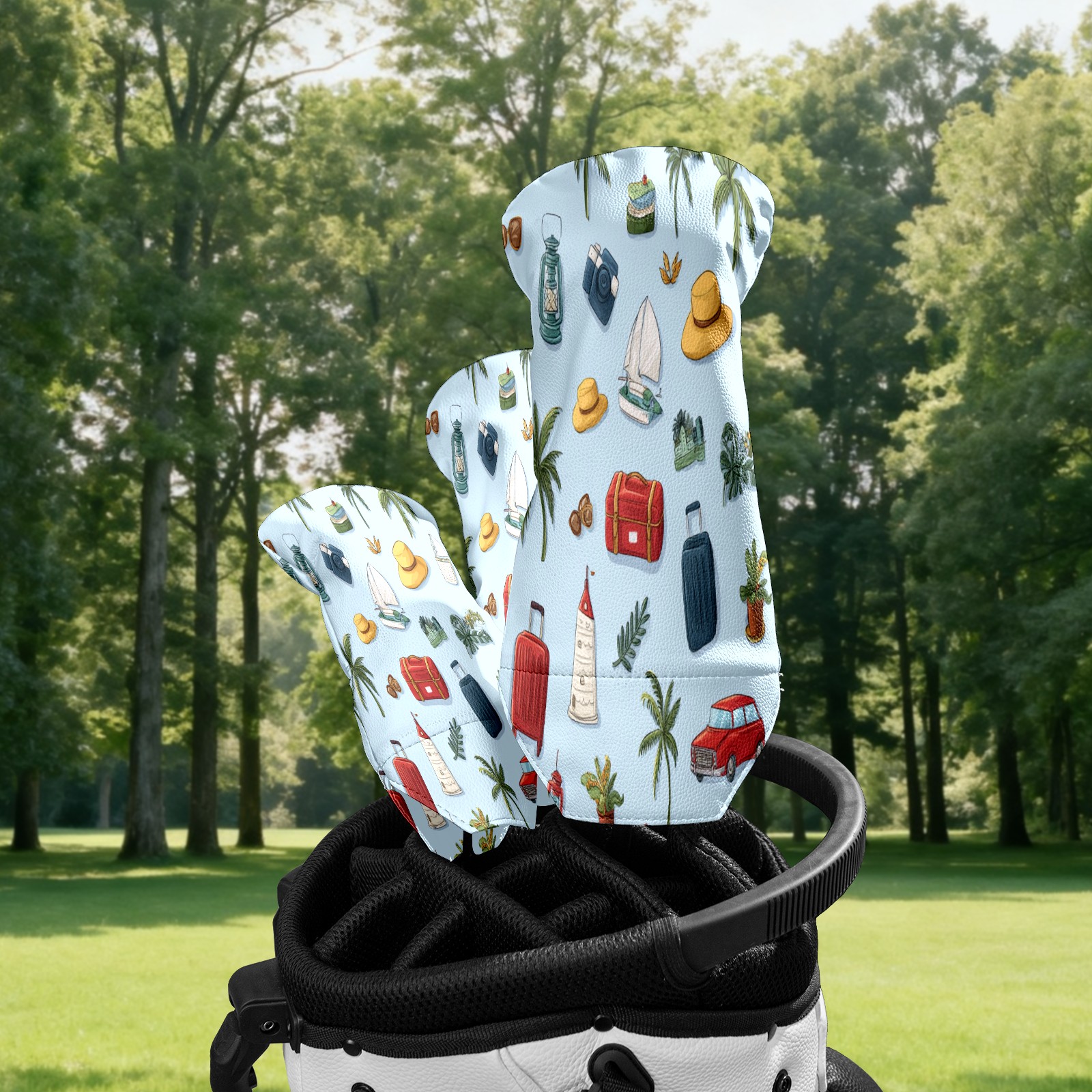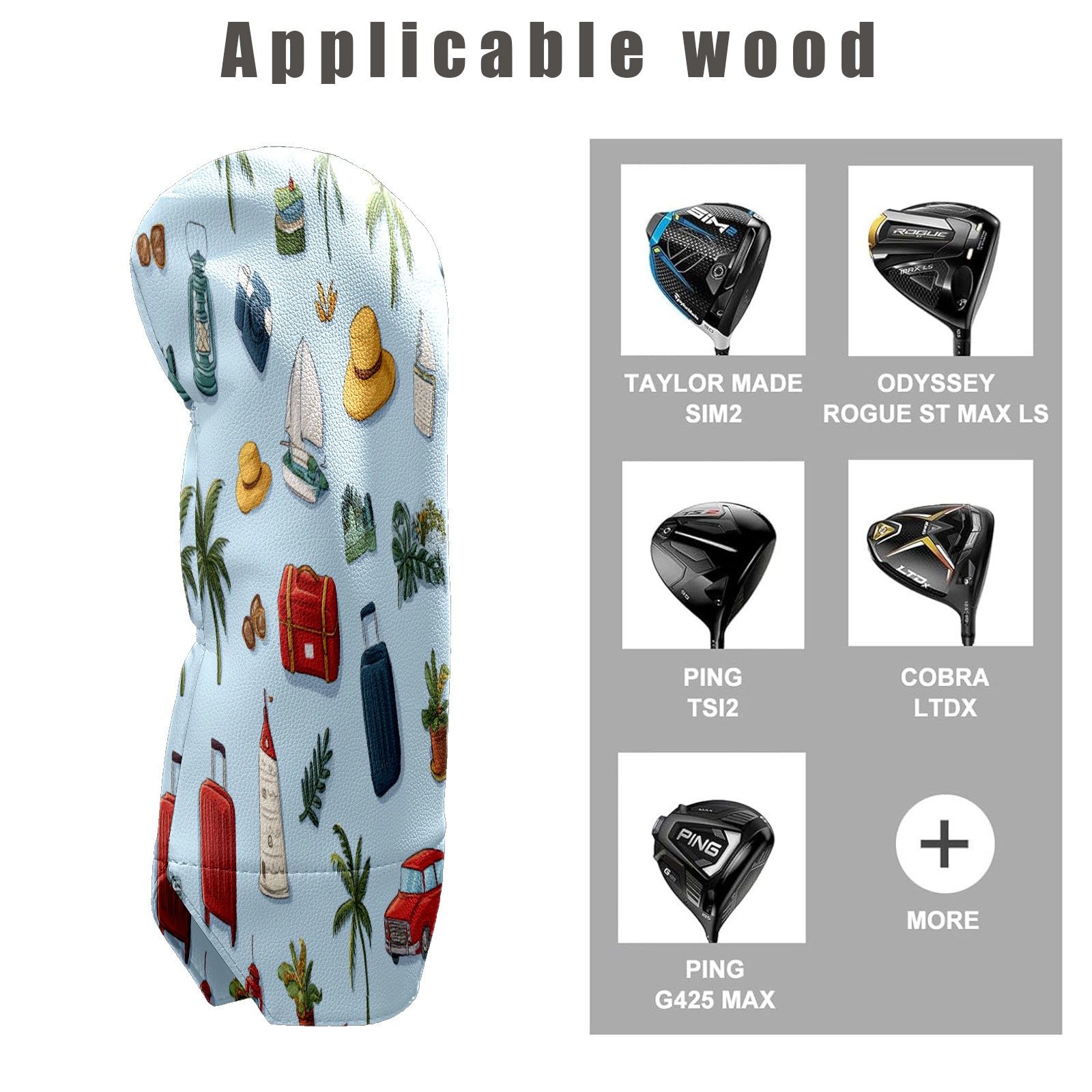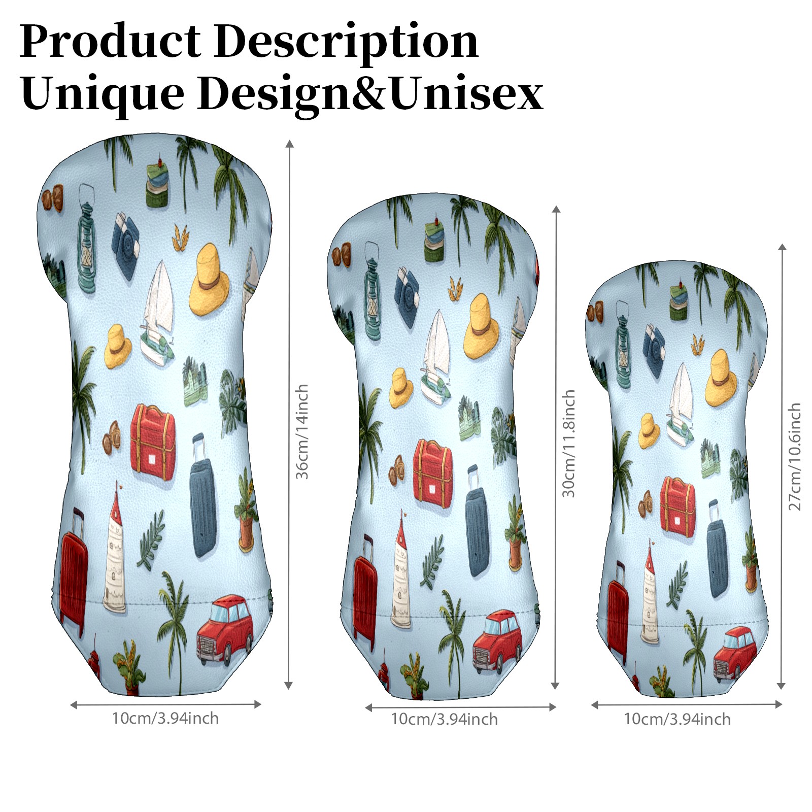 Golf Club Head Cover Waterproof Leather for Driver & Fairway Wood, Driver Headcovers, Golf Accessories for Men Women, Anti-Scratch, Golf Gift for Golfers, 1/3/5 Wood Cover Light Blue Travel Elements