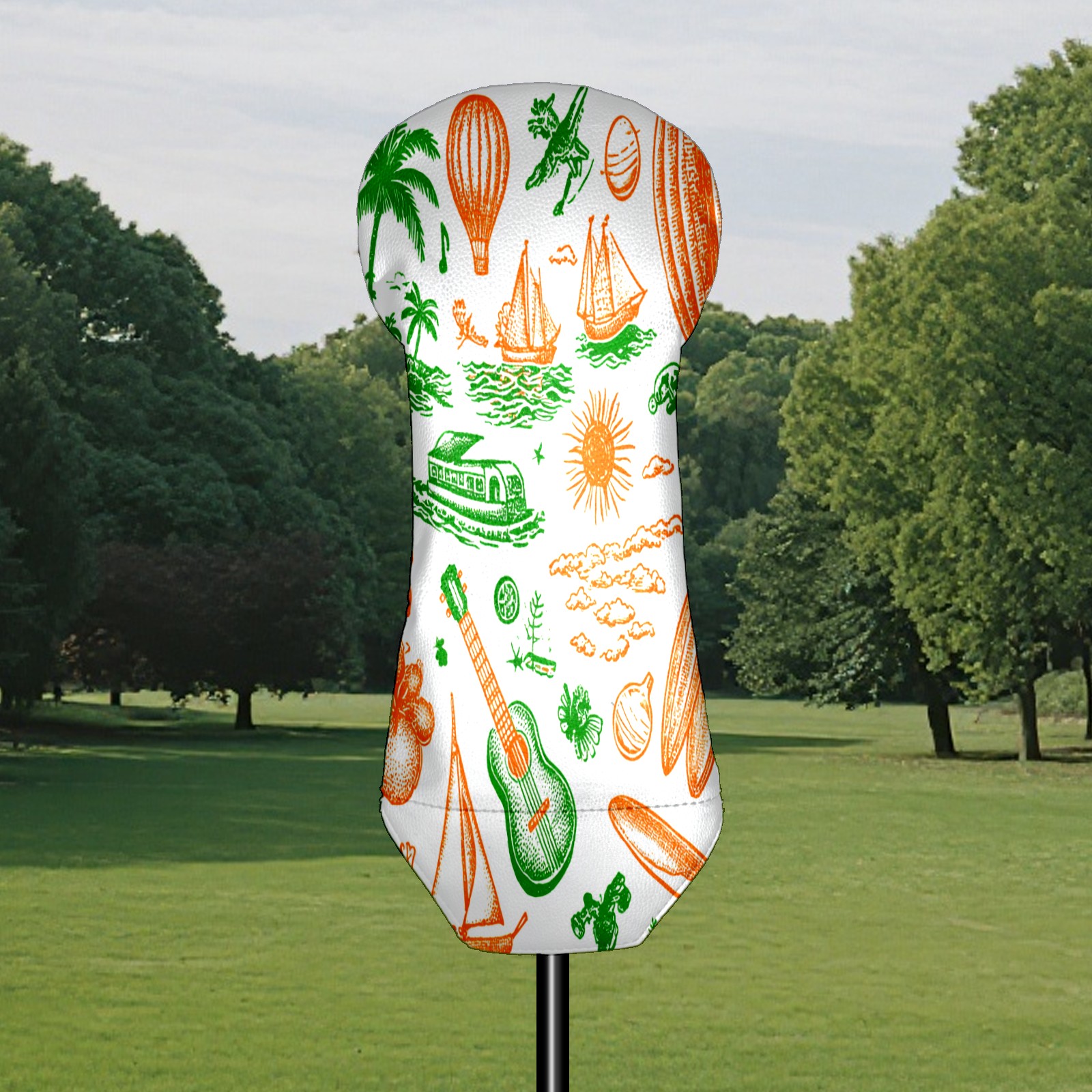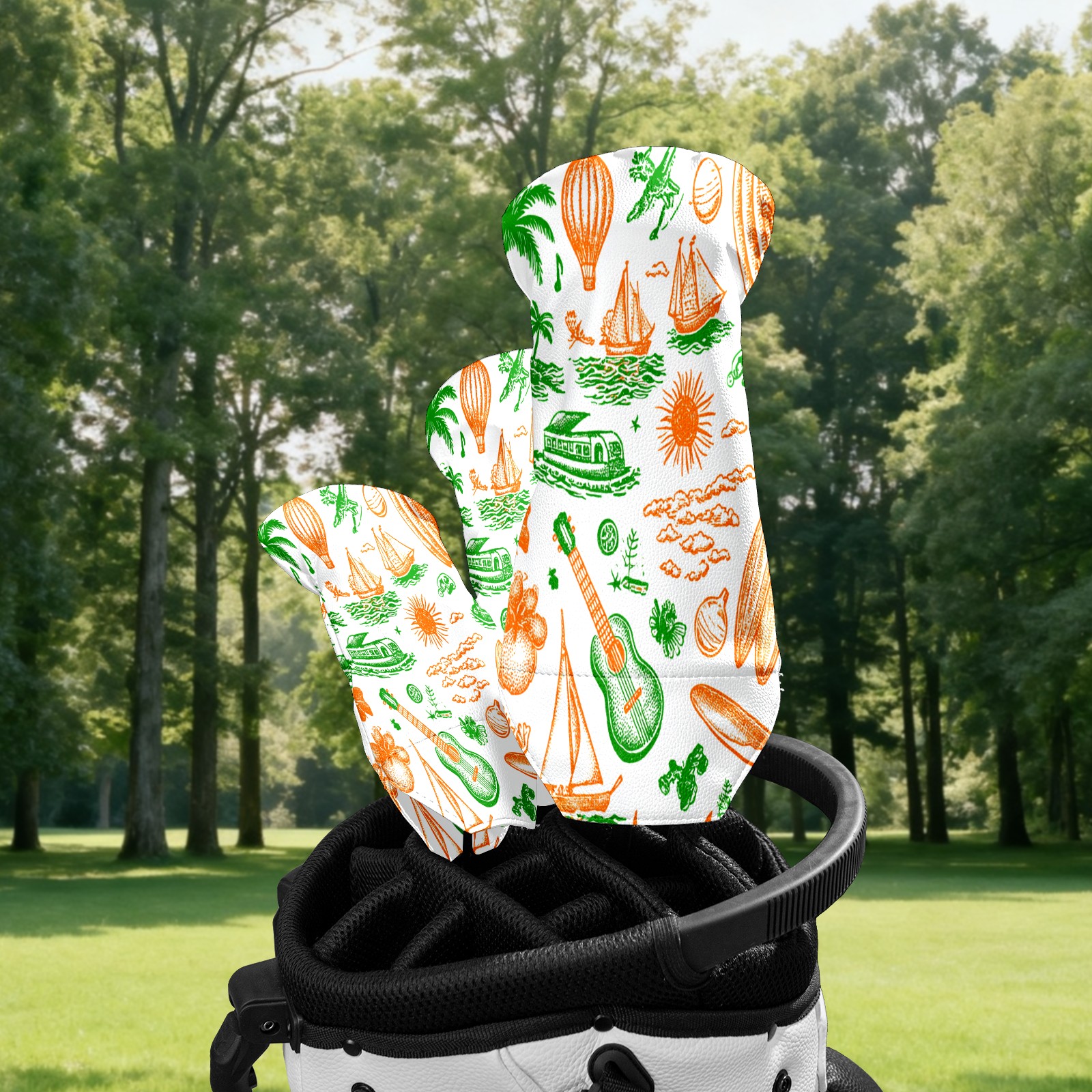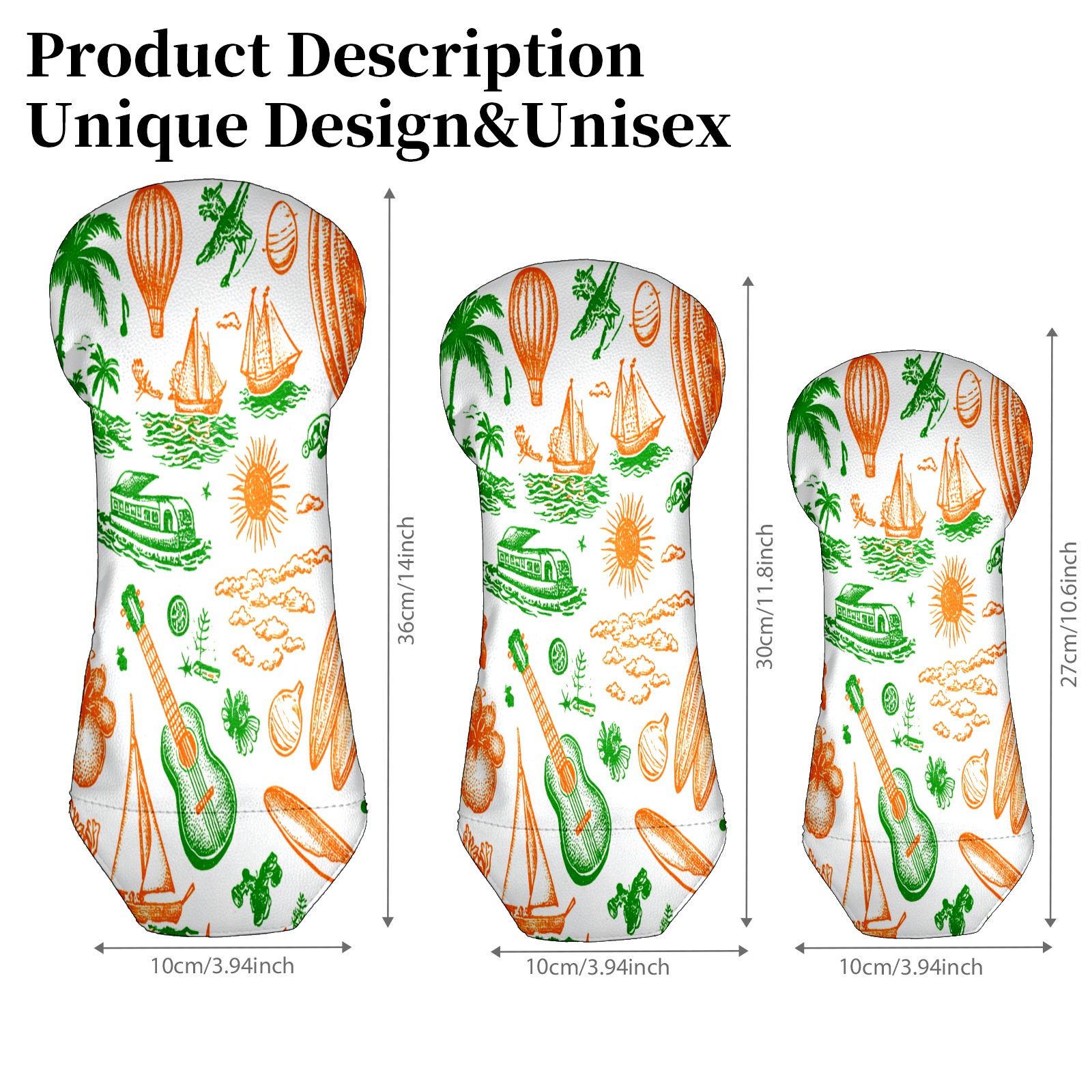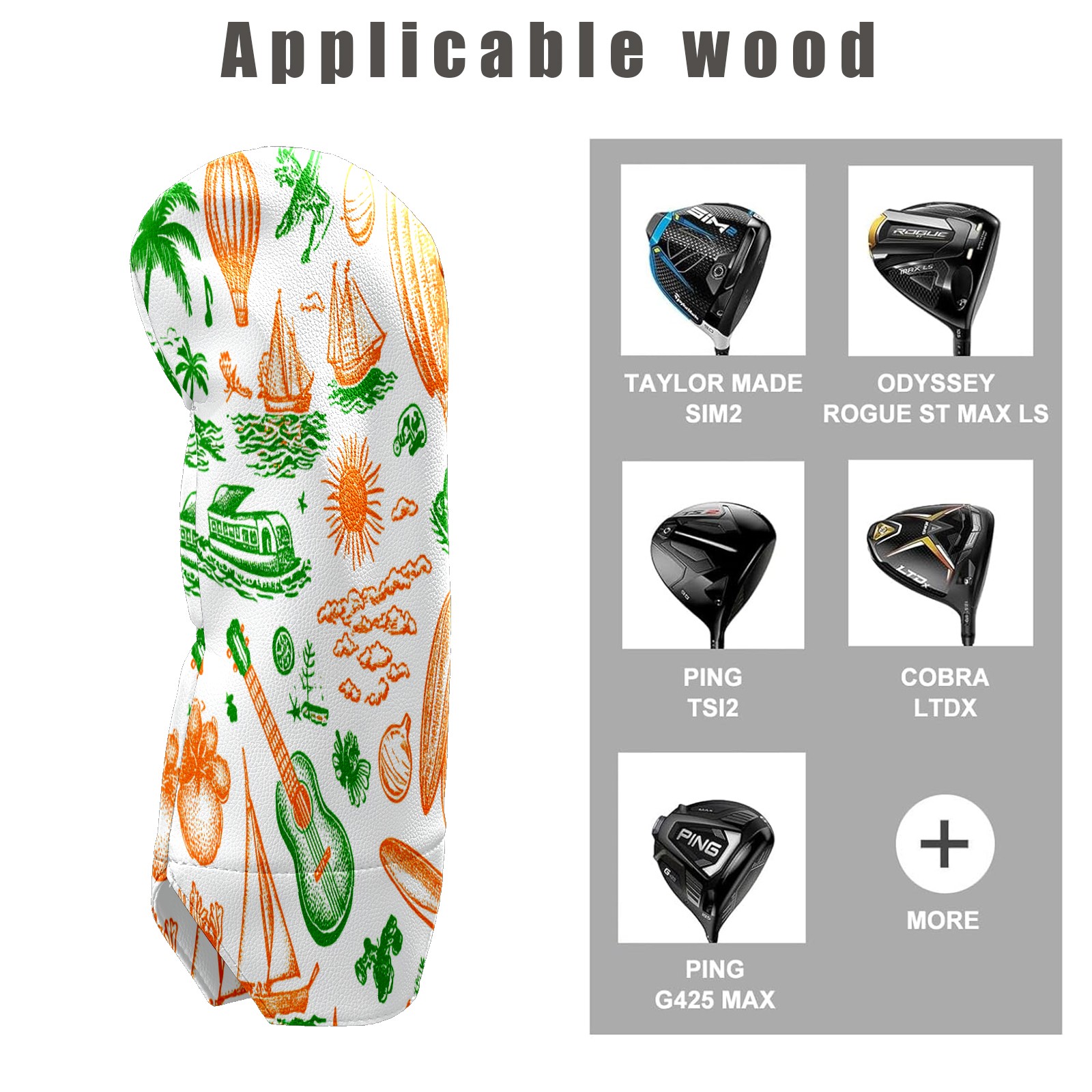 Golf Club Head Cover Waterproof Leather for Driver & Fairway Wood, Driver Headcovers, Golf Accessories for Men Women, Anti-Scratch, Golf Gift for Golfers, 1/3/5 Wood Cover Green Background Summer Elements