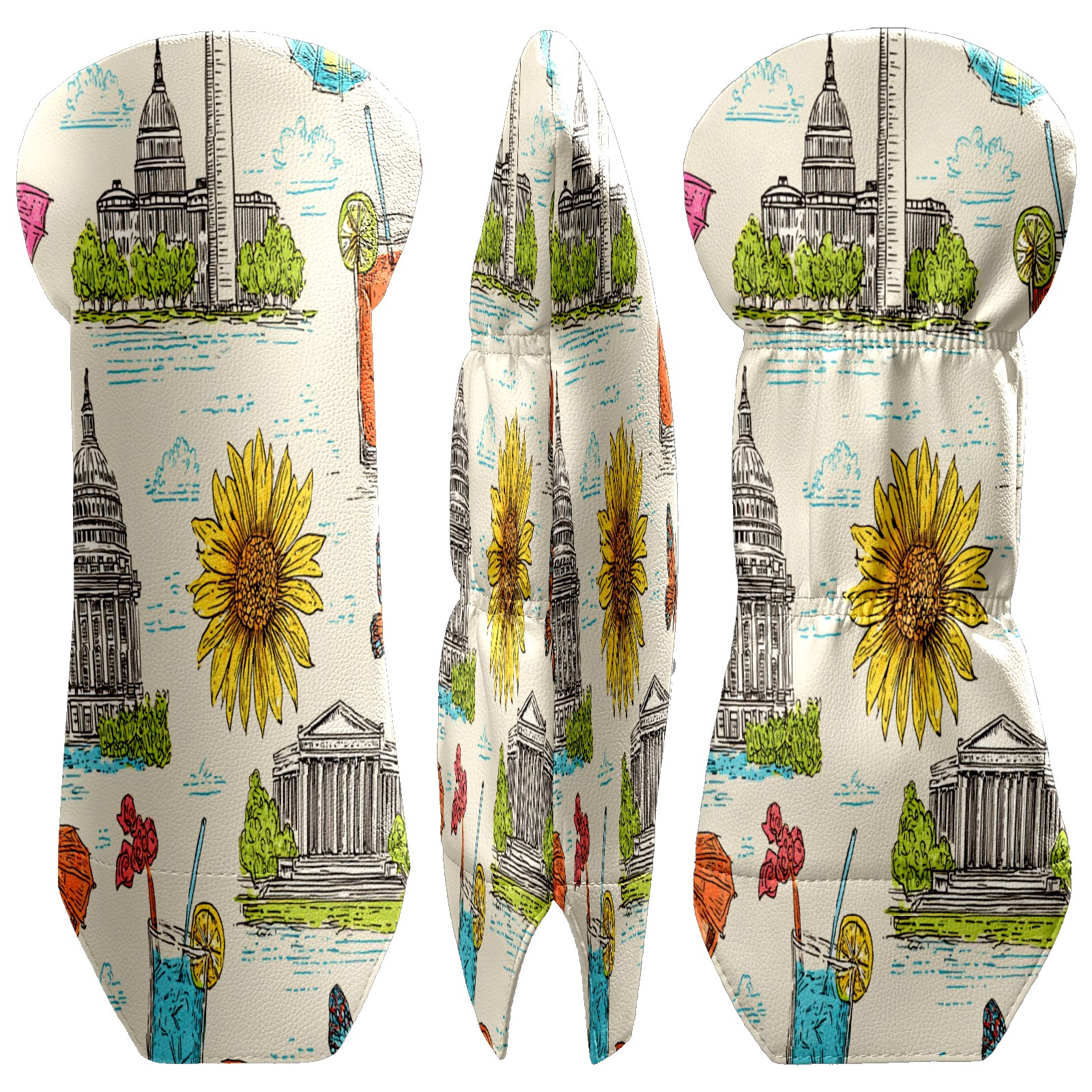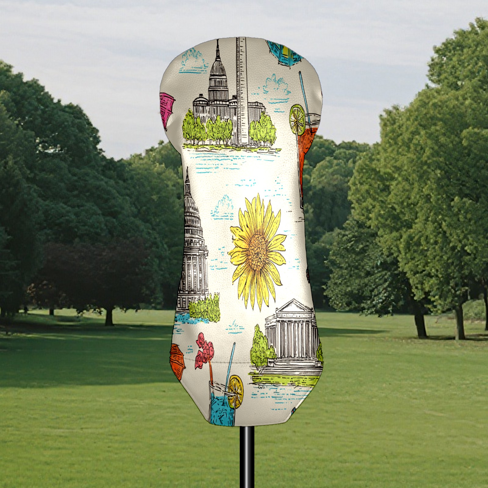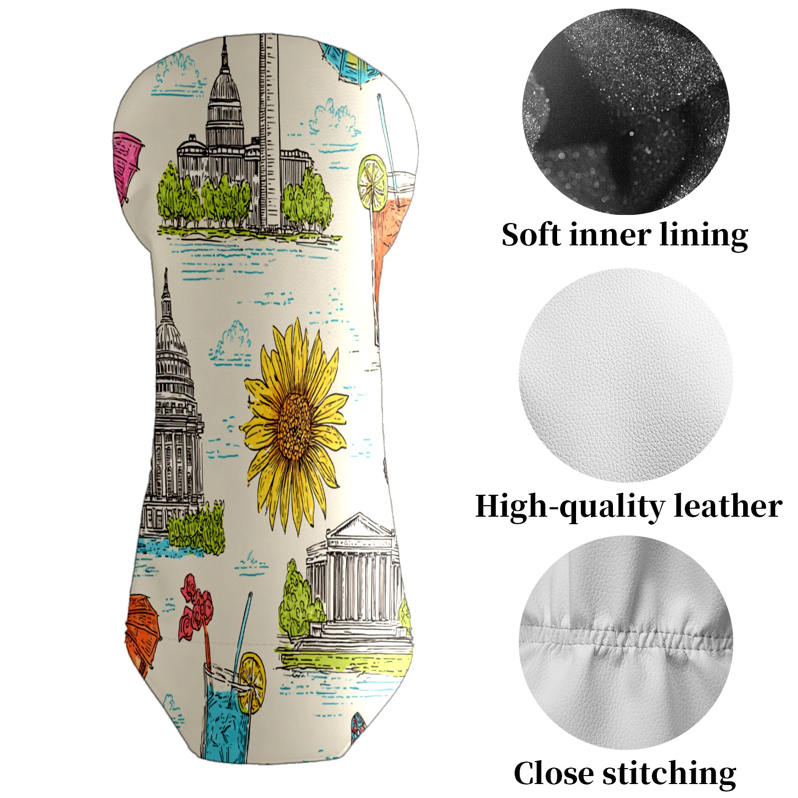 Golf Club Head Cover Waterproof Leather for Driver & Fairway Wood, Driver Headcovers, Golf Accessories for Men Women, Anti-Scratch, Golf Gift for Golfers, 1/3/5 Wood Cover Colorful City Sunflower Drinks