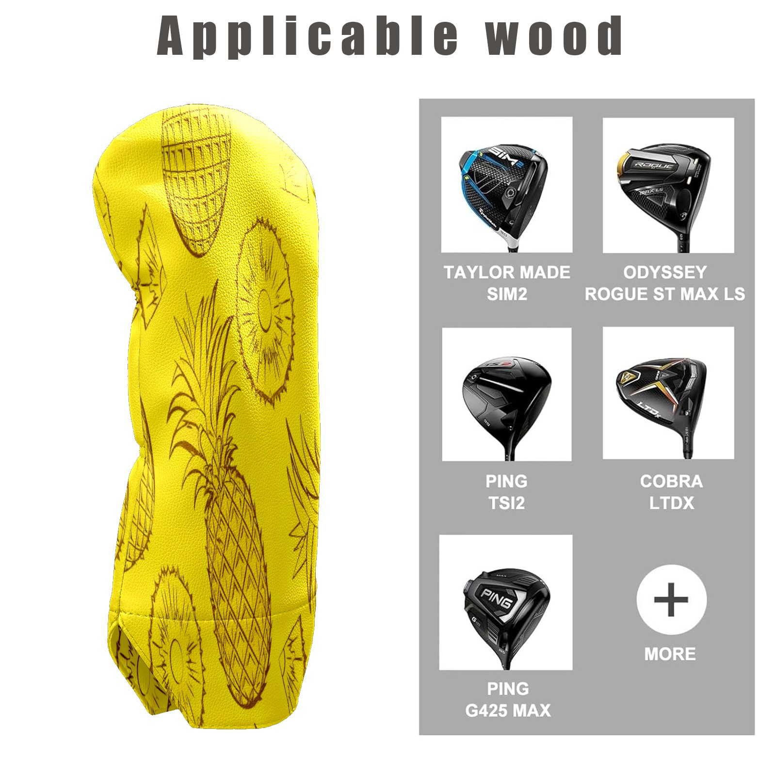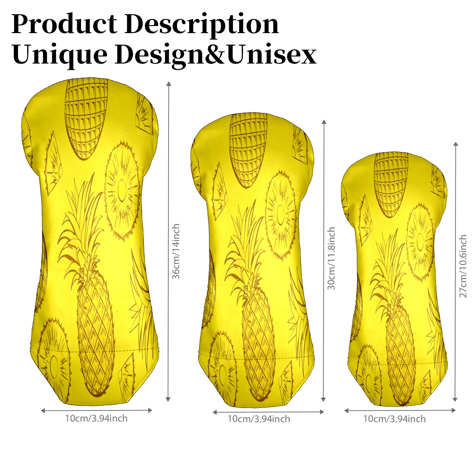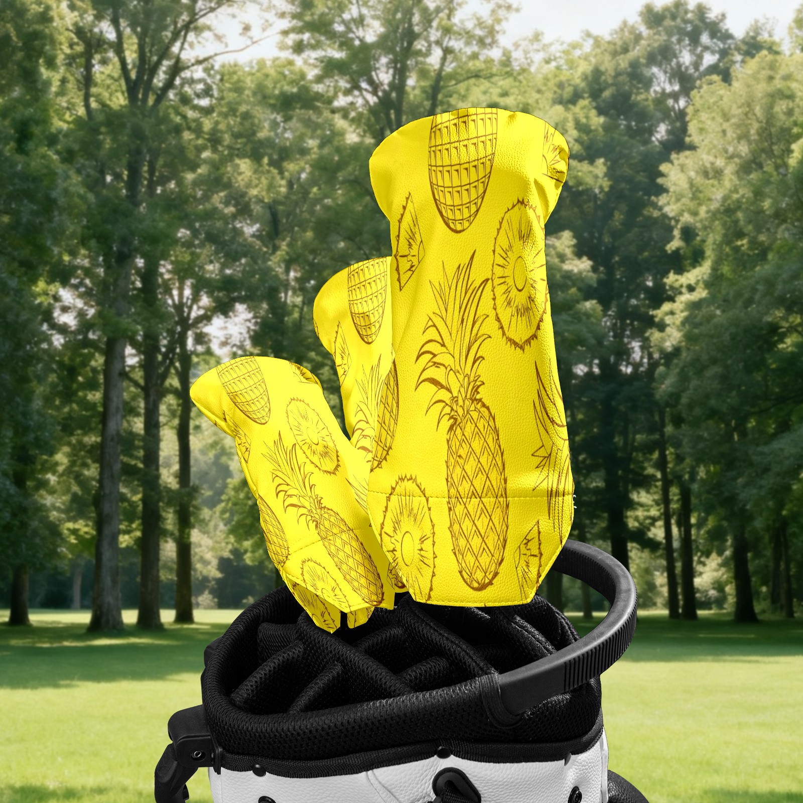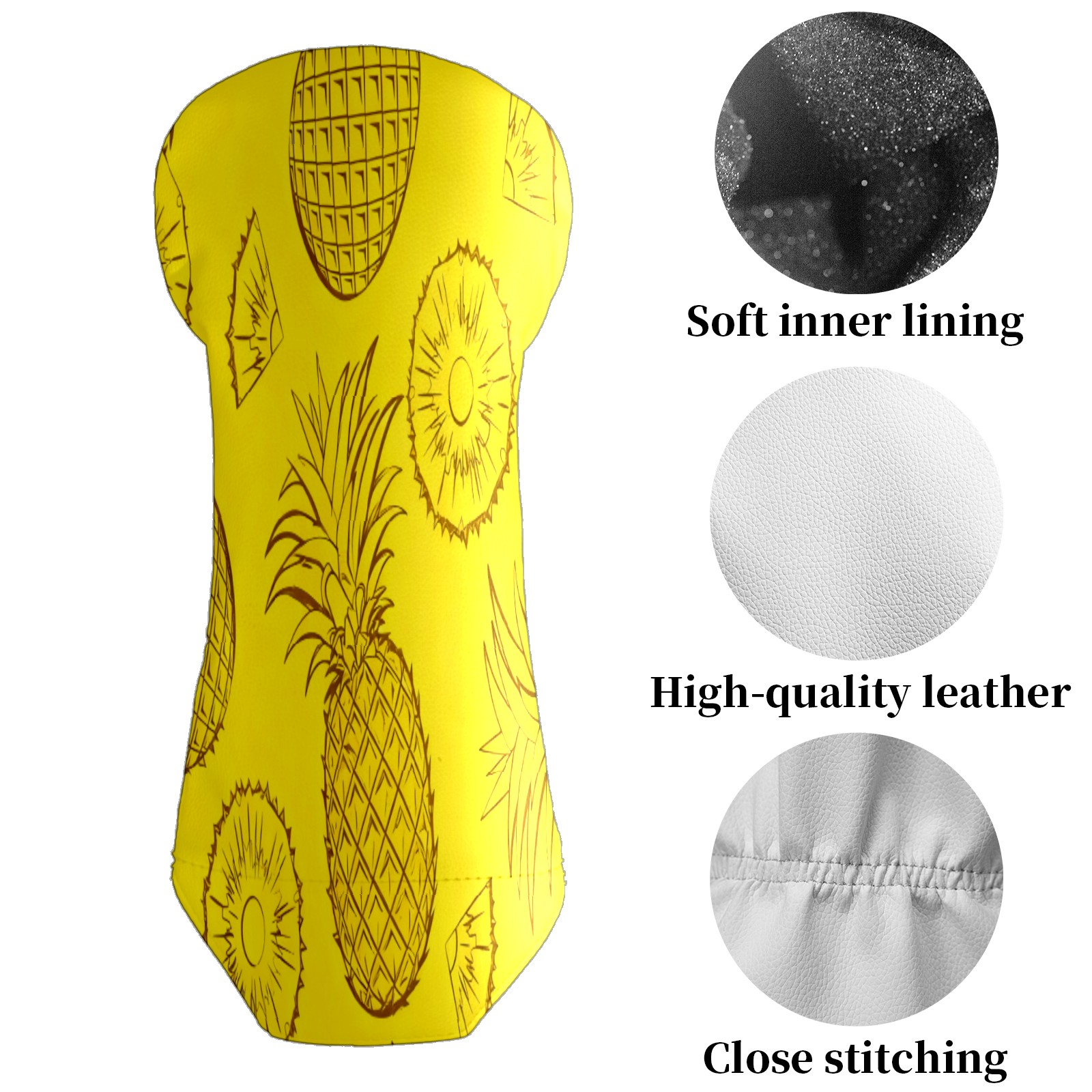 Golf Club Head Cover Waterproof Leather for Driver & Fairway Wood, Driver Headcovers, Golf Accessories for Men Women, Anti-Scratch, Golf Gift for Golfers, 1/3/5 Wood Cover Pineapple Slice Pattern