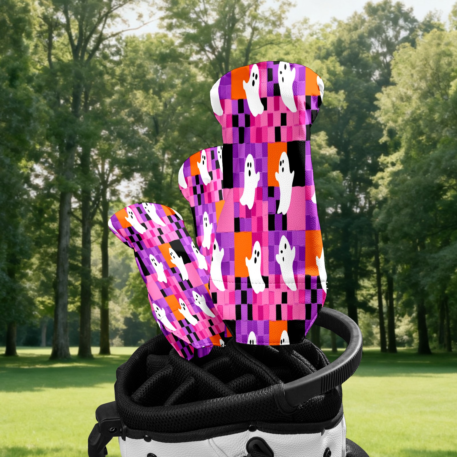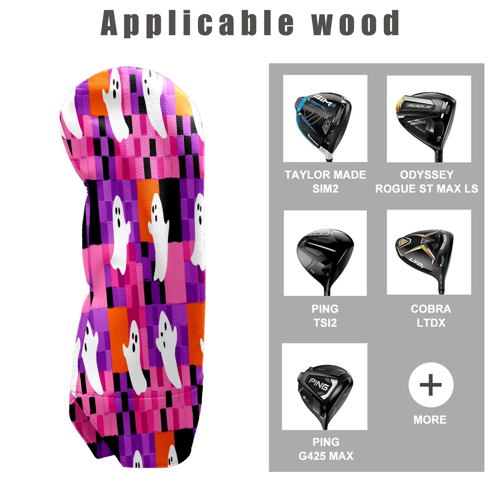 Golf Club Head Cover Waterproof Leather for Driver & Fairway Wood, Driver Headcovers, Golf Accessories for Men Women, Anti-Scratch, Golf Gift for Golfers, 1/3/5 Wood Cover Halloween Scary Ghosts