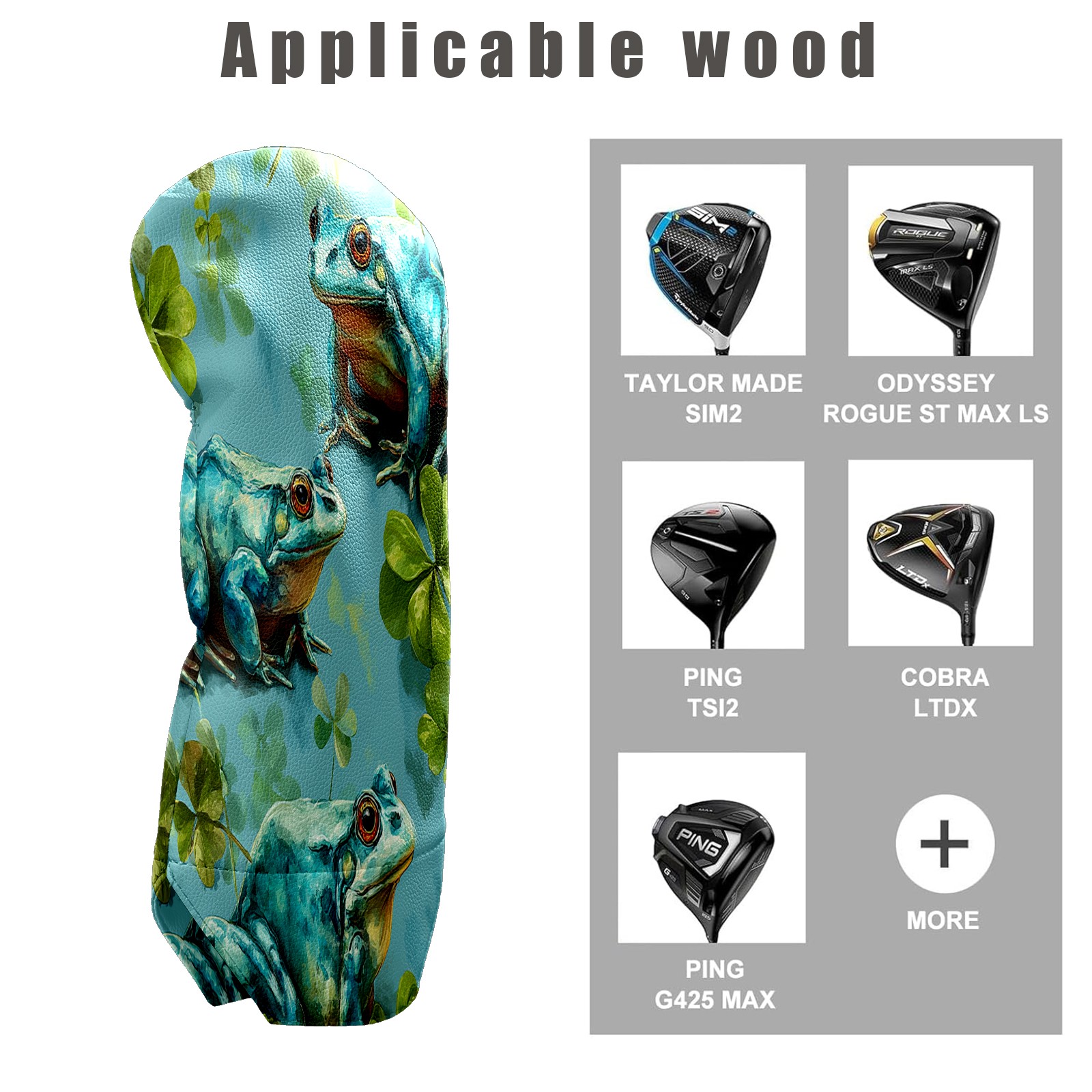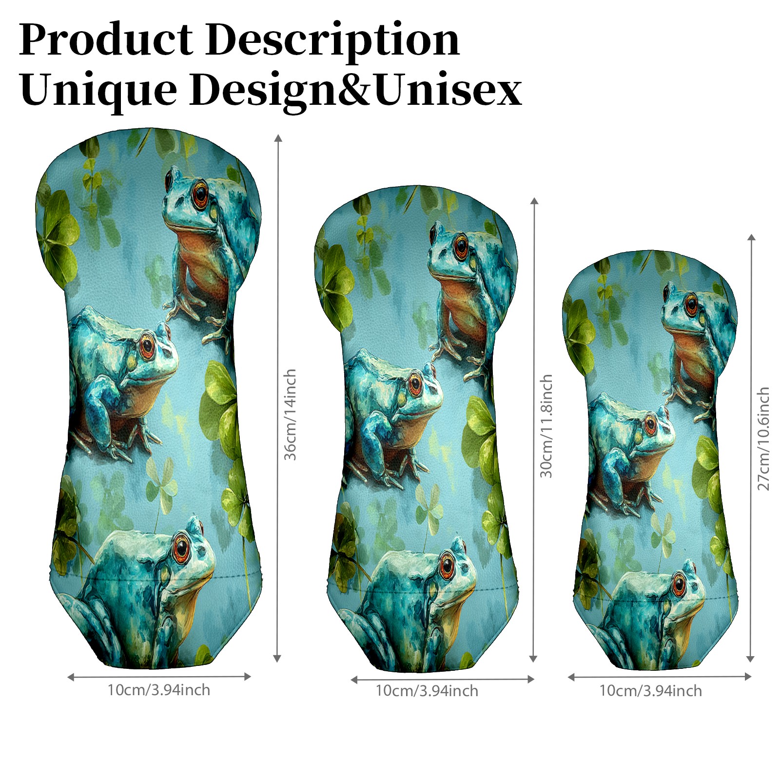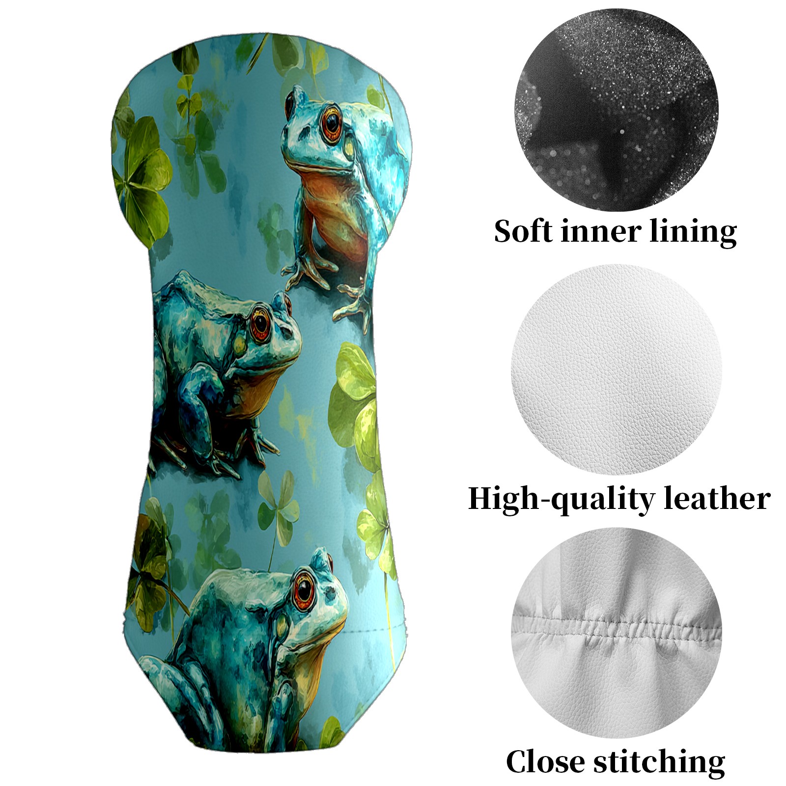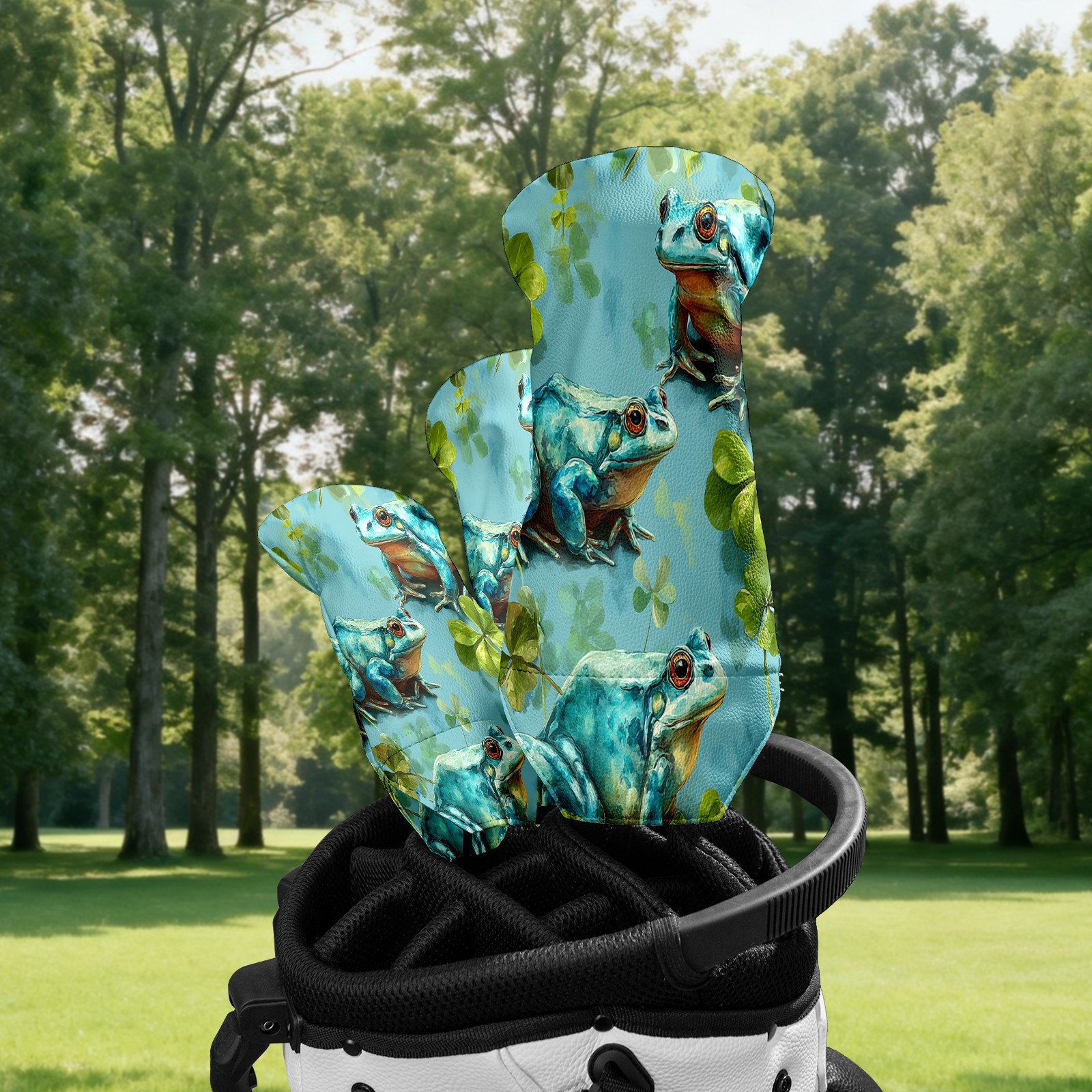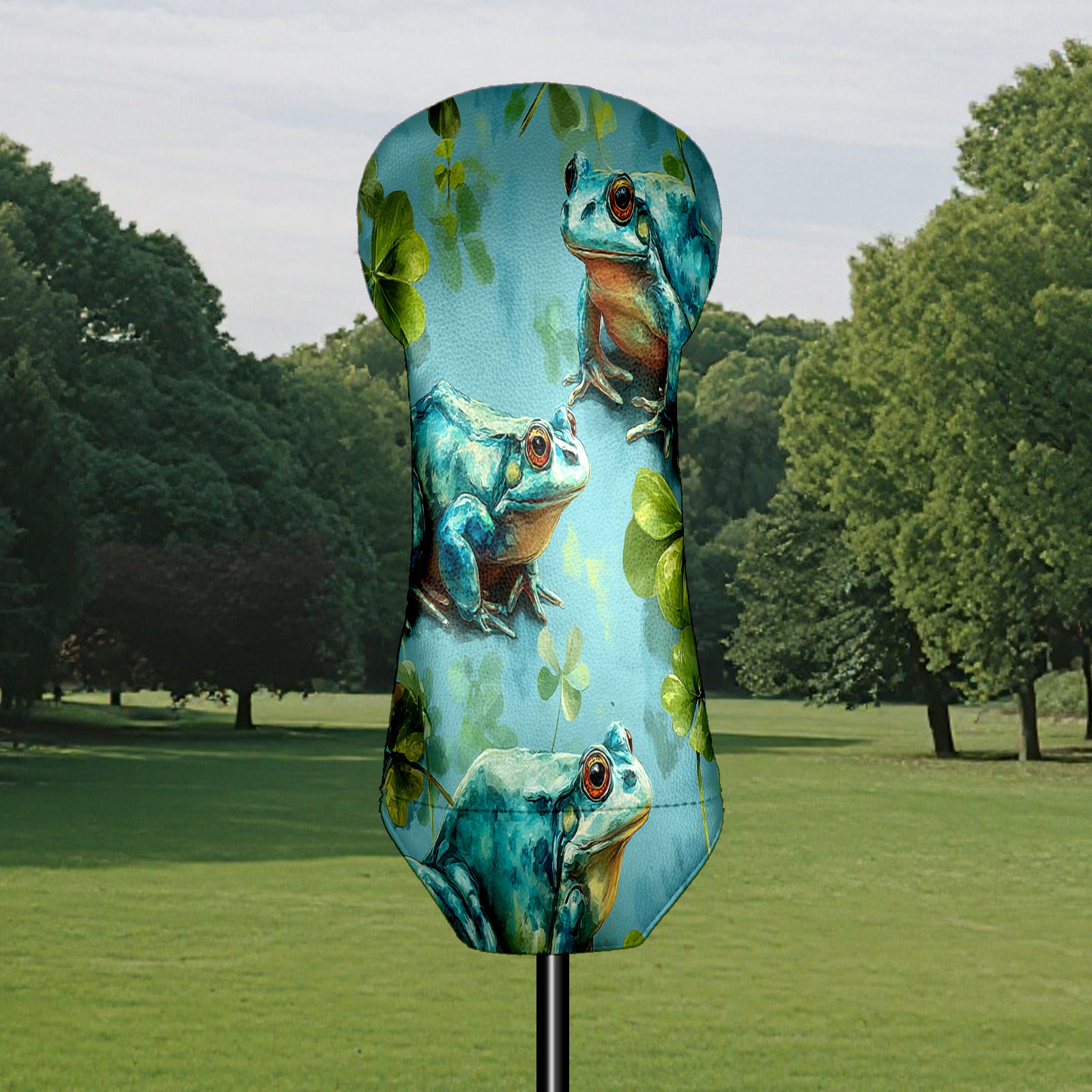 Golf Club Head Cover Waterproof Leather for Driver & Fairway Wood, Driver Headcovers, Golf Accessories for Men Women, Anti-Scratch, Golf Gift for Golfers, 1/3/5 Wood Cover Blue Frogs Clover