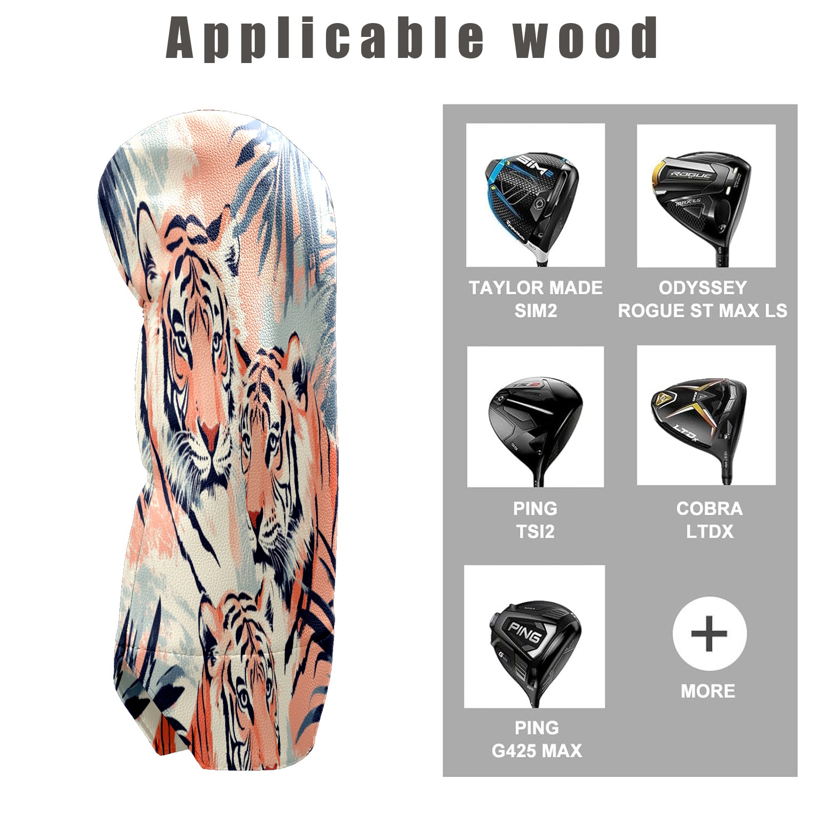 Golf Club Head Cover Waterproof Leather for Driver & Fairway Wood, Driver Headcovers, Golf Accessories for Men Women, Anti-Scratch, Golf Gift for Golfers, 1/3/5 Wood Cover Tiger Head