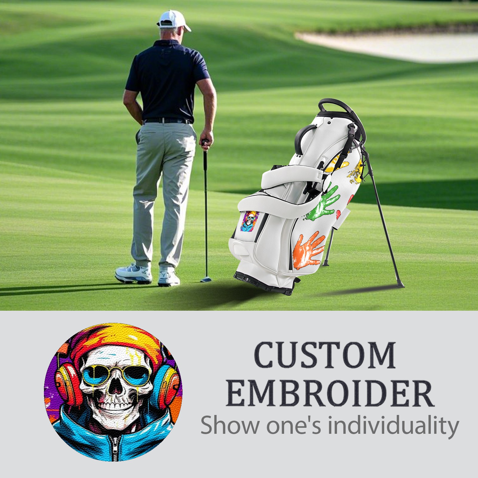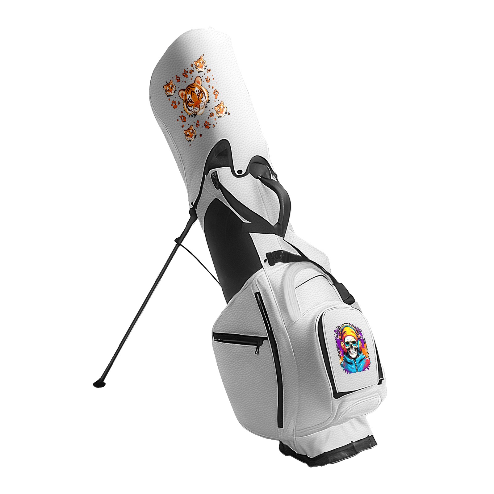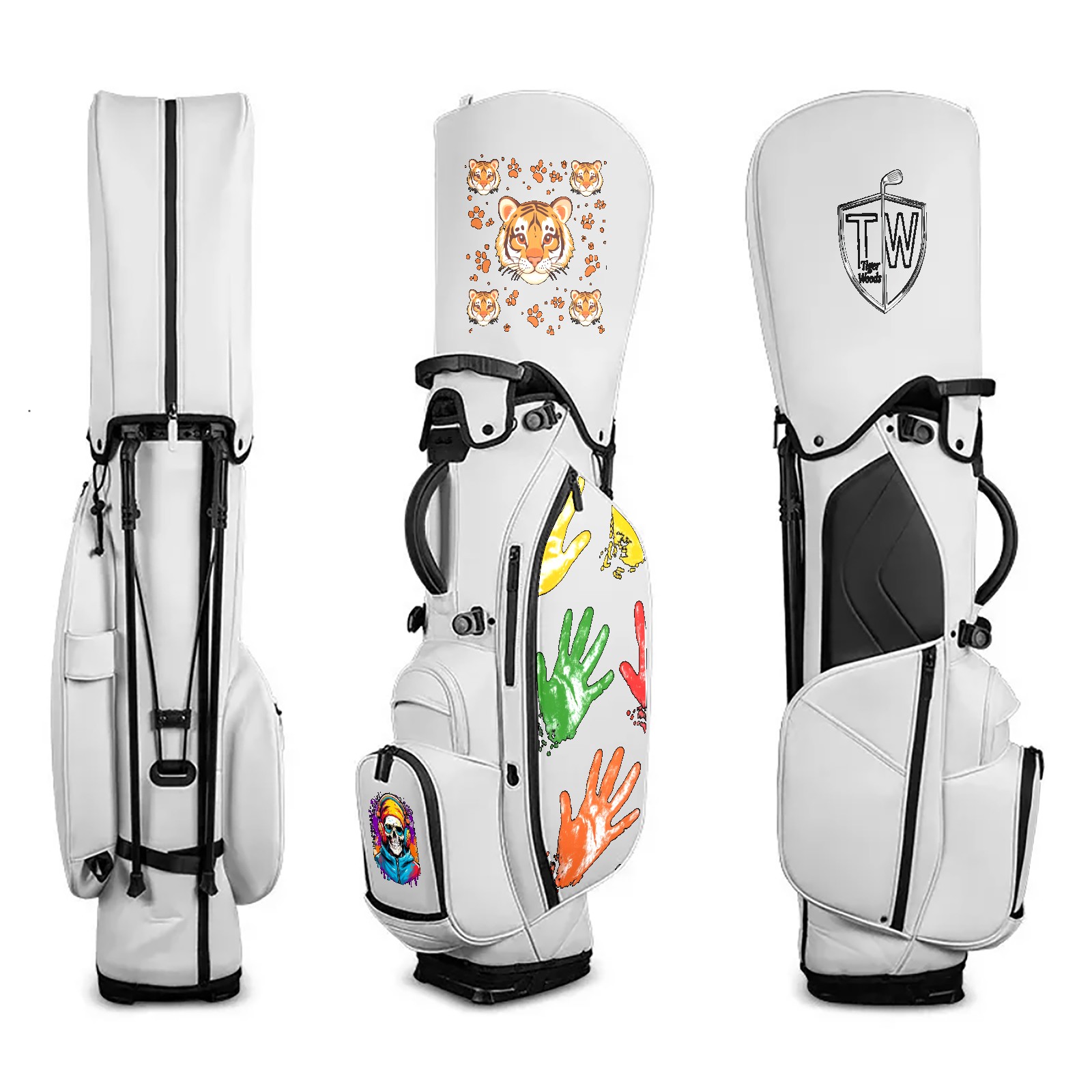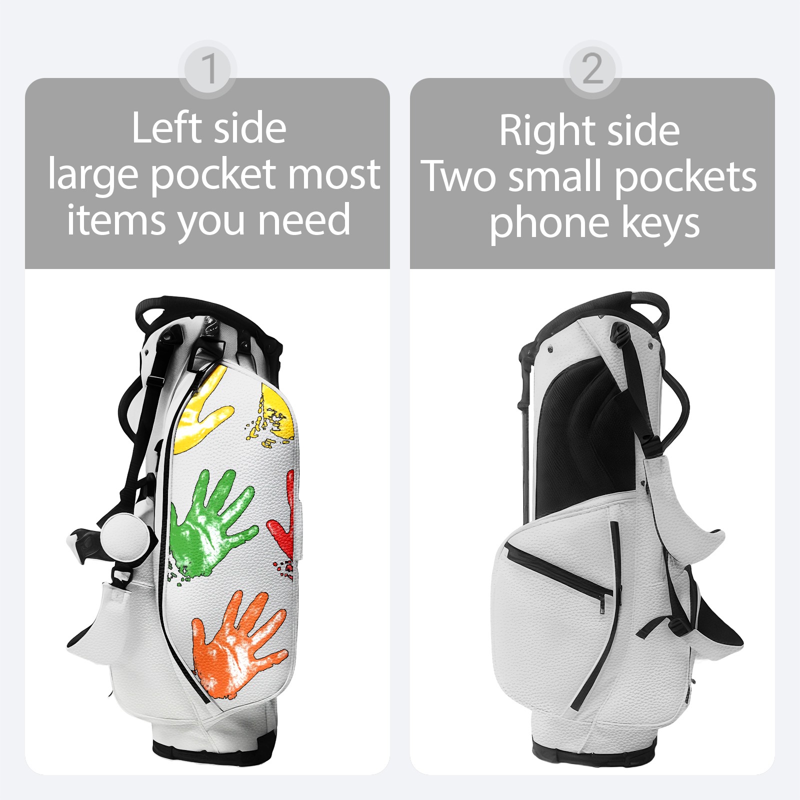 <p>The golf bag is carefully crafted with PU leather fabric, with classic lychee pattern and matte texture, available in black and white, and equipped with a dedicated rain cover. It not only looks stylish, but also can protect your clubs and equipment from wind and rain. In terms of storage design, it provides 5/14 compartments of large capacity to effectively protect the clubs; waterproof zipper pockets ensure that items are dry and safe; abundant storage space to meet your storage needs for various necessities. Thickened breathable shoulder straps with adjustable chest buckles evenly disperse shoulder pressure, 14-way partition design on the top of the bag, each iron, wood and putter has a dedicated position, and the bottom anti-wear and anti-slip spikes design can adapt to various complex terrain placements to prevent the bag from tipping over or shaking, escorting your golf trip.</p>