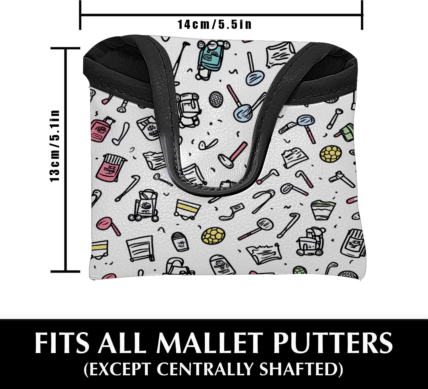 Mallet Putter Cover, PU Leather and Waterproof Golf Putter Cover, Golf Club Protective Case Fits Most Mallet Putters, Easily Slips on and Secures Golf-themed Pattern