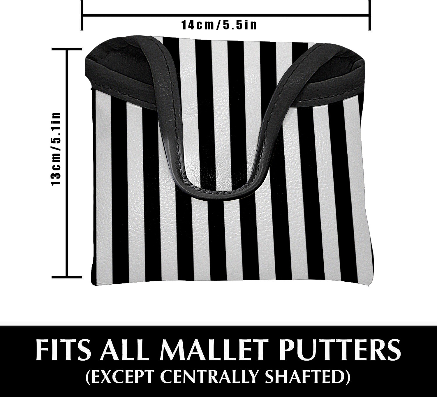 Mallet Putter Cover, PU Leather and Waterproof Golf Putter Cover, Golf Club Protective Case Fits Most Mallet Putters, Easily Slips on and Secures Vertical Stripe Black And White Background