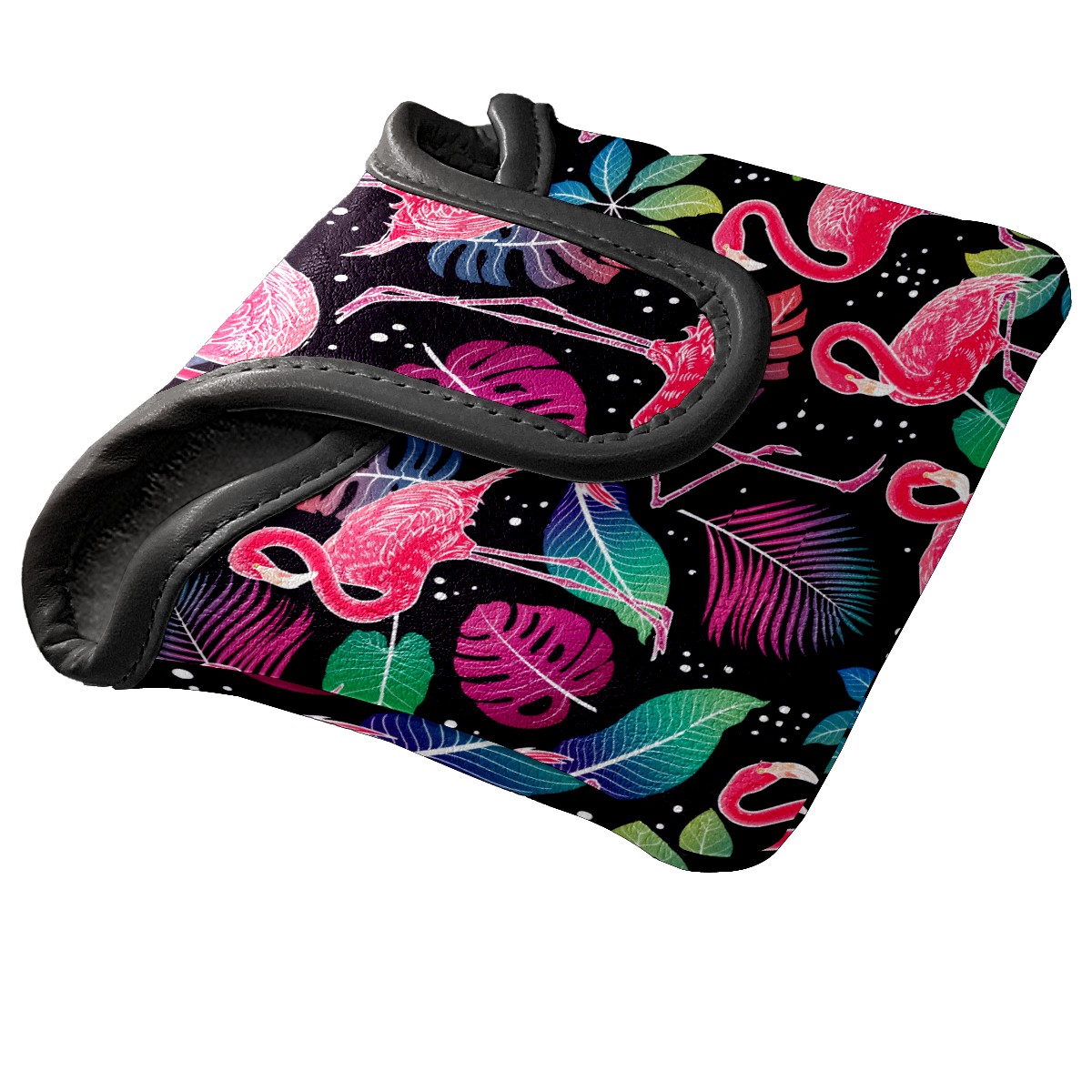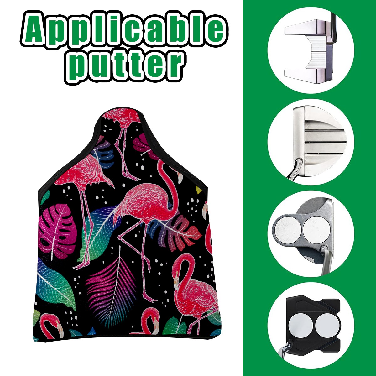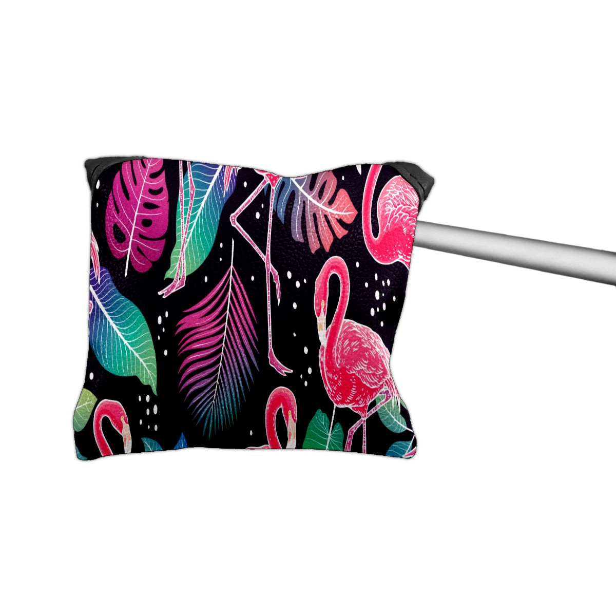 Mallet Putter Cover, PU Leather and Waterproof Golf Putter Cover, Golf Club Protective Case Fits Most Mallet Putters, Easily Slips on and Secures Tropical Pink Flamingo Colorful Palm