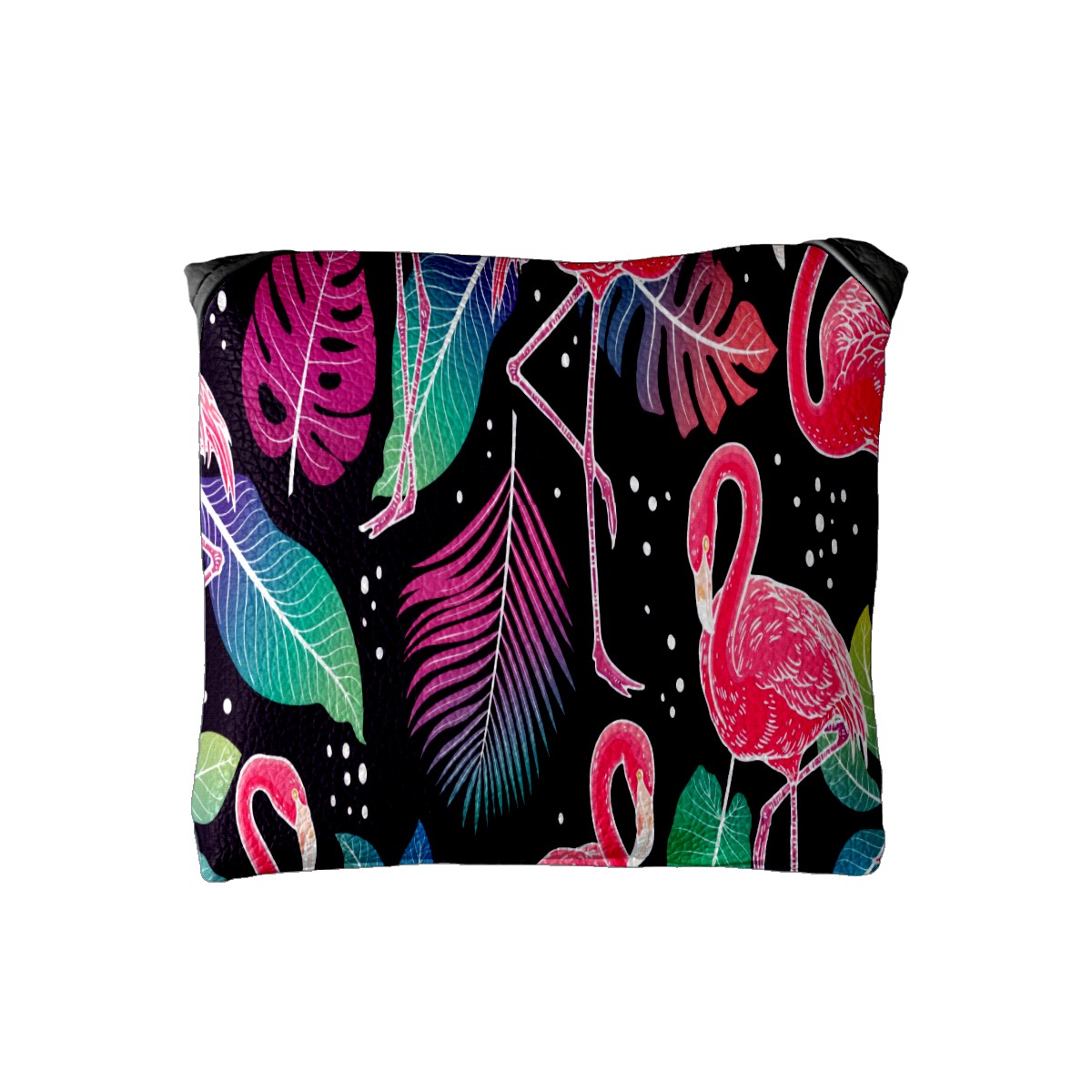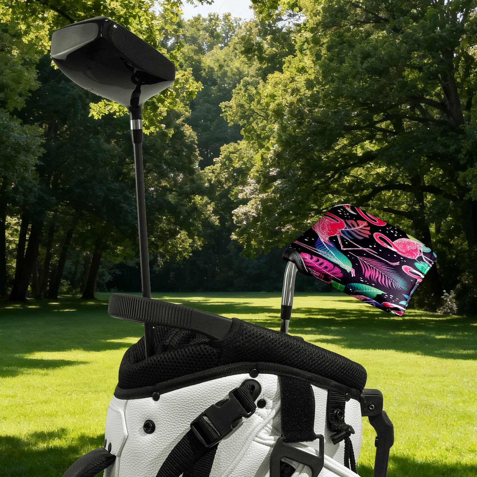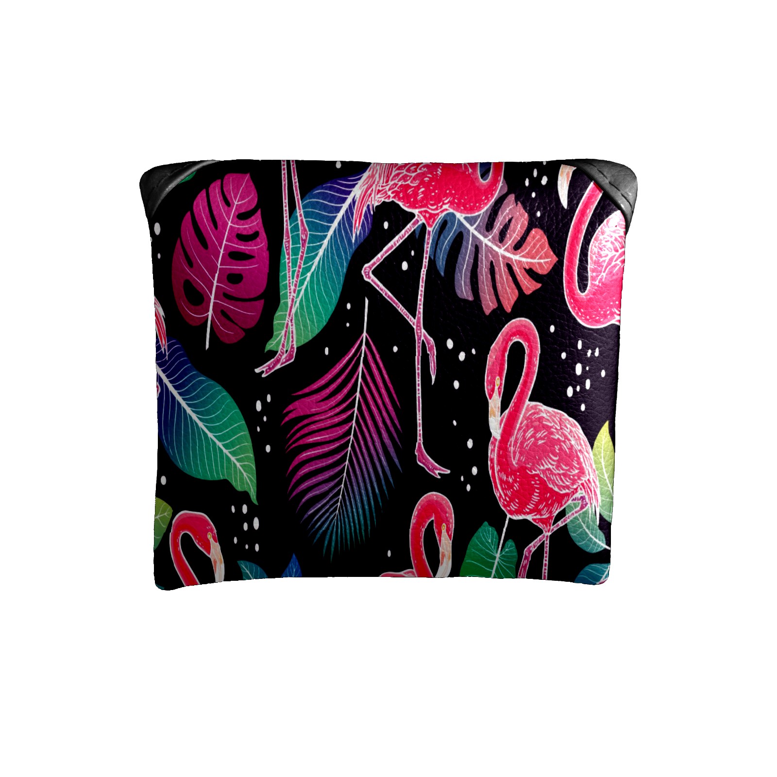 Mallet Putter Cover, PU Leather and Waterproof Golf Putter Cover, Golf Club Protective Case Fits Most Mallet Putters, Easily Slips on and Secures Tropical Pink Flamingo Colorful Palm