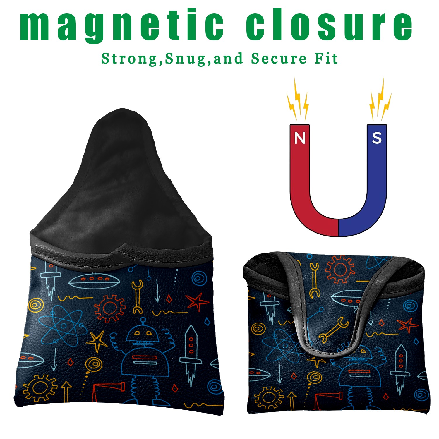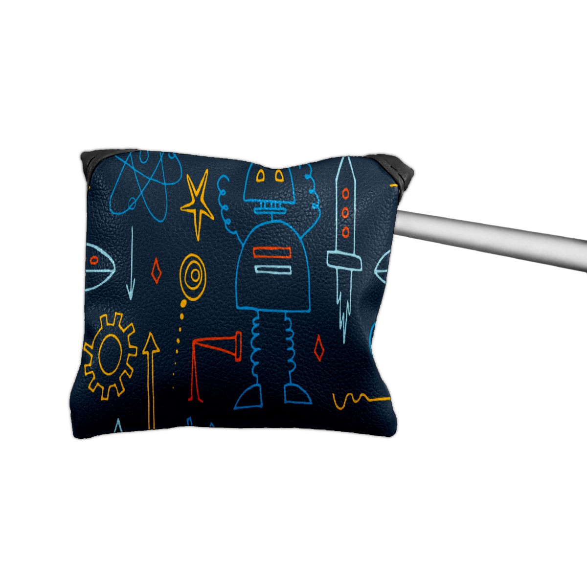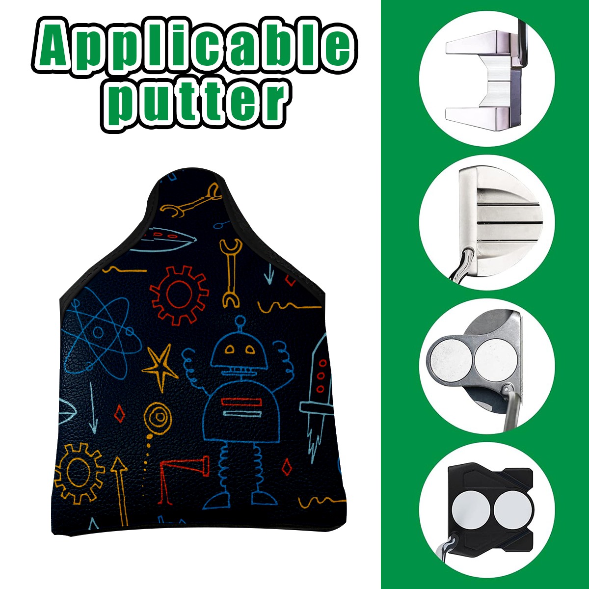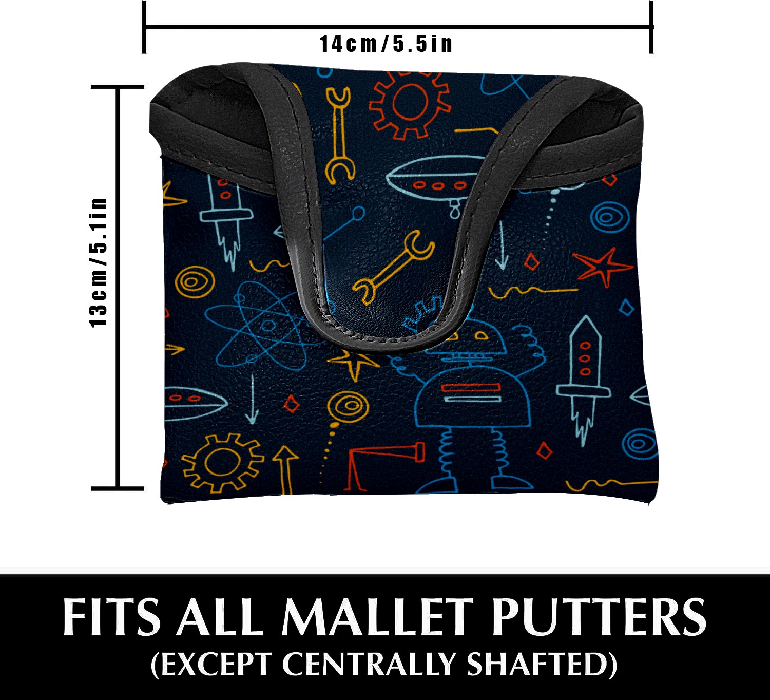 Mallet Putter Cover, PU Leather and Waterproof Golf Putter Cover, Golf Club Protective Case Fits Most Mallet Putters, Easily Slips on and Secures Robot Space Rocket Spaceship
