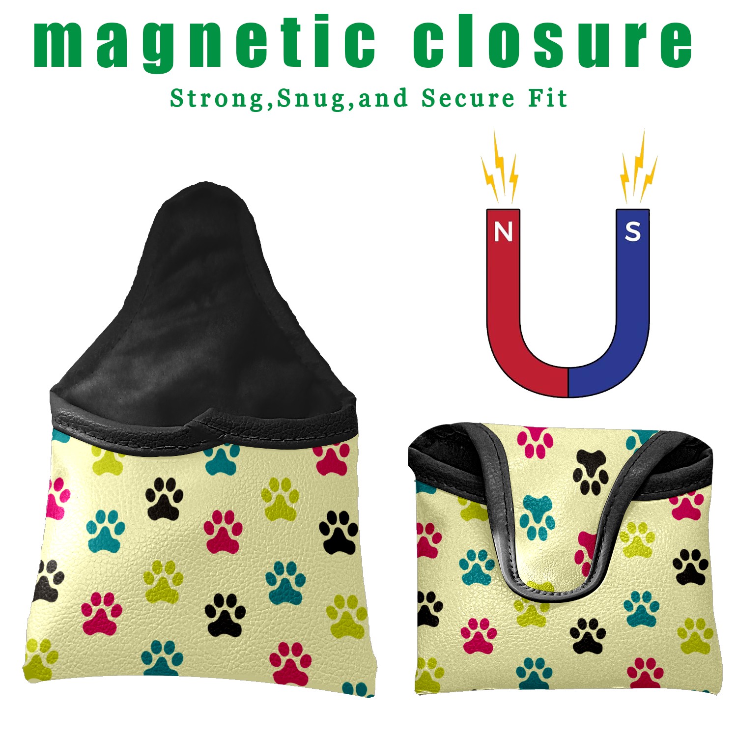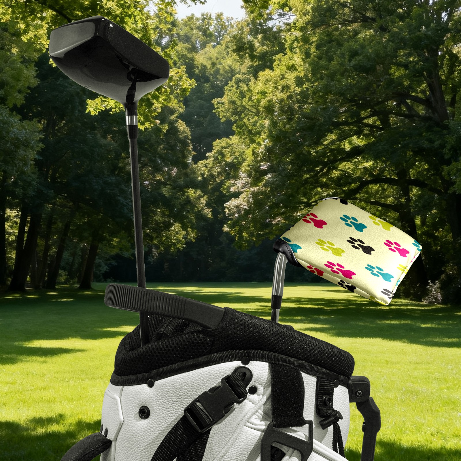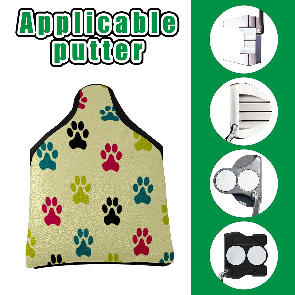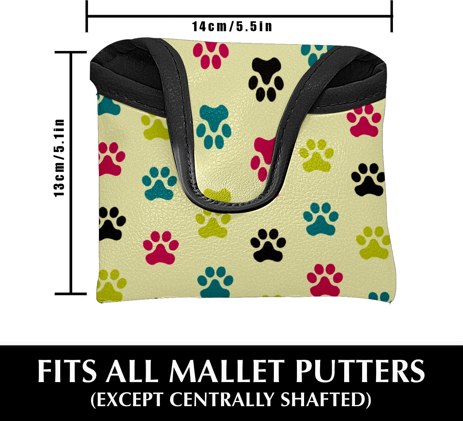 Mallet Putter Cover, PU Leather and Waterproof Golf Putter Cover, Golf Club Protective Case Fits Most Mallet Putters, Easily Slips on and Secures Colorful Cats Paws Pattern