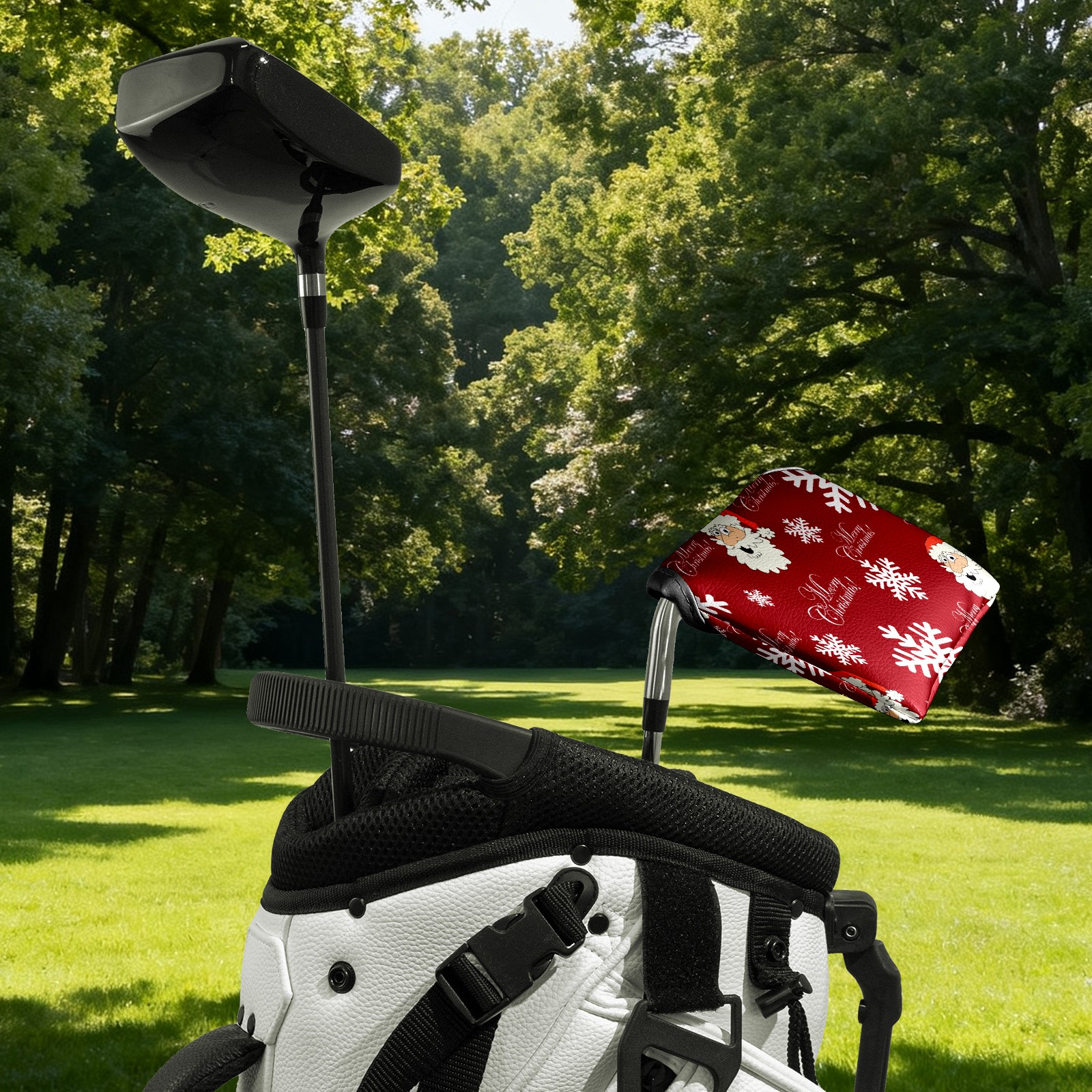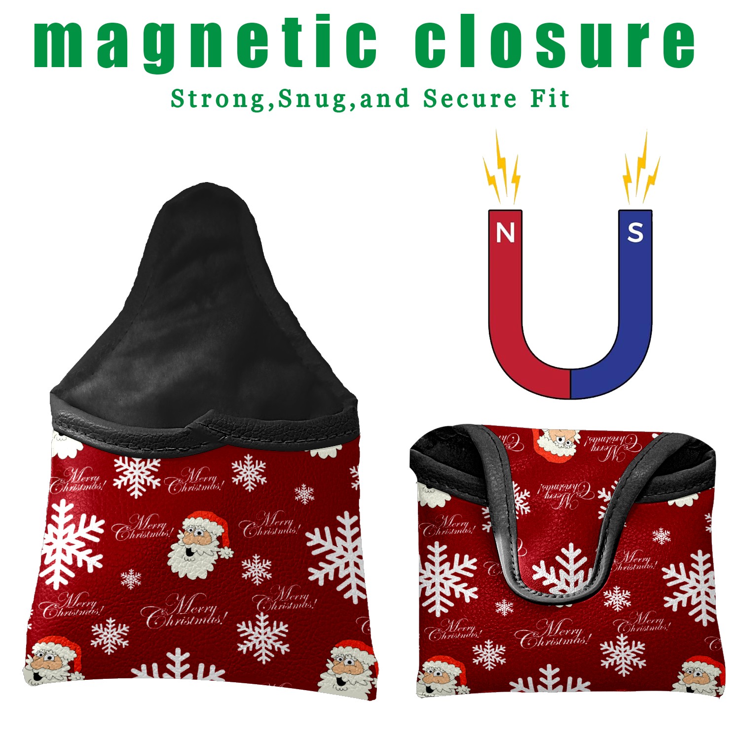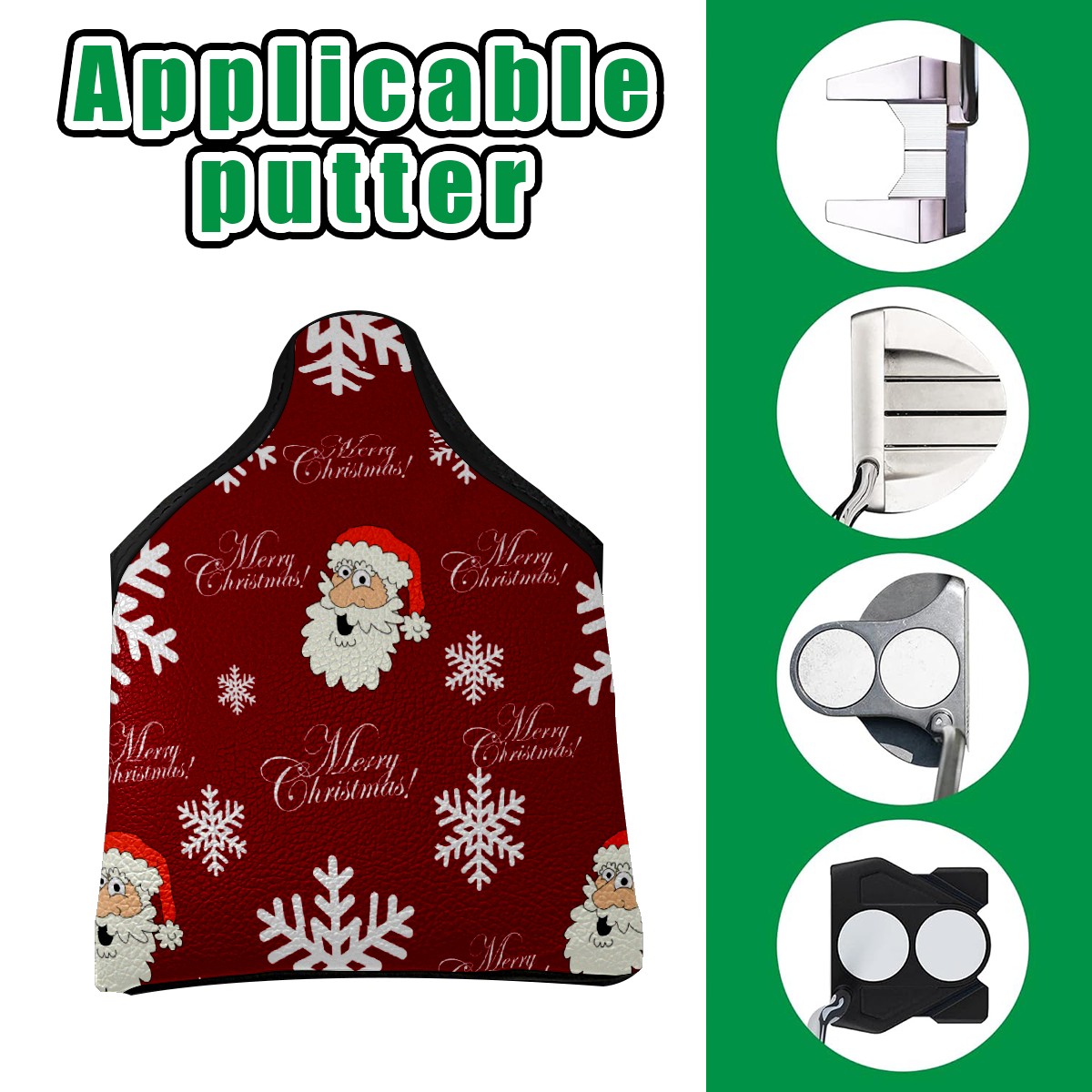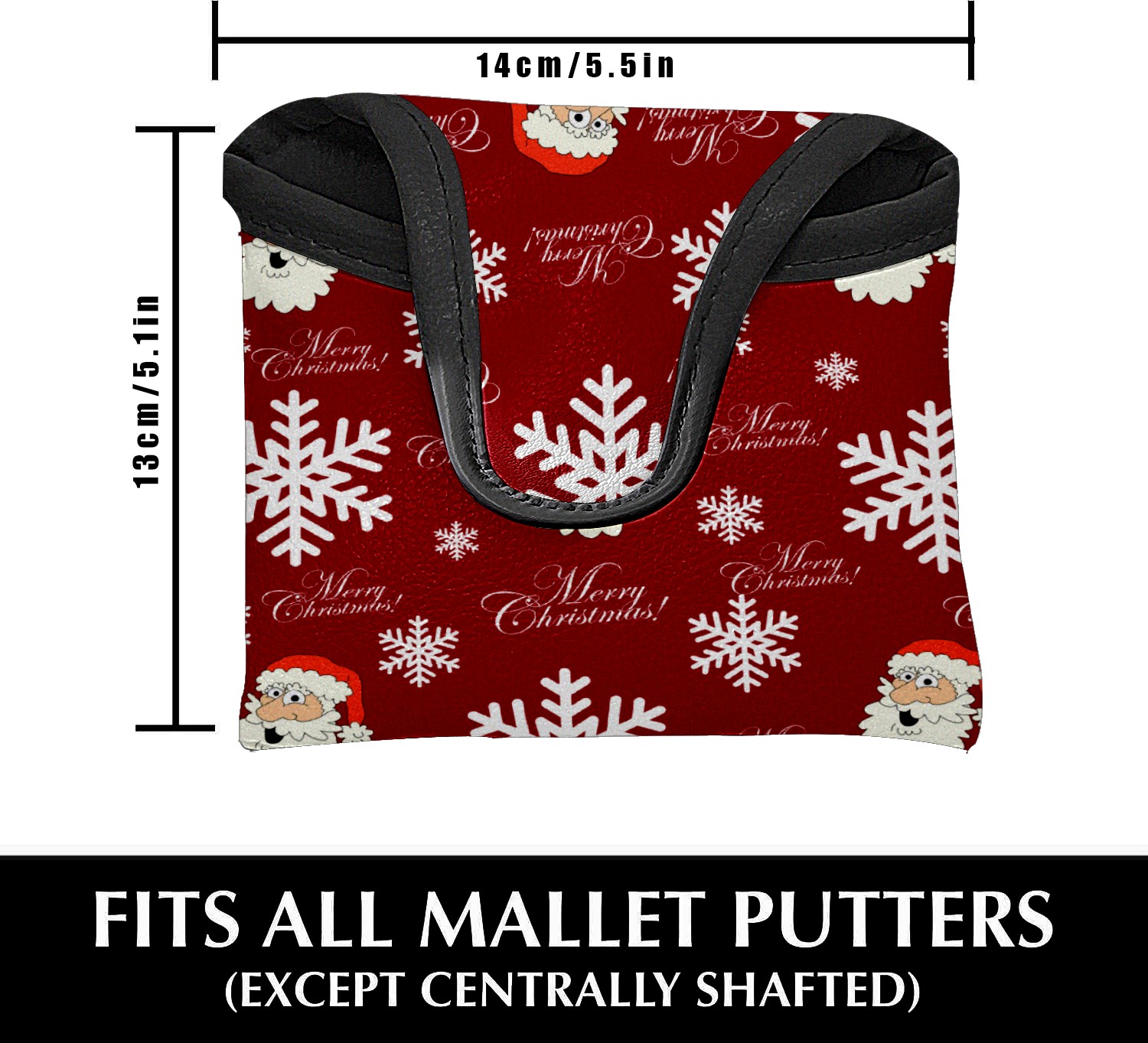 Mallet Putter Cover, PU Leather and Waterproof Golf Putter Cover, Golf Club Protective Case Fits Most Mallet Putters, Easily Slips on and Secures Christmas Red Santa Snowflakes