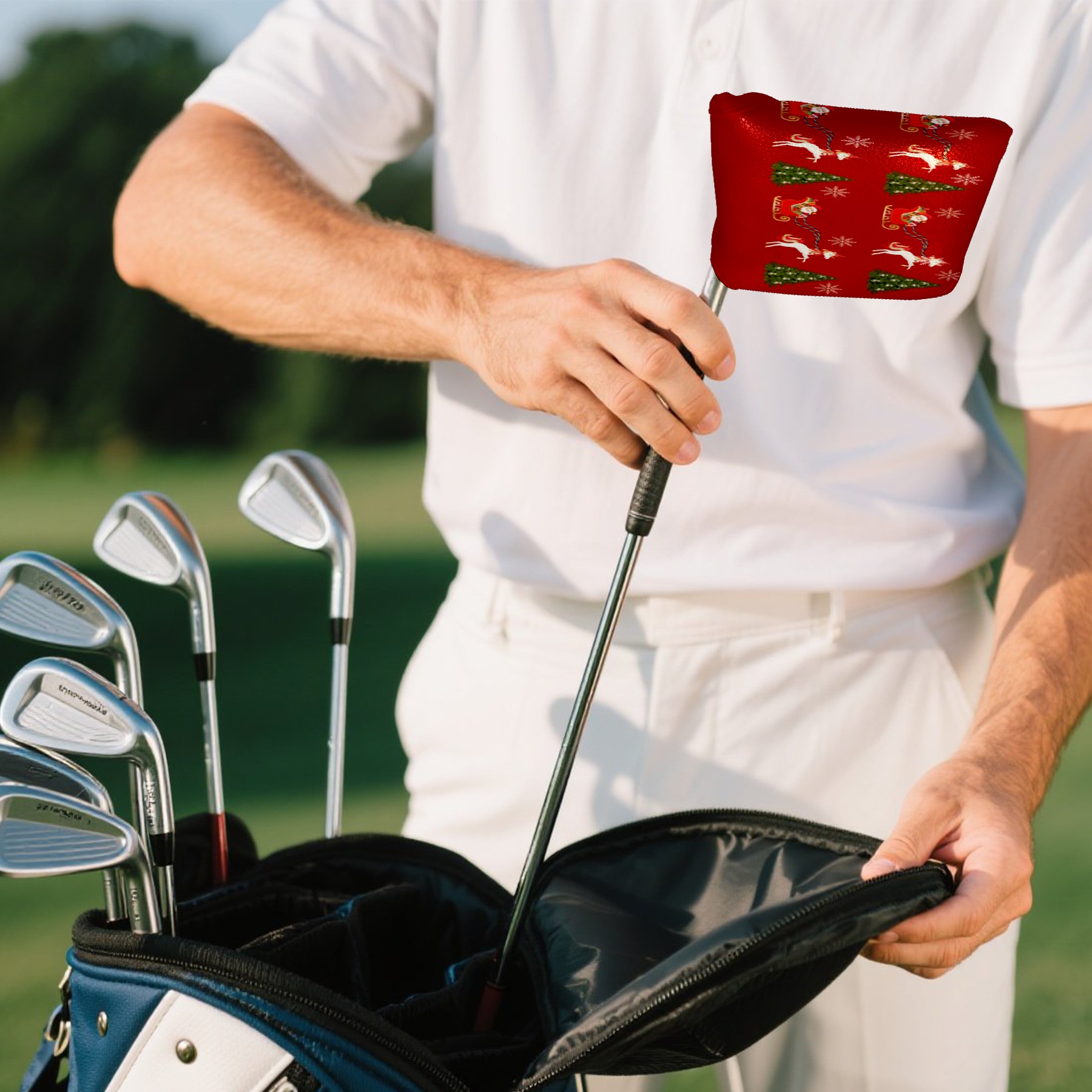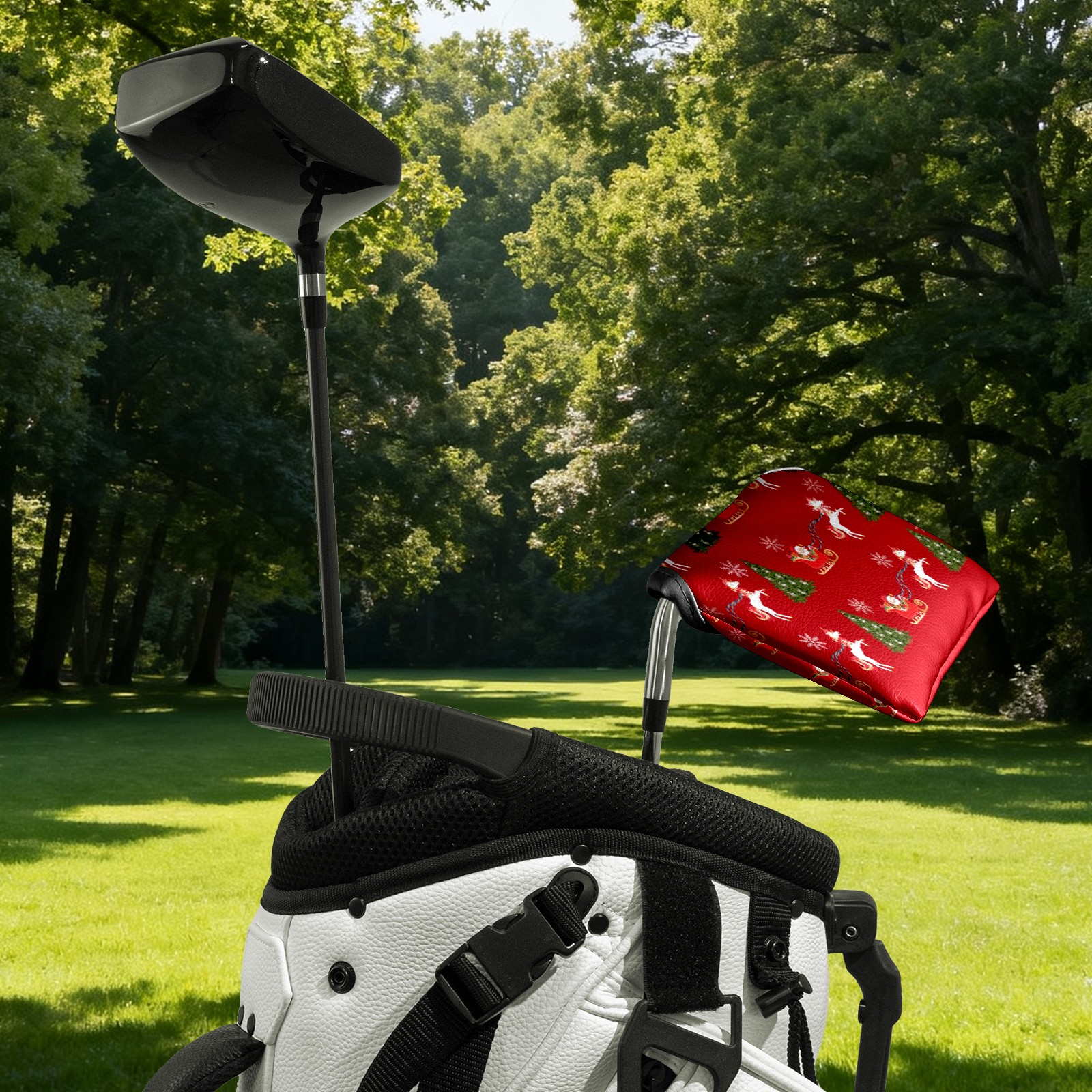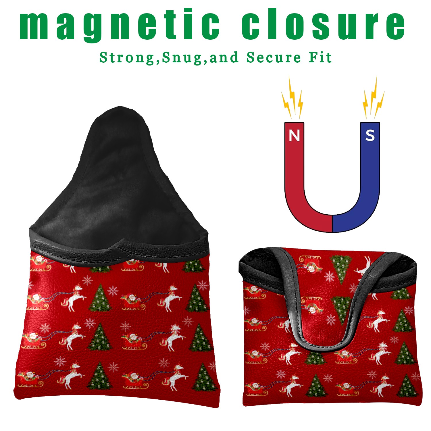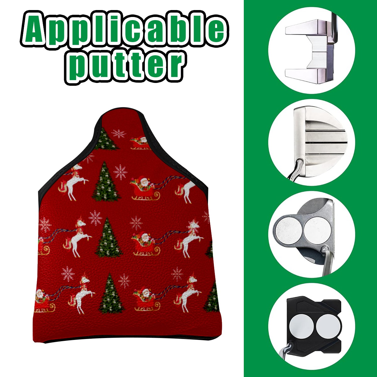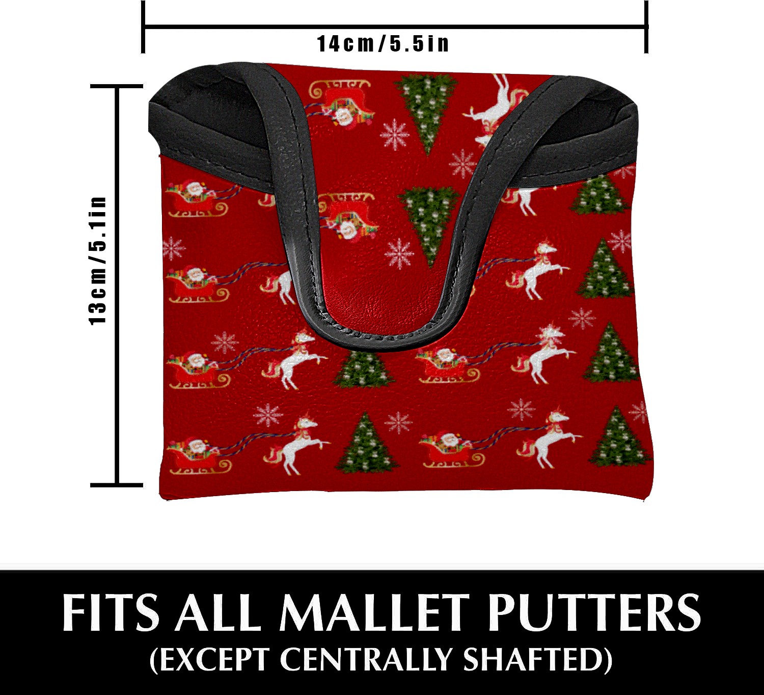 Mallet Putter Cover, PU Leather and Waterproof Golf Putter Cover, Golf Club Protective Case Fits Most Mallet Putters, Easily Slips on and Secures Unicorn Santa's Sleigh Snowflakes Christmas Tree